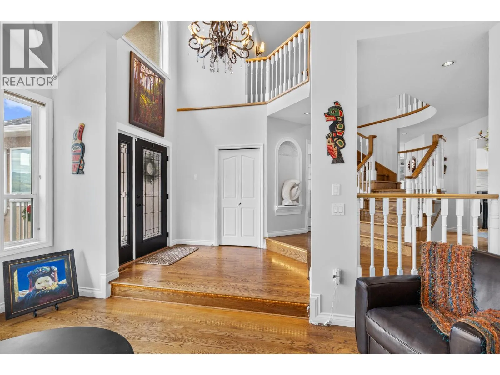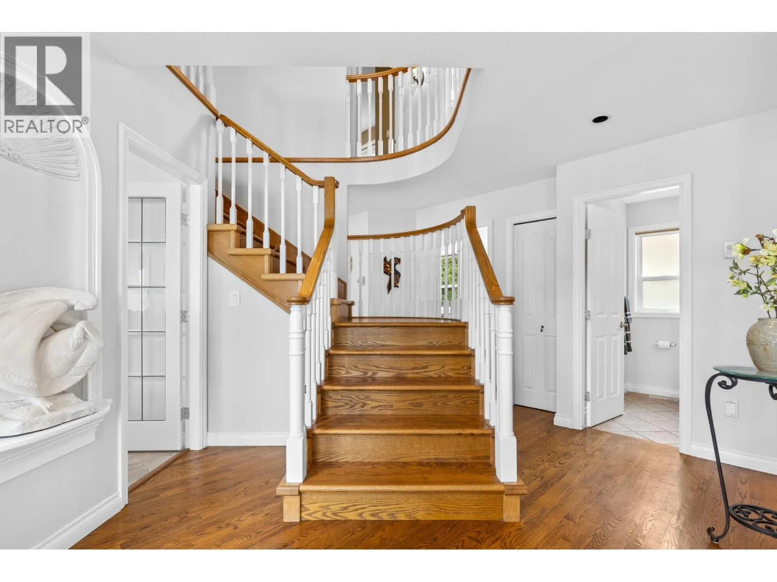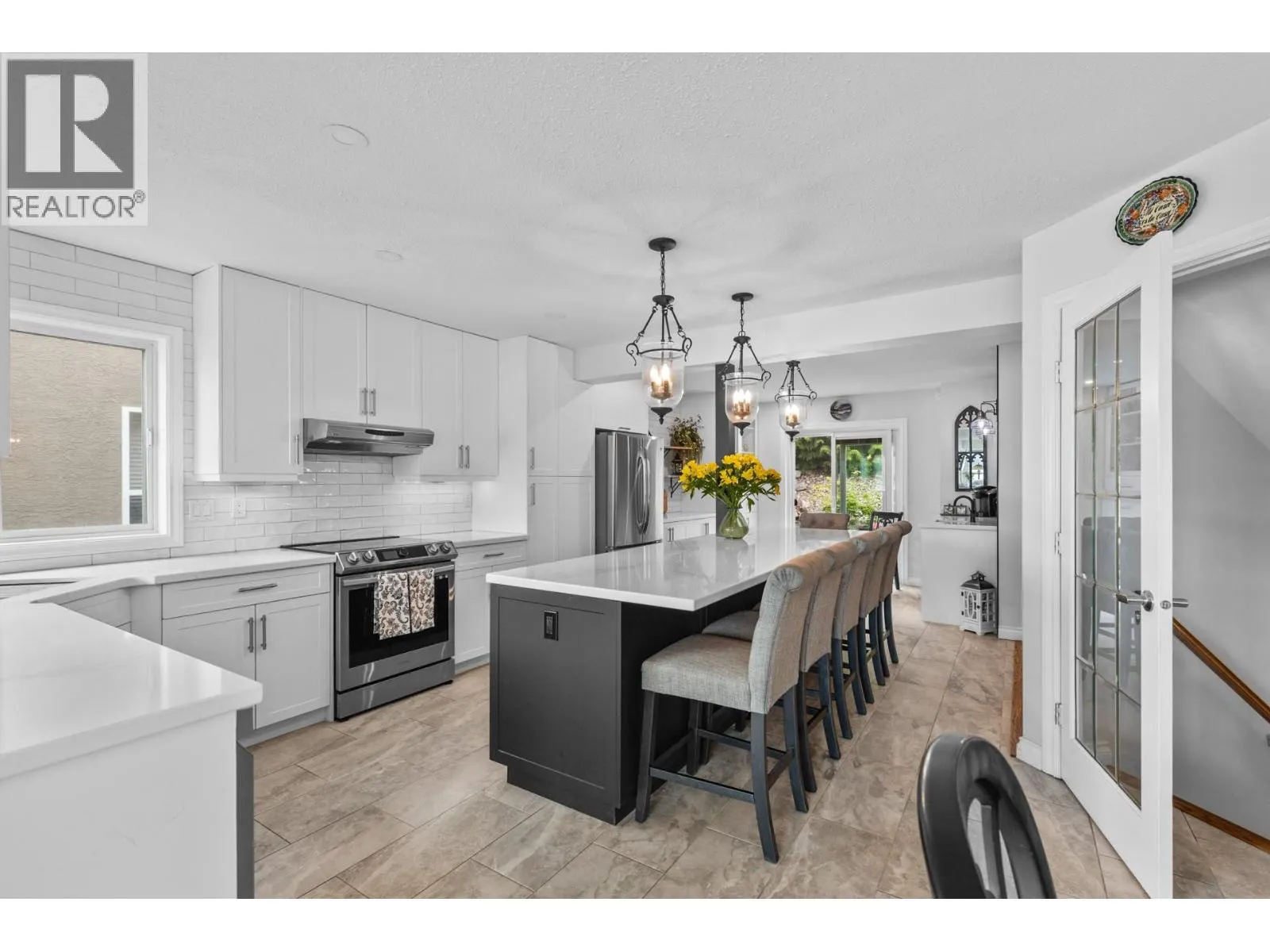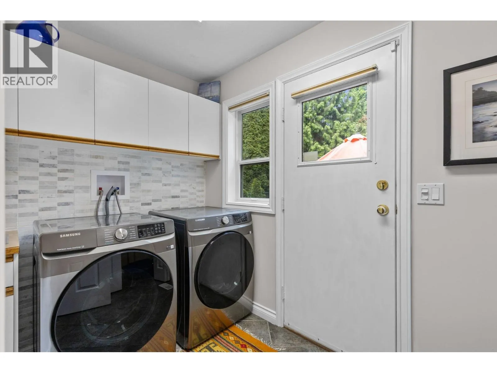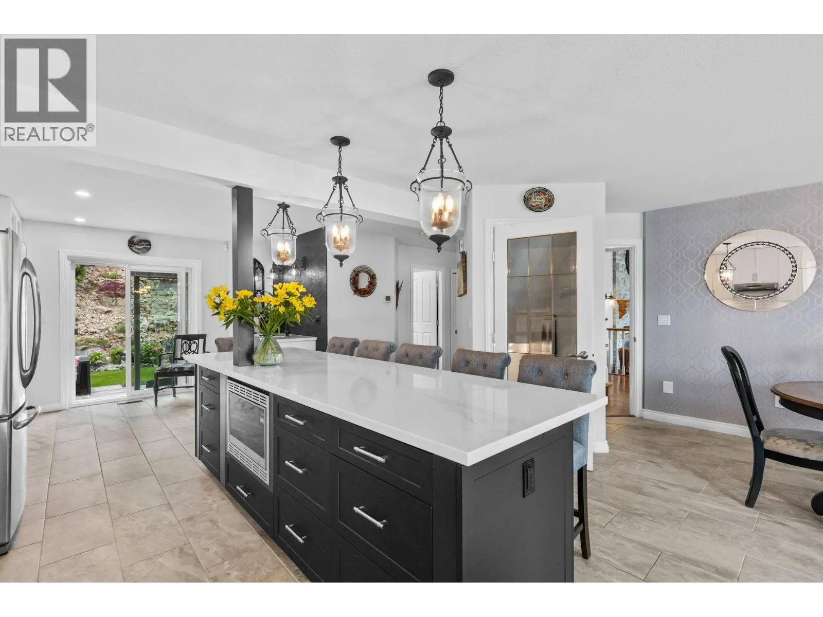 Step outside your front door to enjoy immediate access to Okanagan Lake, where a licensed private buoy awaits your water toys. This immaculate home showcases pride of ownership with its four bedrooms, versatile flex room, and spacious recreation room ideal for a pool table or games room. The newly renovated kitchen features mostly newer appliances, elegant quartz countertops, a beverage fridge and additional sink. The ten foot long island in the kitchen is the perfect gathering place. The primary bedroom ensuite boasts a jetted tub. Additional highlights include a newer front load washer and dryer, built-in vacuum system, and gleaming hardwood oak flooring throughout the home. The property features two front decks for taking in the lake and mountain views, a sunken living room with a gas fireplace, pristinely kept double garage. The outdoor space is fully irrigated, complete with timed drip lines, a stunning water feature, exceptional landscaping with a park like setting of your very own, a greenhouse, garden boxes and a hot tub on the back patio. The home is equipped with a newer geothermal heating and cooling system, ensuring energy efficiency. Your new lifestyle awaits you in the beautiful Peachland along the shores of Okanagan Lake! (id:27476)