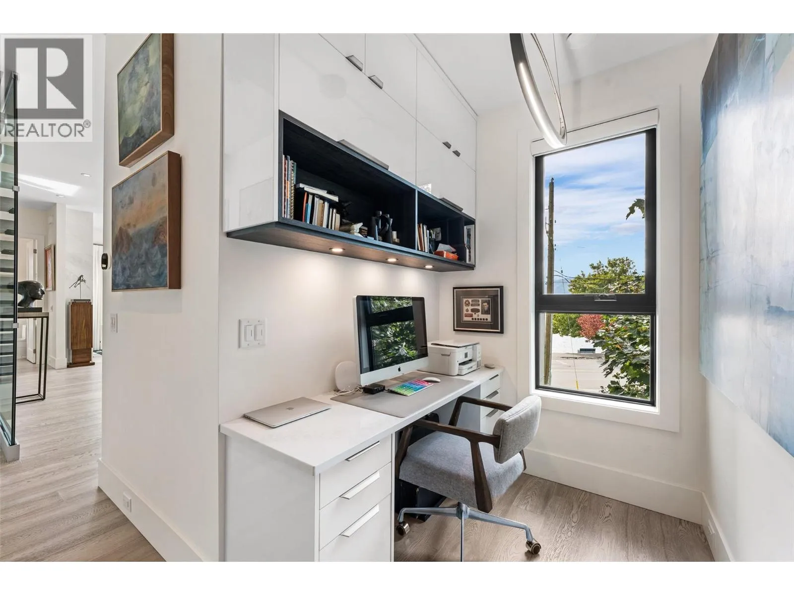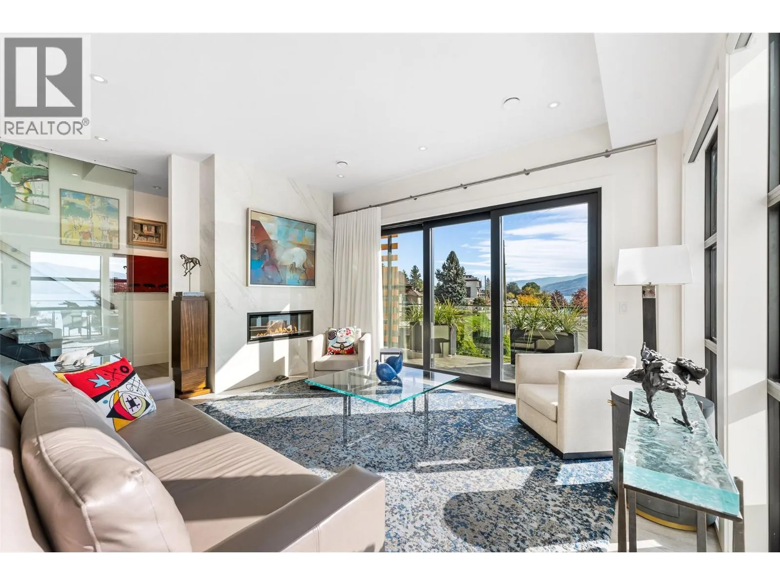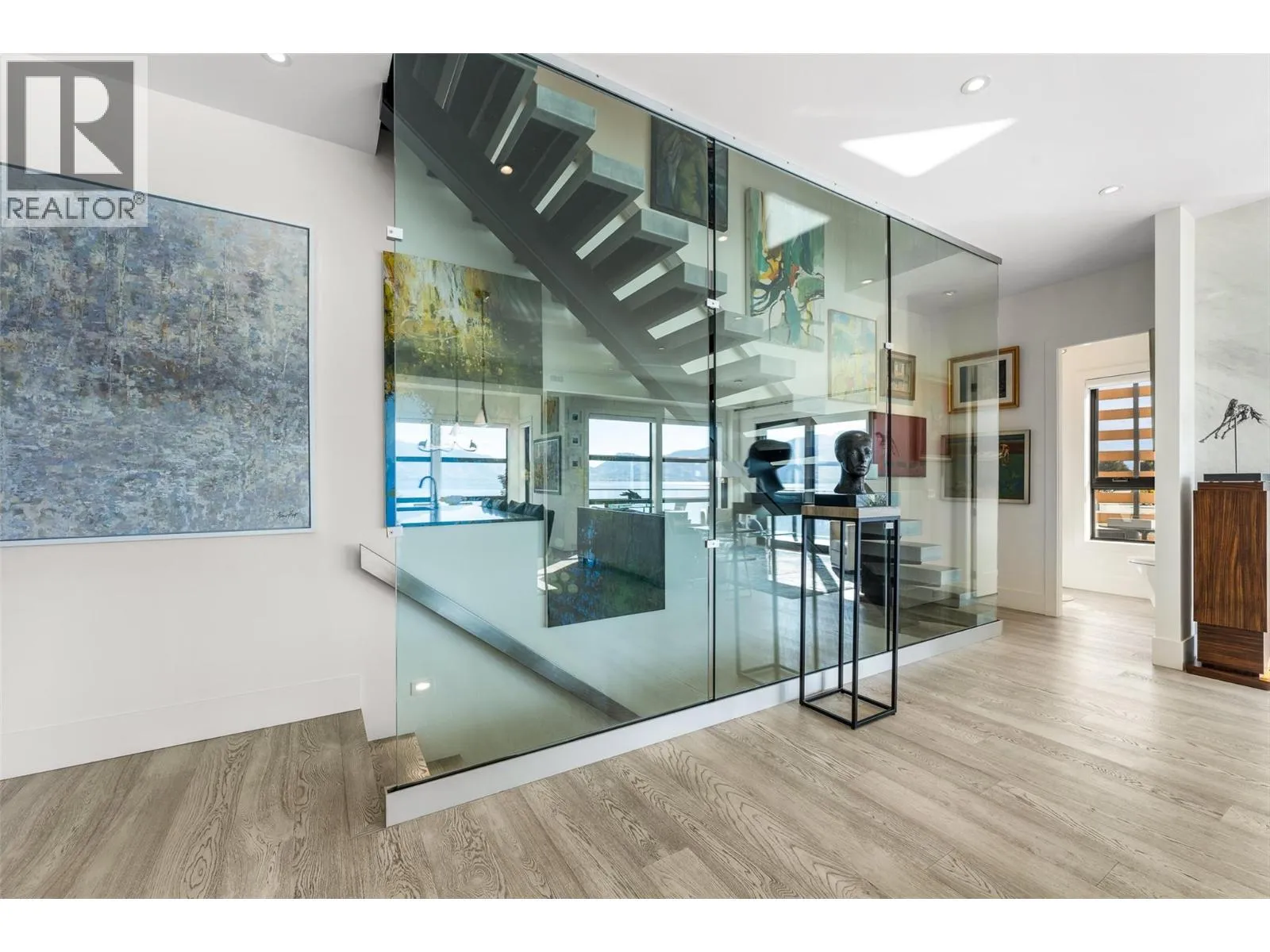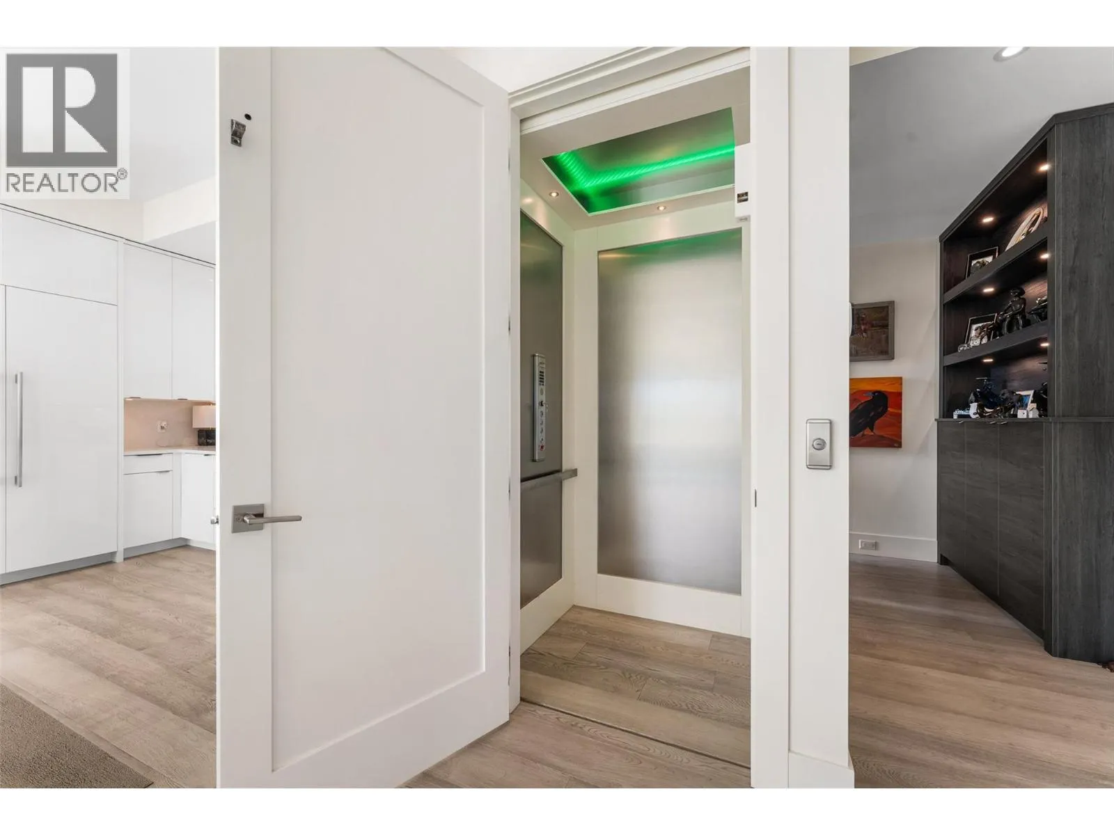 Set in the heart of Peachlandâs vibrant waterfront, this architecturally striking residence by Lakepoint Homes offers refined design and a seamless connection to the Okanagan lifestyle. One of only seven exclusive homes, this end unit sits closest to the water, just steps from the beach, cafes and boutique shops along Beach Avenue. Soaring 10-ft ceilings and floor-to-ceiling Marvin windows flood the interior with natural light, while wide-plank white oak floors and a floating glass staircase add a sense of understated sophistication. The open-concept main level is ideal for entertaining, featuring a chefâs kitchen with Thermador appliances, quartz surfaces, and a statement island that flows into the dining and living areas, framed by panoramic lake and mountain views. Expansive sliding doors open to a wrap-around deck with glass railings, extending your living space outdoors. A private elevator connects all three levels, including the tranquil upper floor where the primary suite offers two walk-in closets, a spa-inspired ensuite, and access to two serene view decks. An additional bedroom with an adjacent bath, office, and laundry complete the layout. The double garage provides abundant storage, epoxy floors, and EV charging. With multiple, distinct outdoor living spaces and meticulous attention to detail throughout, this home embodies elevated lakeside living in one of Peachlandâs most charming waterfront communities. (id:27476)