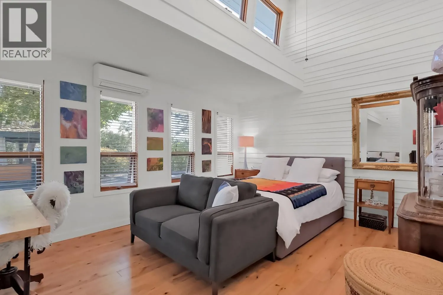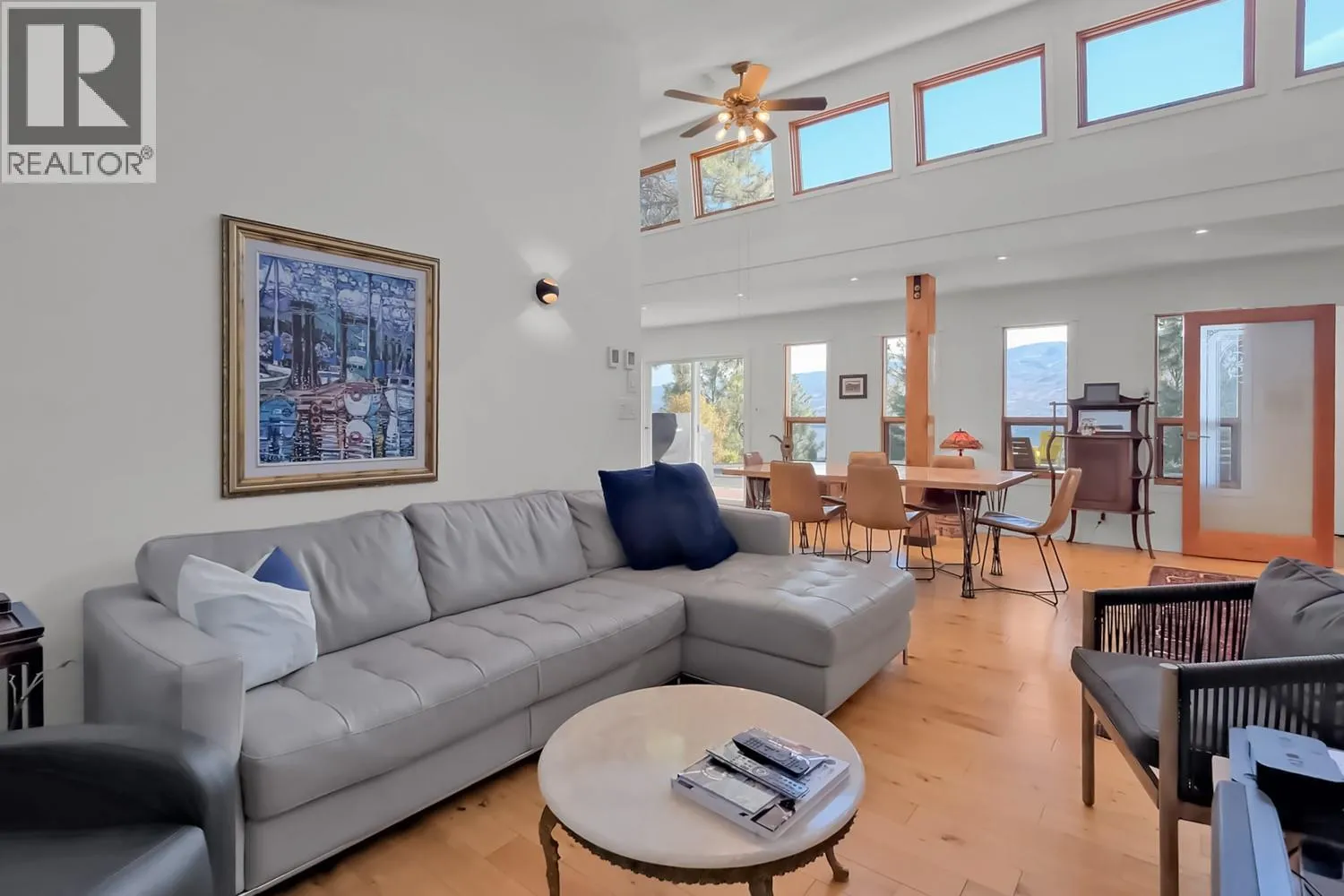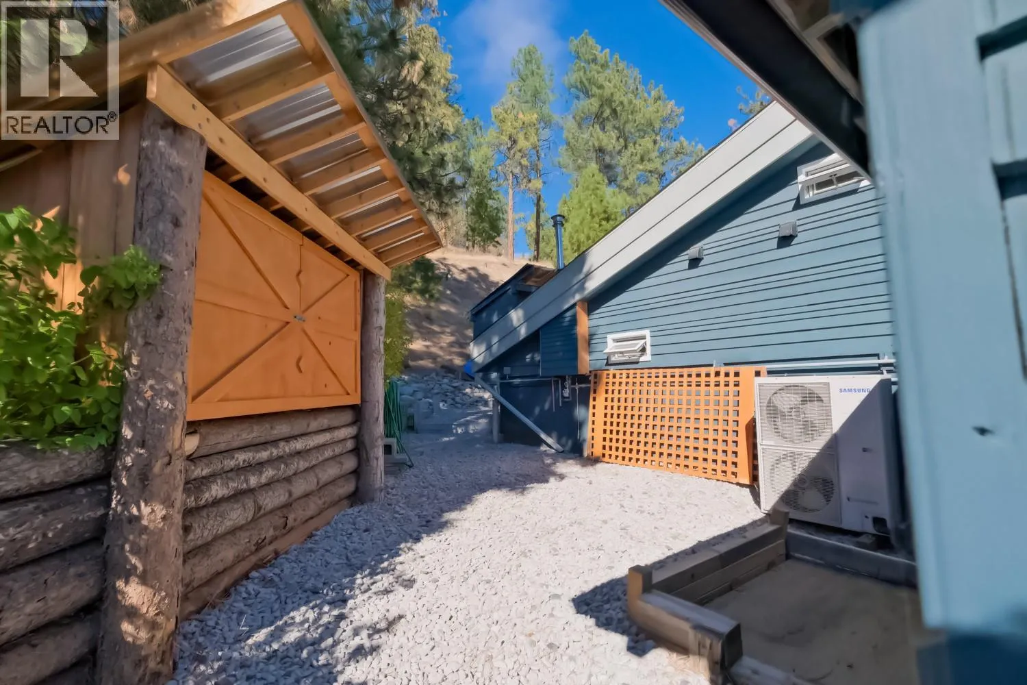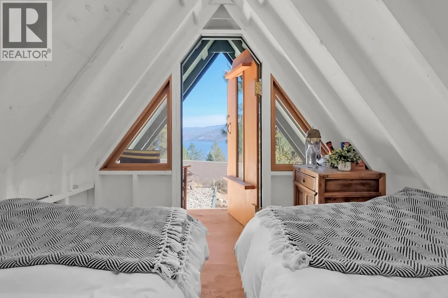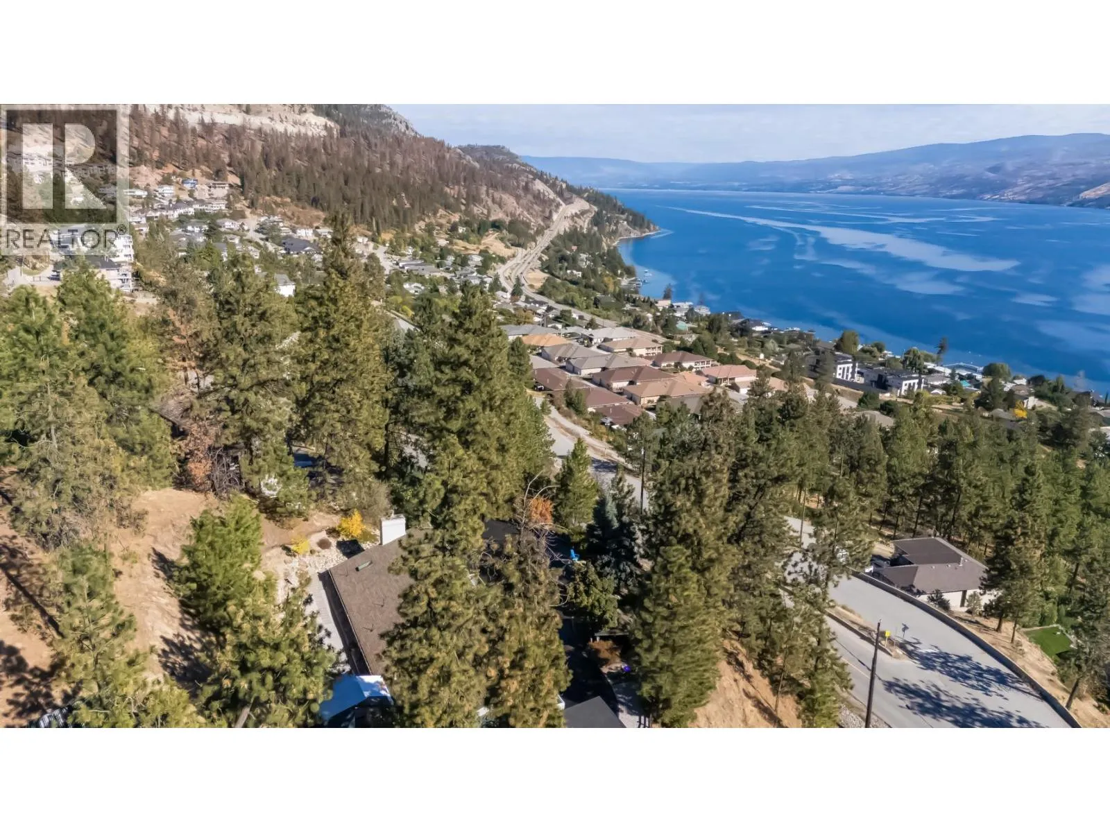 Perched above the shimmering waters of Okanagan Lake, this architectural, custom-designed home is a private sanctuary blending timeless craftsmanship with modern comfort. Thoughtfully positioned to capture sweeping lake and valley views, it offers privacy in a peaceful setting. Vaulted ceilings, exposed cedar beams, and engineered oak floors are complemented by 7-zone in-floor heating, creating relaxed sophistication throughout. The main home features 2 bedrooms and 2 bathrooms, including a spacious primary suite with a luxurious ensuite and sunken tub. An open-concept living area with a gas fireplace and large windows fills the home with natural light and stunning views. A self-contained suite with its own fireplace, cooktop, and private entrance offers flexibility for guests or income potential. Set on a gently sloped lakeview lot with no immediate neighbours, the property includes open parking, storage sheds, and a charming bunky with electricity, ideal as a studio or guest retreat. Minutes from Peachlandâs waterfront, trails, and wineries, this home embodies the Okanagan lifestyle of beauty, design, and privacy. (id:27476)