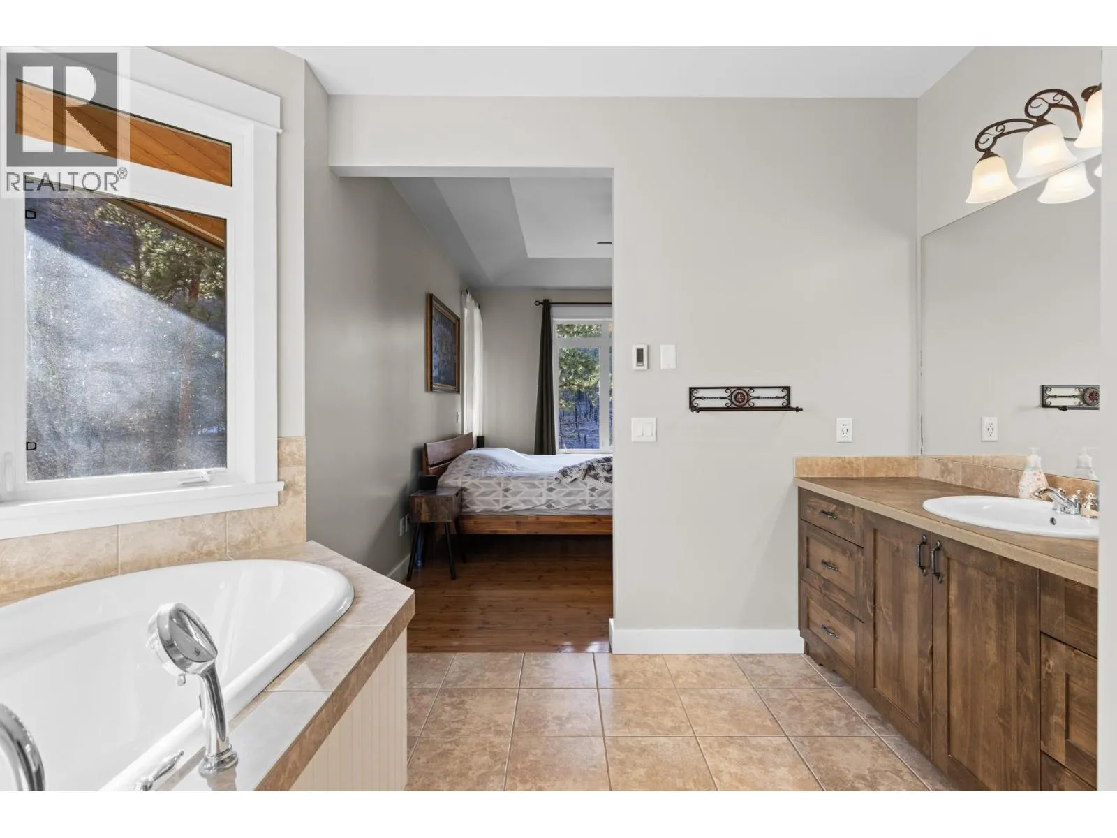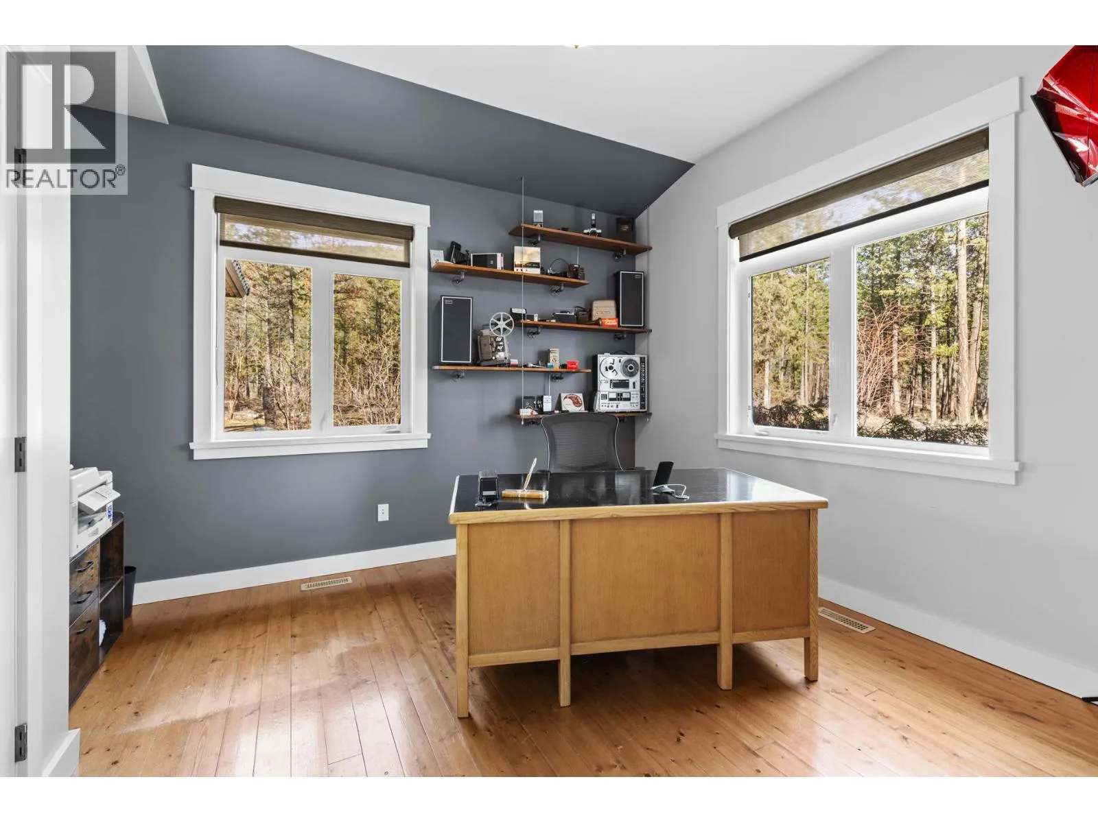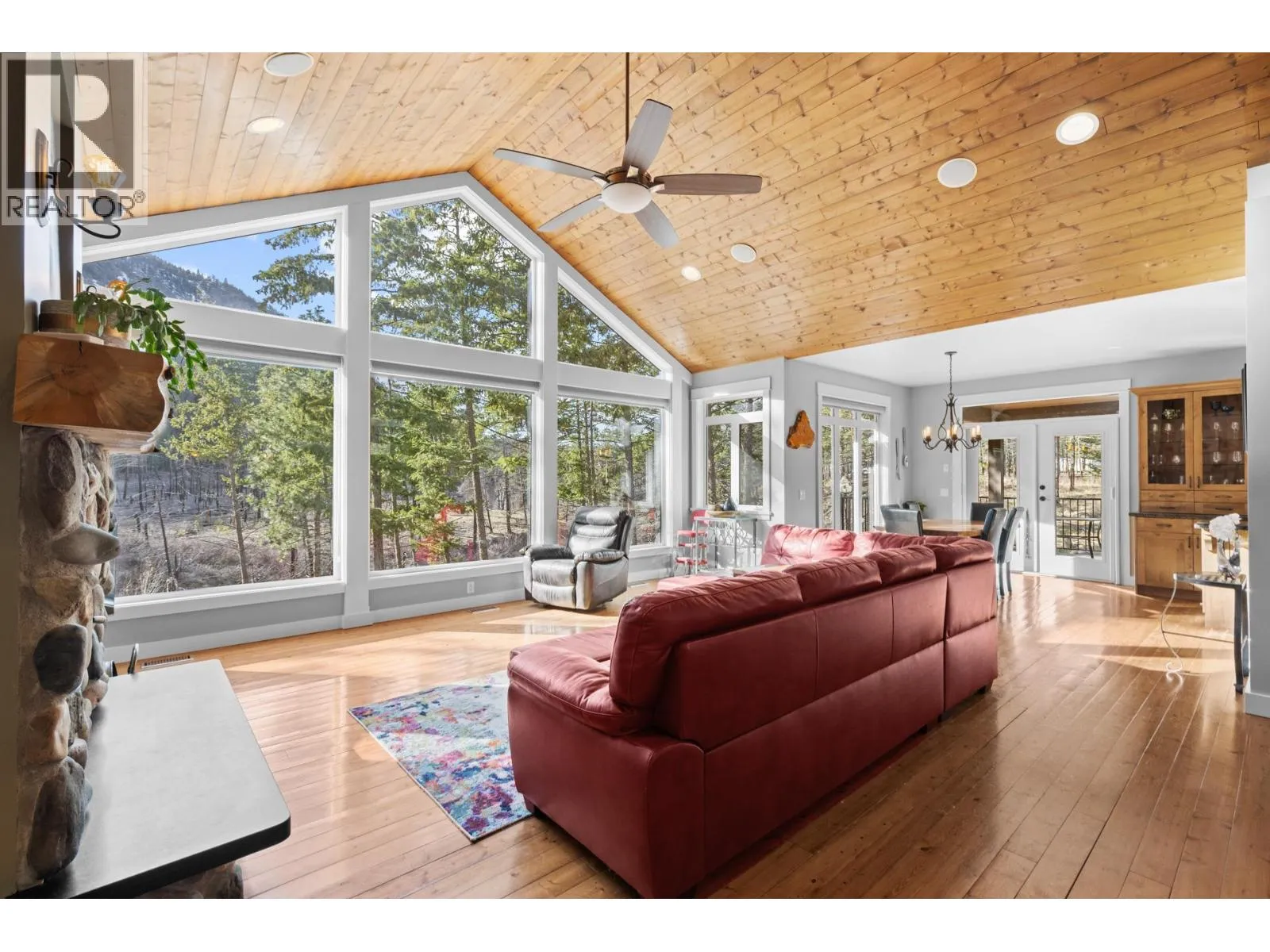 Complete privacy,14 acre property located in Peachland above Trepanier creek. Minutes to all of the amenities of Peachland and West Kelowna, 20 minutes to downtown Kelowna. Featuring a custom built, 5 bdrm rancher, with a lower level 1 bed in law suite(400amp service to the main house). Including 23x40 detached shop with a studio suite attached. BONUS this property includes a 3 Bedroom Modular home with separate 200amp service. MORTGAGE HELPER opportunity while giving everyone privacy. This property features many upgrades and to mention few: 48 double solar panel system installed(21KW system) Live off grid. 2 EV charging stations. New Hot tub. 2 RV Sani dumps. New Kitchen appliances & W/D, repaint of the exterior of the home. Wine room. Rebuilt fireplace.. and so much more! The Upper level is complete with a primary bdrm Ensuite bath, open concept in the kitchen, dining and living area, a 2nd bdrm (or Office), half bath(plumbed to be a full bath), laundry room, boot room, vaulted ceilings, real rock and solid timber features, wood floors, granite countertops, stainless steel appliances, covered deck and patio area with views of the valley and creek. The lower level has a media room, wine room, tons of storage a 3rd bathroom and 2 more full bedrooms. The lower level suite has acoustic sound proofing in the ceiling, 1 bedroom, office area, separate laundry, full bath, private outdoor patio, wet bar(plumbing for a stove)and living room. (id:27476)