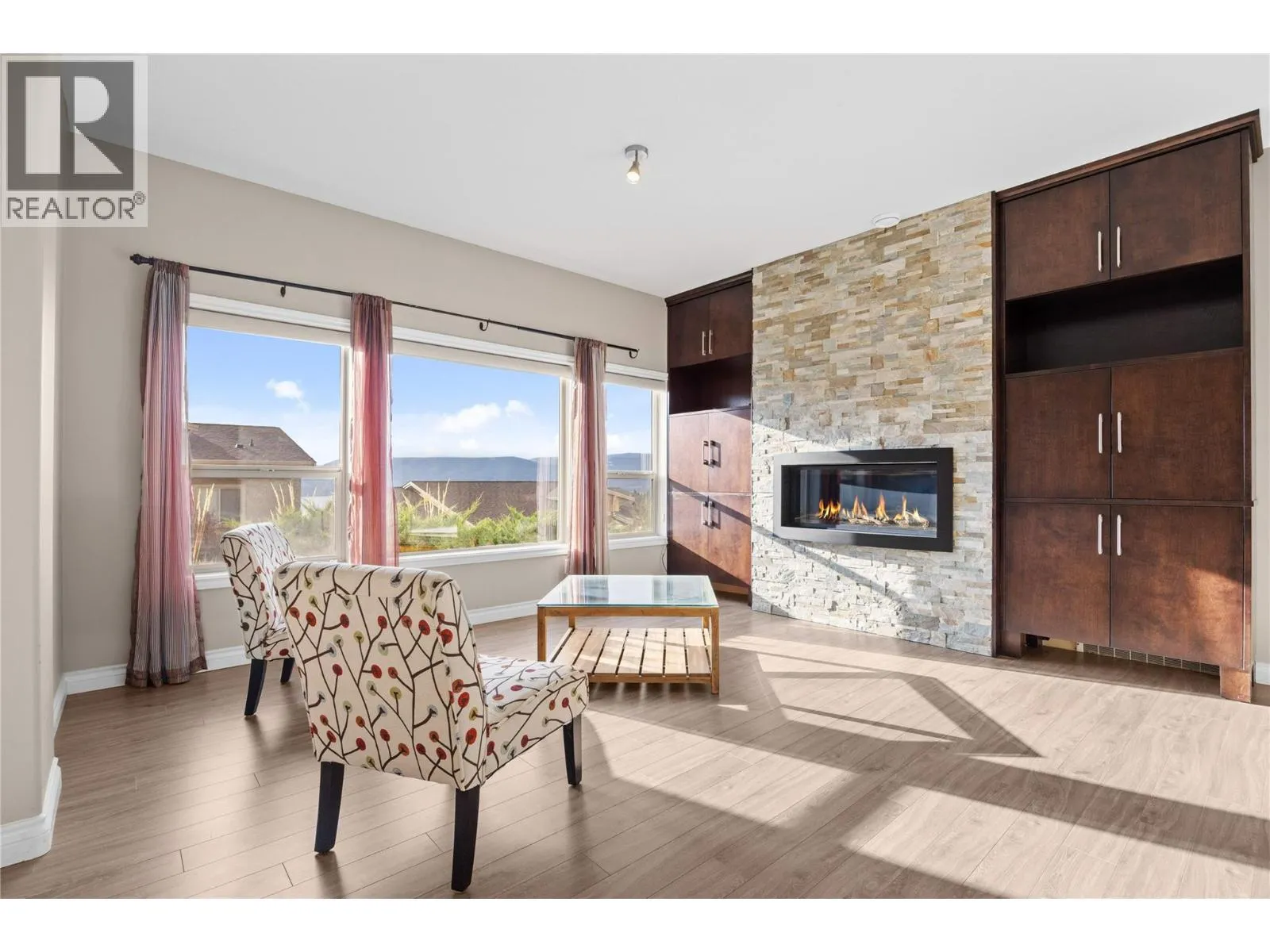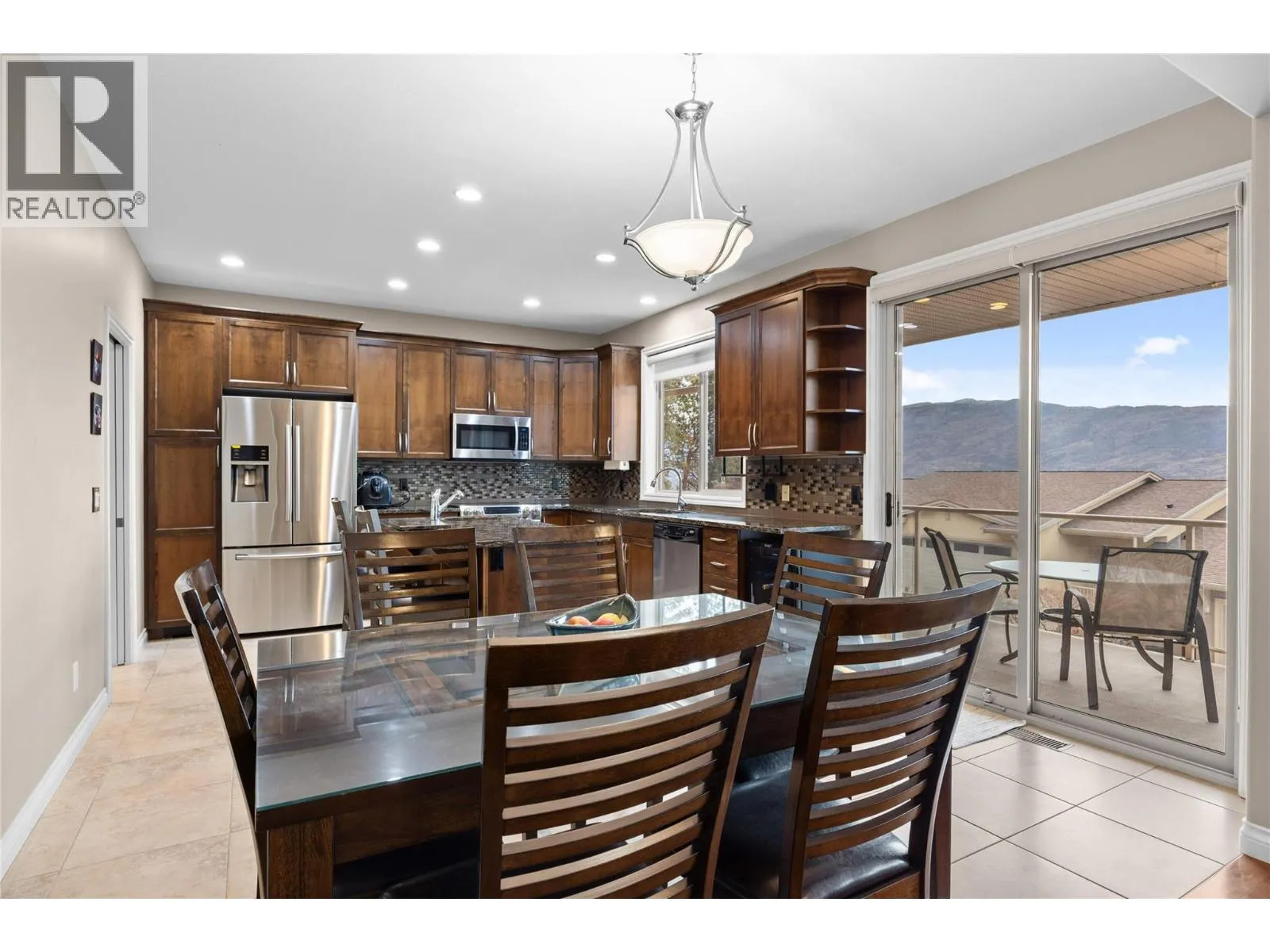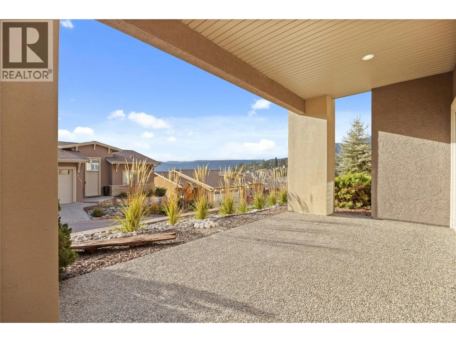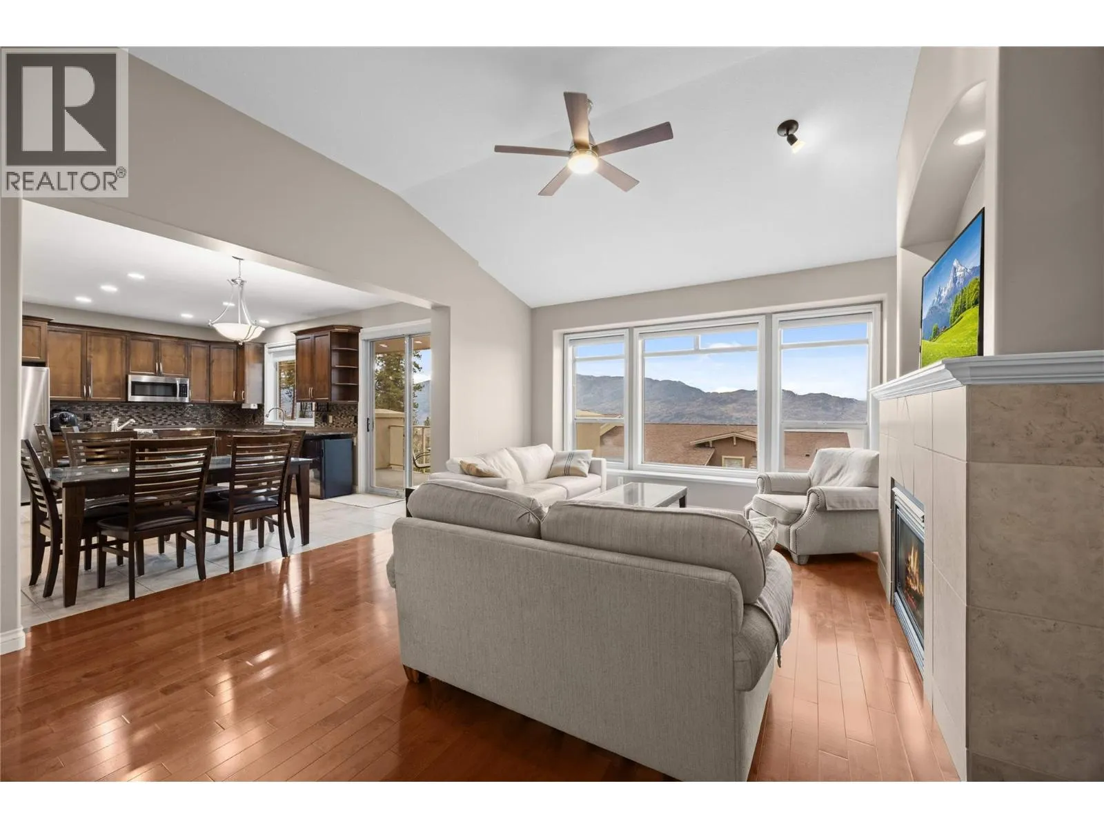 Enjoy beautiful lake and mountain views from this lovely 3-bed / 3-bath end-unit townhome in the highly sought-after Island View Villas. The main level features an open-concept living space with vaulted ceilings, granite countertops, Samsung stainless-steel appliances, a spacious walk-in pantry, beautiful hardwood flooring, and a cozy gas fireplace. A large covered deck extends your living area outdoorsâperfect for entertaining. The primary bedroom includes a 5-piece ensuite with dual vanities, a shower, and a soaker tub. A generously sized laundry room with a sink and cabinetry for added convenience completes the main floor living space. The lower level is ideal for guests or extended living, offering a large family room with custom cabinetry and a stone linear gas fireplace, access to a covered patio, two additional bedrooms, a full bathroom, and an unfinished storage room. This well-maintained home also features a freshly painted exterior, a larger lot with low-maintenance landscaping and a newer retaining wall, a water softener, a double garage, a gas BBQ outlet on the upper deck, and access to the community clubhouse. All of this is just minutes from Okanagan Lake and local amenities. Whether you're seeking a full-time residence or the perfect summer retreat, this townhome offers an ideal blend of size, comfort, and the Okanagan lifestyle. (id:27476)