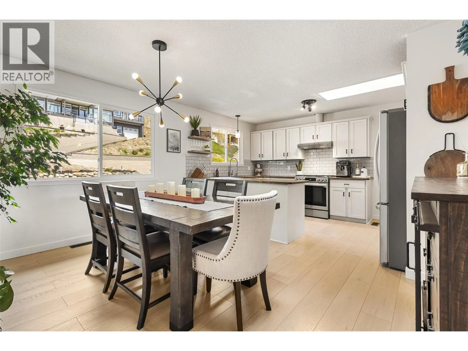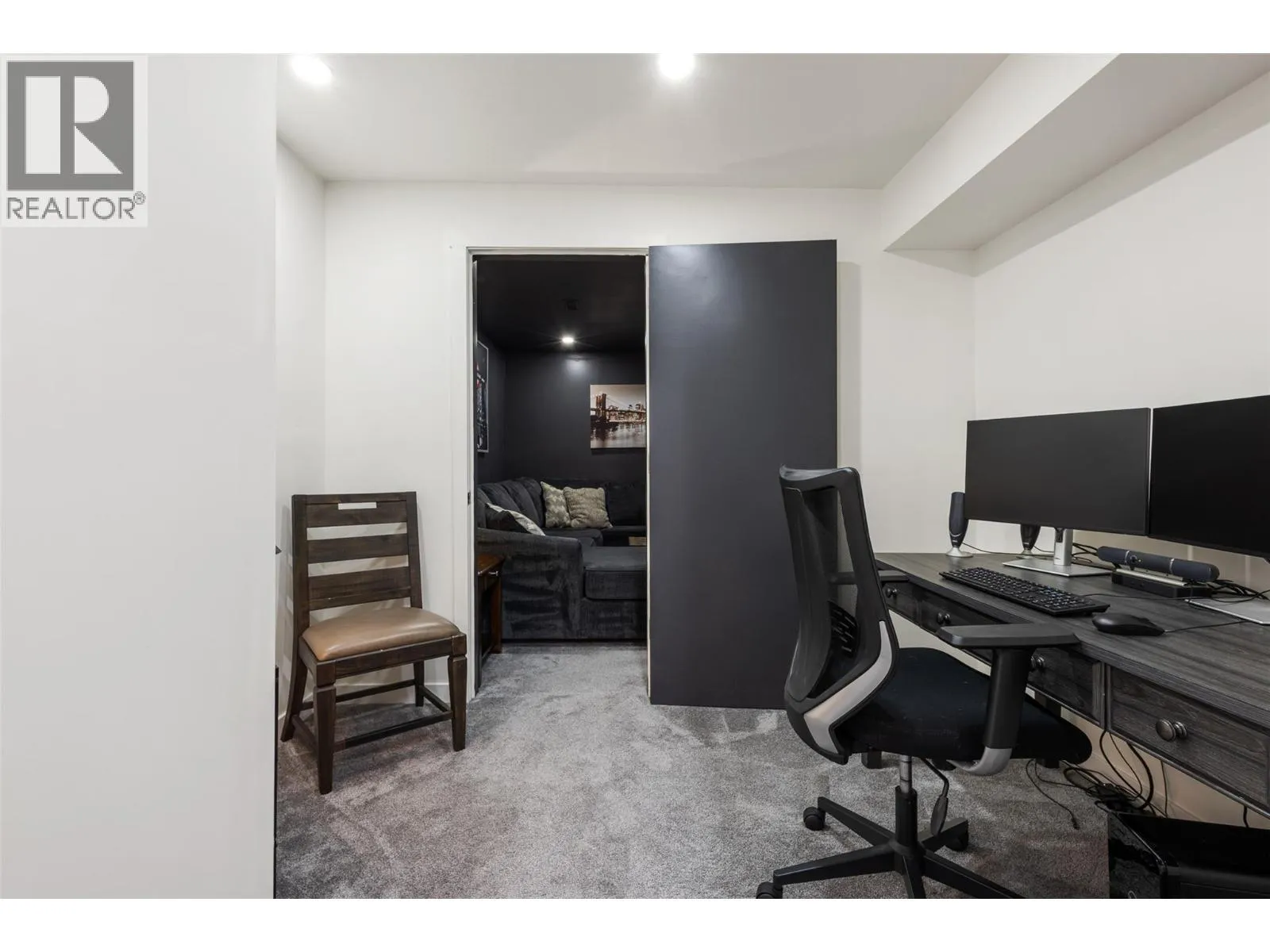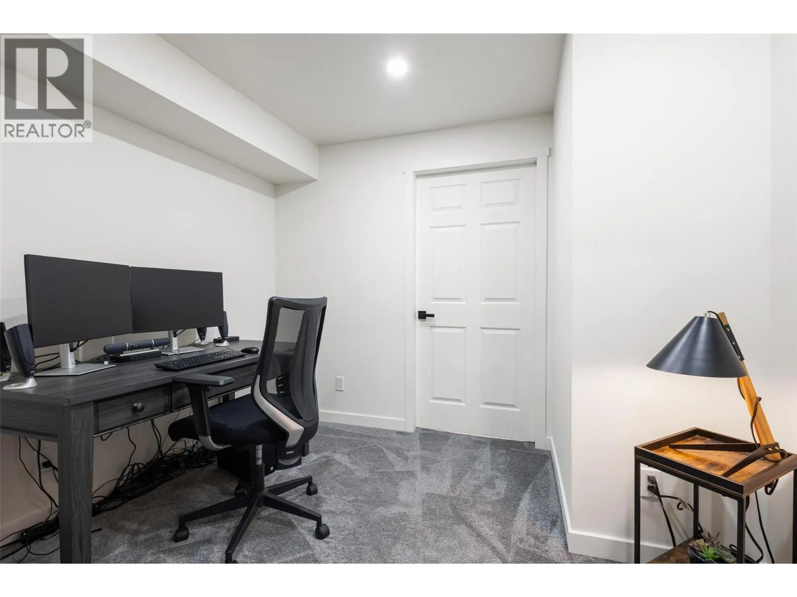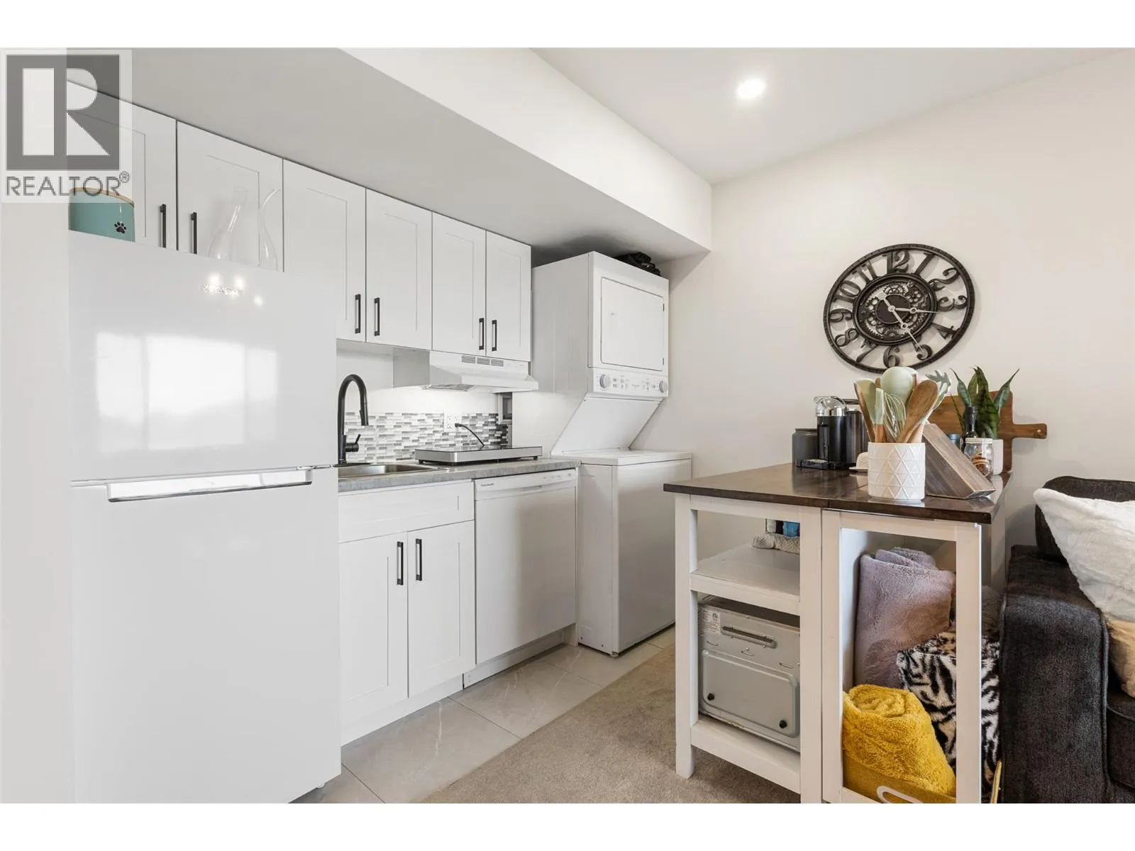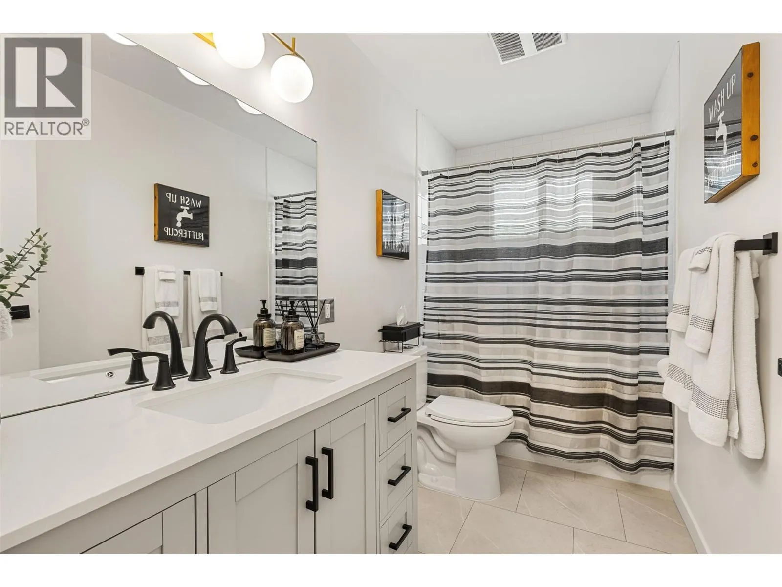 Welcome to this beautifully renovated rancher with a fully finished walkout basement, tucked away on a quiet cul-de-sac with panoramic lake and mountain views from nearly every room. Extensively updated with modern finishes, the main level features a spacious primary bedroom with a sleek ensuite, custom built-in closets, and sliding door access to a view balcony. The open-concept kitchen with brand-new stainless steel appliances flows into the living room with a cozy gas fireplace. A generous guest bedroom that comfortably fits a king bed, a four-piece main bathroom, and an oversized single-car garage complete the main level. The bright walkout basement offers exceptional flexibility with a private office, flex space, theatre-grade insulated media room, workshop/storage room, and new washer and dryer. A self-contained one-bedroom in-law suite with a private entrance provides excellent potential for extended family or rental income. Set on a landscaped 0.22-acre lot, the fully fenced yard includes in-ground sprinklers, a hot tub on the lower patio, and RV parking. This home offers modern comfort, functionality, and stunning natural surroundings perfect for enjoying the Okanagan lifestyle. ***Extensive updates include: All plumbing upgraded to PEX, Electrical outlets and switches upgraded, GFI outlets added in bathrooms, venting upgraded throughout, upgraded natural gas meter, A/C installed, new flooring throughout, interior and exterior paint, all trim replaced, door handles replaced, Pot lights added in basement, Theatre-grade insulation added to downstairs media room, Updated fireplace surrounding, built-in closets, backsplash kitchen, cabinets new hardware, appliances in main home, new appliances in suite, All main floor bathrooms fully renovated, new window coverings, landscaping, tree removal, fencing added, Hot tub, new septic 2018, new roof in 2015. (id:27476)