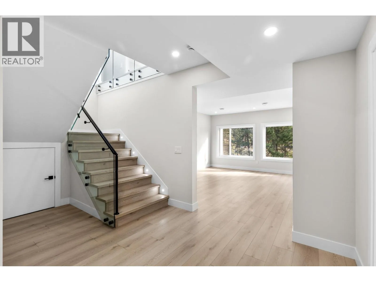 Welcome Home. This brand new home, sits above it all in Peachland. With views from Kelowna, to Rattlesnake Island, to Summerland. Upon entry, you are met with a vast living space, drenched in dappled light from the adjacent forest and south facing lake views. The main floor offers your master retreat, with a full ensuite, walk in closet, and laundry all on your main floor. The kitchen is open to the dining and living room to take advantage of the view from every aspect. The Kitchen includes Fisher Paykel panelled appliances, boasting a large island for entertaining. Upstairs features a large mud room with built in millwork for storage. The lower level boasts two additional bedrooms. The 3rd basement bedroom is located in a one bedroom suite. Community features new sidewalks and street lights for accessibility, is directly adjacent to the Gladstone trail head, and is located in a dead end so limited through traffic. Do not miss out, call or text Rachel Morrison to set up a showing! **Never lived in. GST NOT included in purchase price** (id:27476)