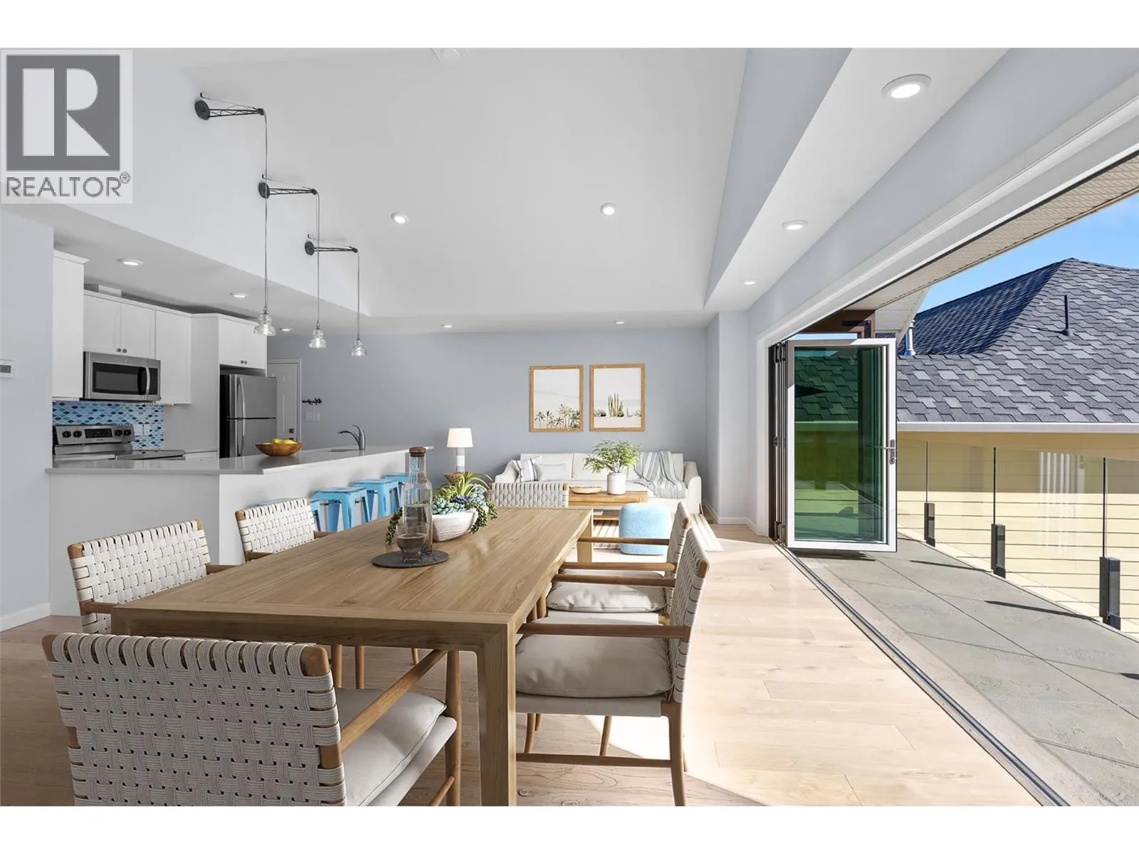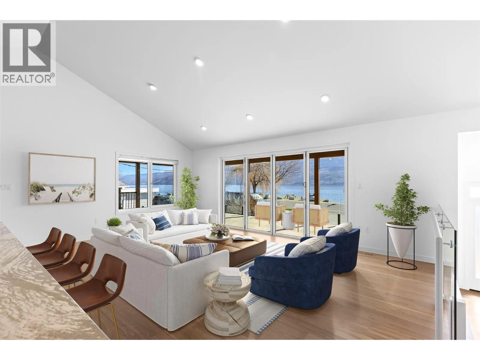 Rare semi-waterfront opportunity on prestigious Beach Avenue, directly across from Okanagan Lake, offering exceptional lake views and the ultimate Okanagan lifestyle. This thoughtfully designed residence captures stunning lake views and offers open-plan living with seamless indoor-outdoor living through multiple expansive glass bi-folding doors that open onto a covered deck with gas fireplace, stamped concrete, and glass railings. The custom kitchen features Miele appliances, Sub-Zero fridge, gas cooktop on a large quartz island, and vaulted ceilings above recently refinished walnut hardwood floors throughout the main living area. The primary retreat offers folding glass doors to a private lakeview deck, walk-in closet, and dream ensuite with custom concrete-finished shower. The bright lower level features a huge family room, two additional bedrooms (one with walk-in closet), full laundry, abundant windows, and space to create a fourth bedroom plus an office or gym. Above the oversized heated 29x29 double garage sits a 900 sq/ft legal one-bedroom suite with high ceilings, private laundry, folding glass doors to its own deck, and incredible lake viewsâideal for guests, family, or rental income. Flat lot with flat driveway parking for up to eight vehicles and low-maintenance zeroscape landscaping. A rare Beach Avenue offering with lake views, a legal suite, and exceptional parkingâdelivering the complete Okanagan lifestyle just steps from the lake. (id:27476)