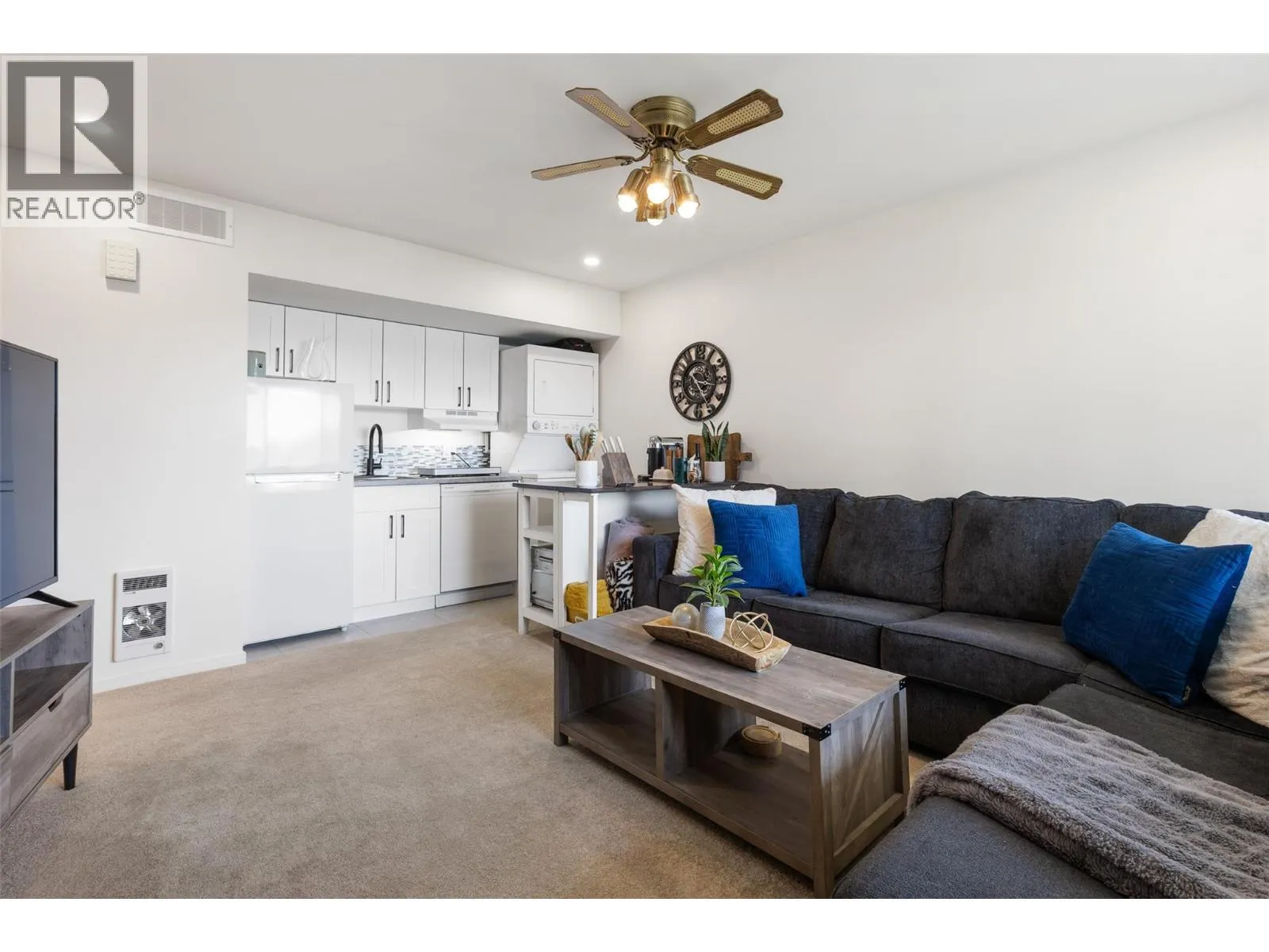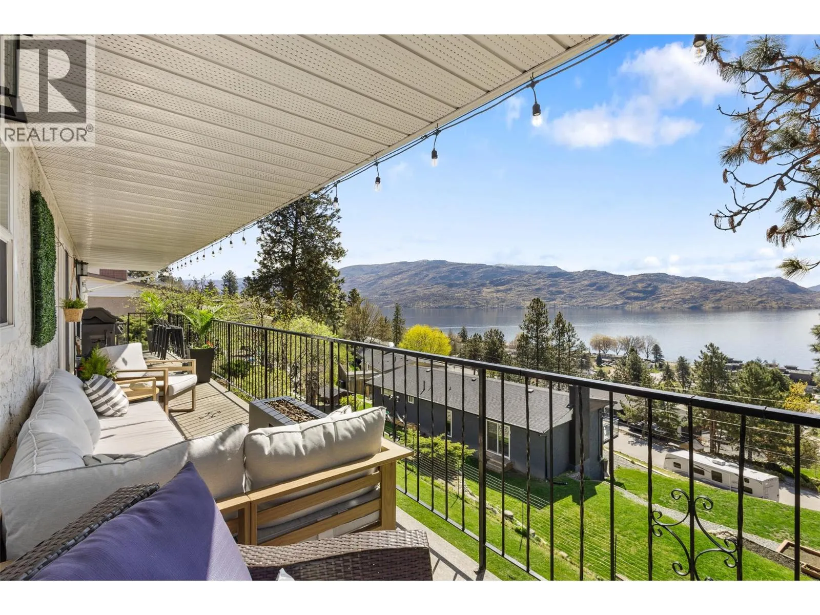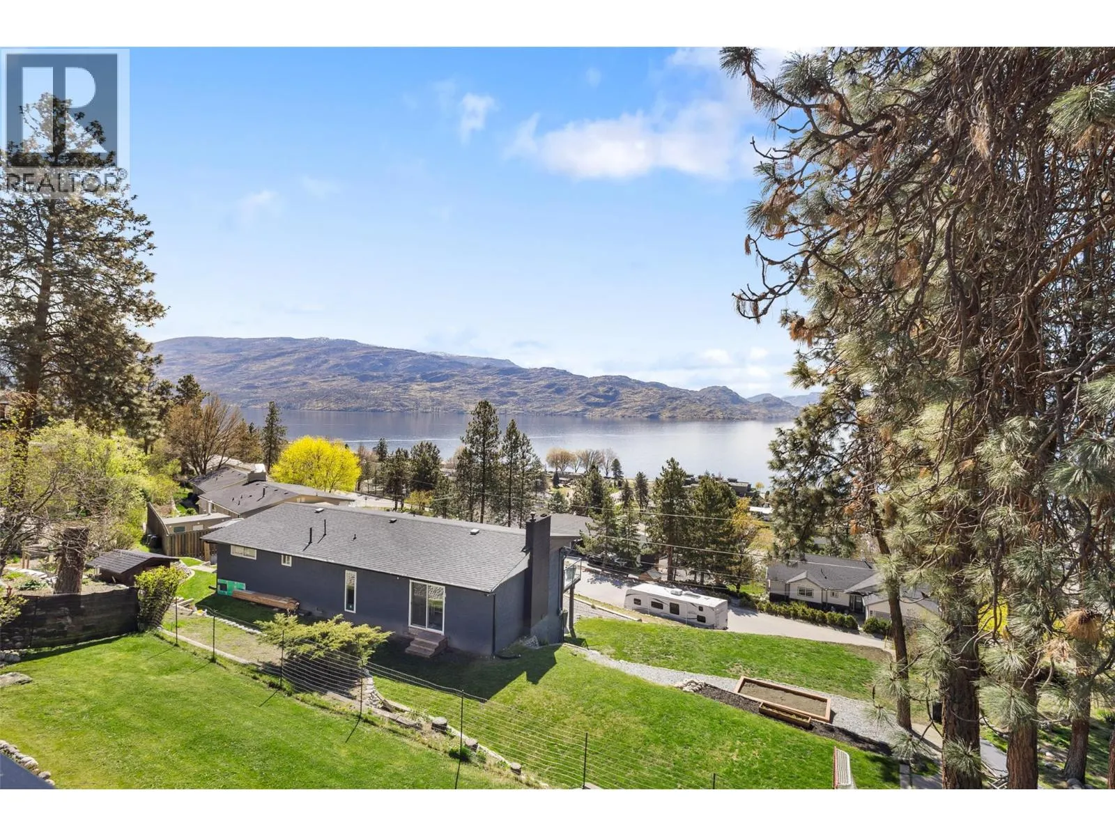 Enjoy panoramic lake and mountain views from this beautifully renovated rancher with a fully finished walkout basement, tucked away on a quiet cul-de-sac. Designed to capture the scenery, the bright main level features open-concept living with a stylish kitchen, brand-new stainless steel appliances, and a cozy gas fireplace. The spacious primary bedroom includes a sleek ensuite, custom built-in closets, and sliding doors to a lake-view balcony. A generous guest bedroom, full bathroom, and oversized single-car garage complete the main floor. The walkout lower level offers excellent flexibility with a private office, recreation space, theatre-grade insulated media room, workshop/storage room, and new laundry. A self-contained one-bedroom in-law suite with private entranceprovides great potential for extended family or rental income. Set on a landscaped 0.22-acre lot, the fully fenced yard features in-ground irrigation, RV parking, and a lower patio with hot tubâperfect for relaxing and entertaining while enjoying the Okanagan views. Extensive upgrades include PEX plumbing, renovated bathrooms, new flooring, paint, trim, upgraded electrical, A/C installation, new appliances, landscaping, fencing, septic system (2018), and roof (2015). A rare opportunity to enjoy modern updates, flexible living space, and incredible lake views in a peaceful Peachland setting just minutes from the lake, wineries, and local amenities. (id:27476)