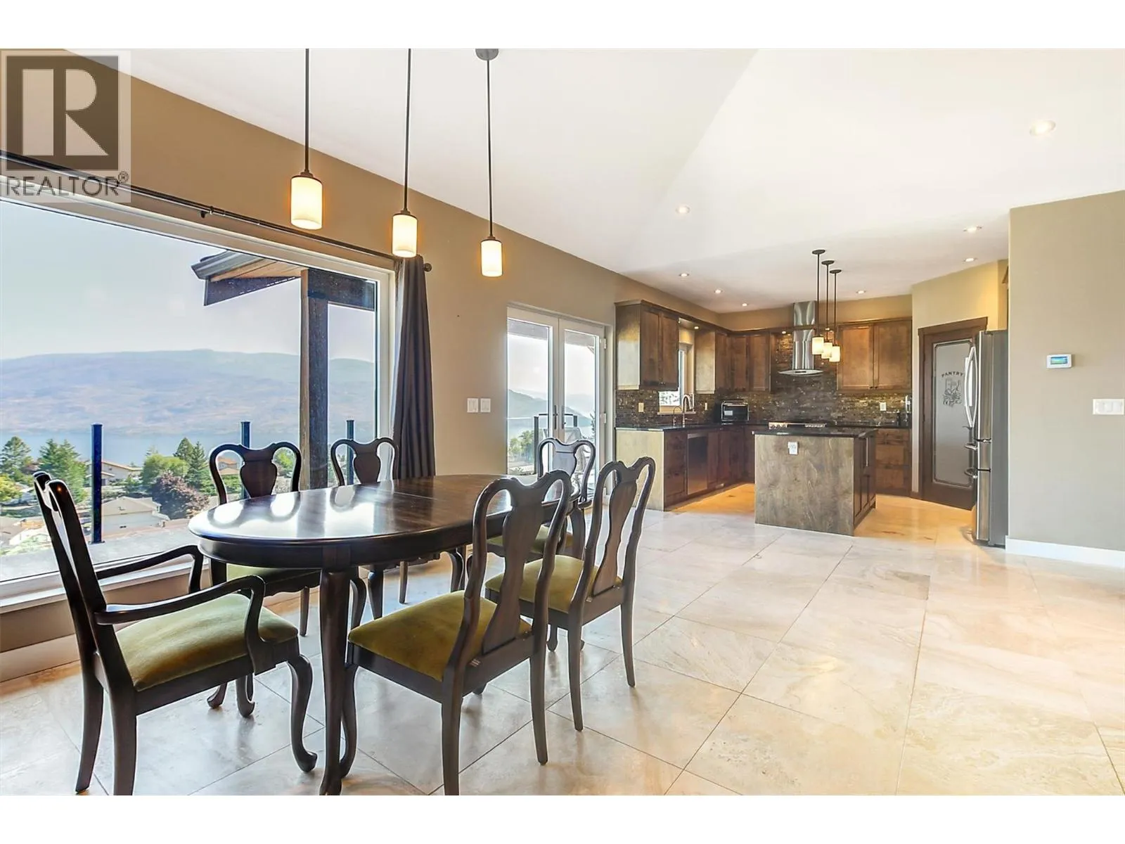 INCREDIBLE VIEWS FROM THIS QUALITY-BUILT CUSTOM HOME. Proudly presenting 6172 Seymoure Avenue with incredible Lake & Mountain views from Kelowna to Naramata. This 3,200 sq. ft. home has 4 bedrooms, 4 bathrooms, 2 full kitchens, 2 primary bedrooms with ensuites, 2 laundry rooms & a legal suite (2 bedrooms). This home offers incredible quality throughout with components normally found in multi-million dollar homes (extensive list available on request). Stamped concrete driveway with snow melting (& the front path & stairs on both sides of home), in-slab radiant heating throughout including the garage & the 400 sq. ft. suspended-slab shop. The home has been thoughtfully & tastefully built with lots of light due to the large windows & French Doors which also take in the breathtaking views. There are high-end Innotech multipoint locking triple sealed tilt & turn windows & doors. Acrylic stucco, tiled roof with snow retention bars, offering an excellent defence during fire season, plus stone & wood exterior finishing with a large front veranda & 2 oversized covered rear decks, with gas & power, also to take advantage of the incredible views. Custom Travertine tile in main living areas, custom tiled bathrooms, carpet in bedrooms, hardwood & vinyl flooring on both covered decks. This property has a large landscaped & irrigated lot (except for the sloped area) with space for 2 cars on the driveway plus additional RV parking & car charger. This home has it all, don't miss out! (id:27476)