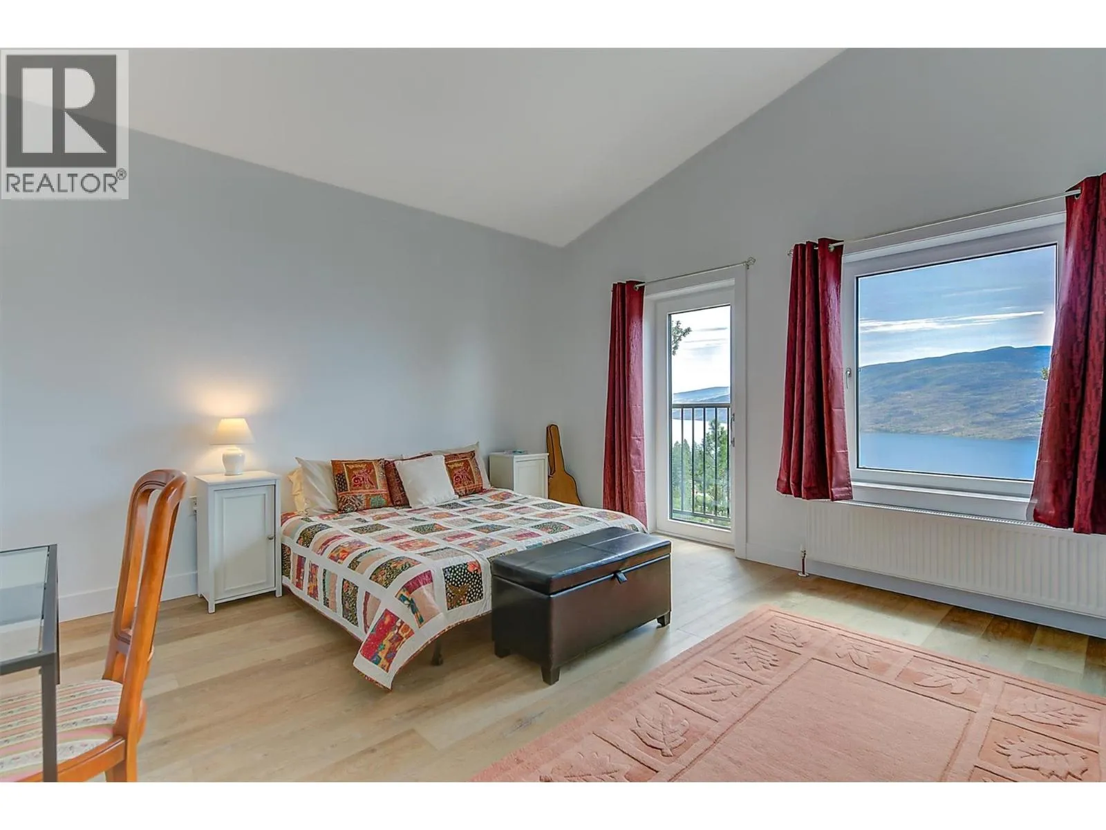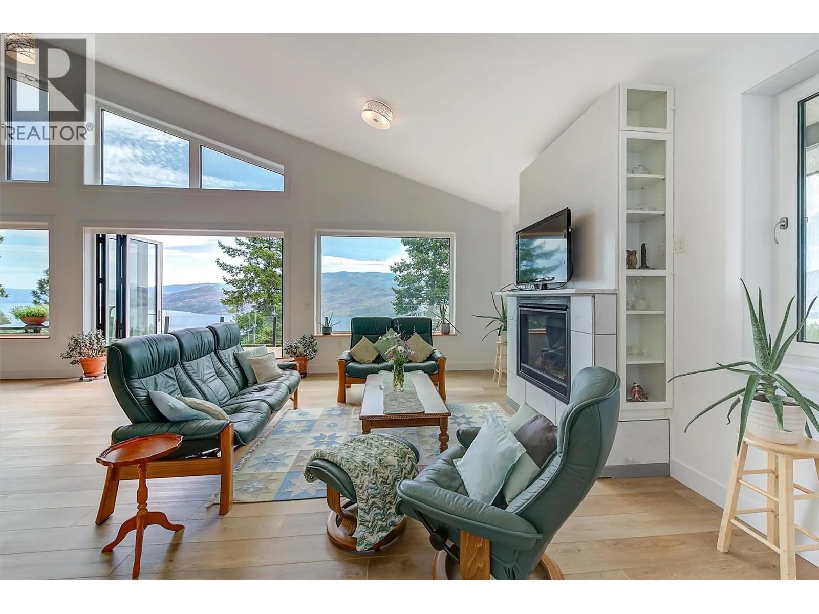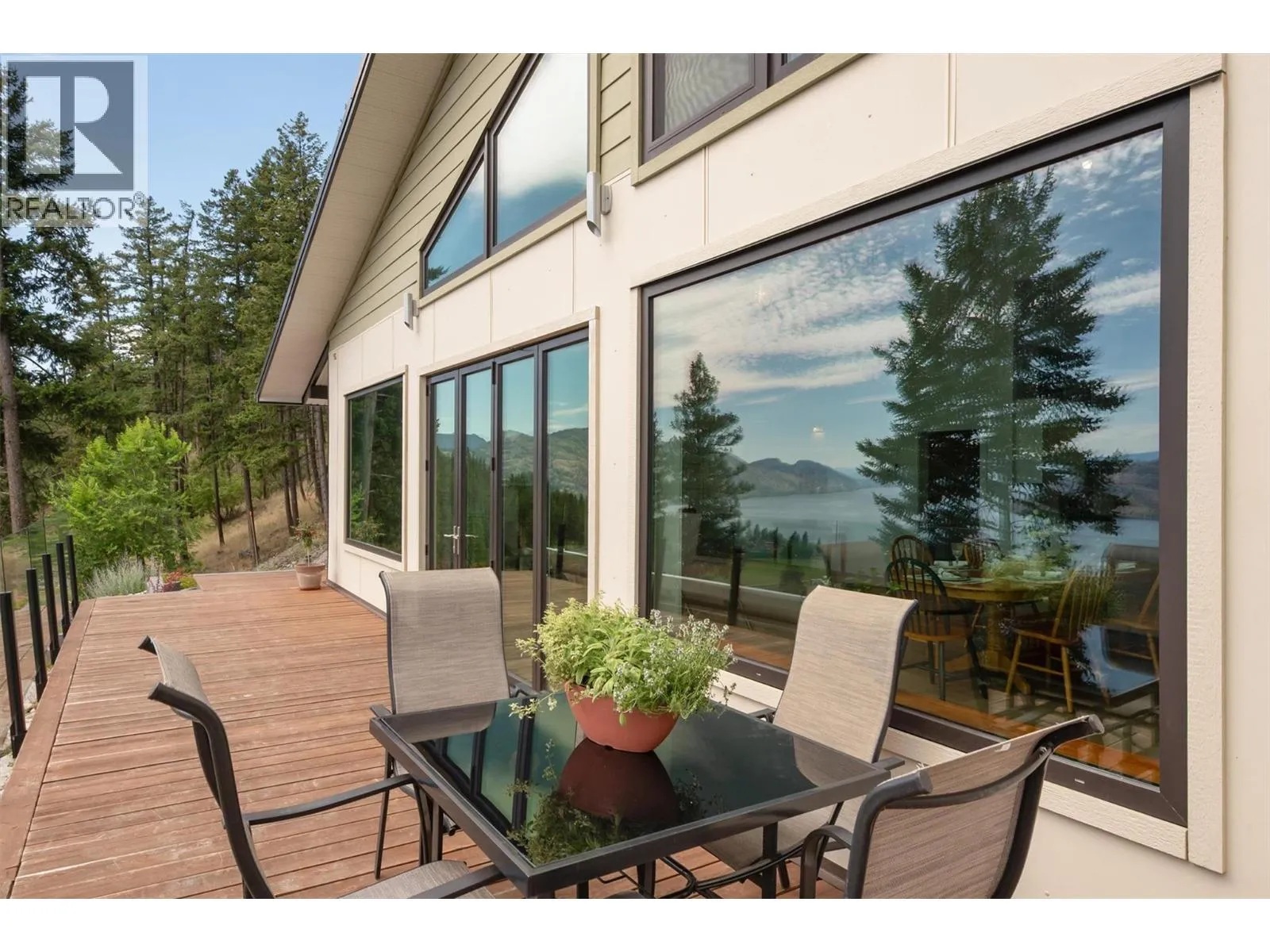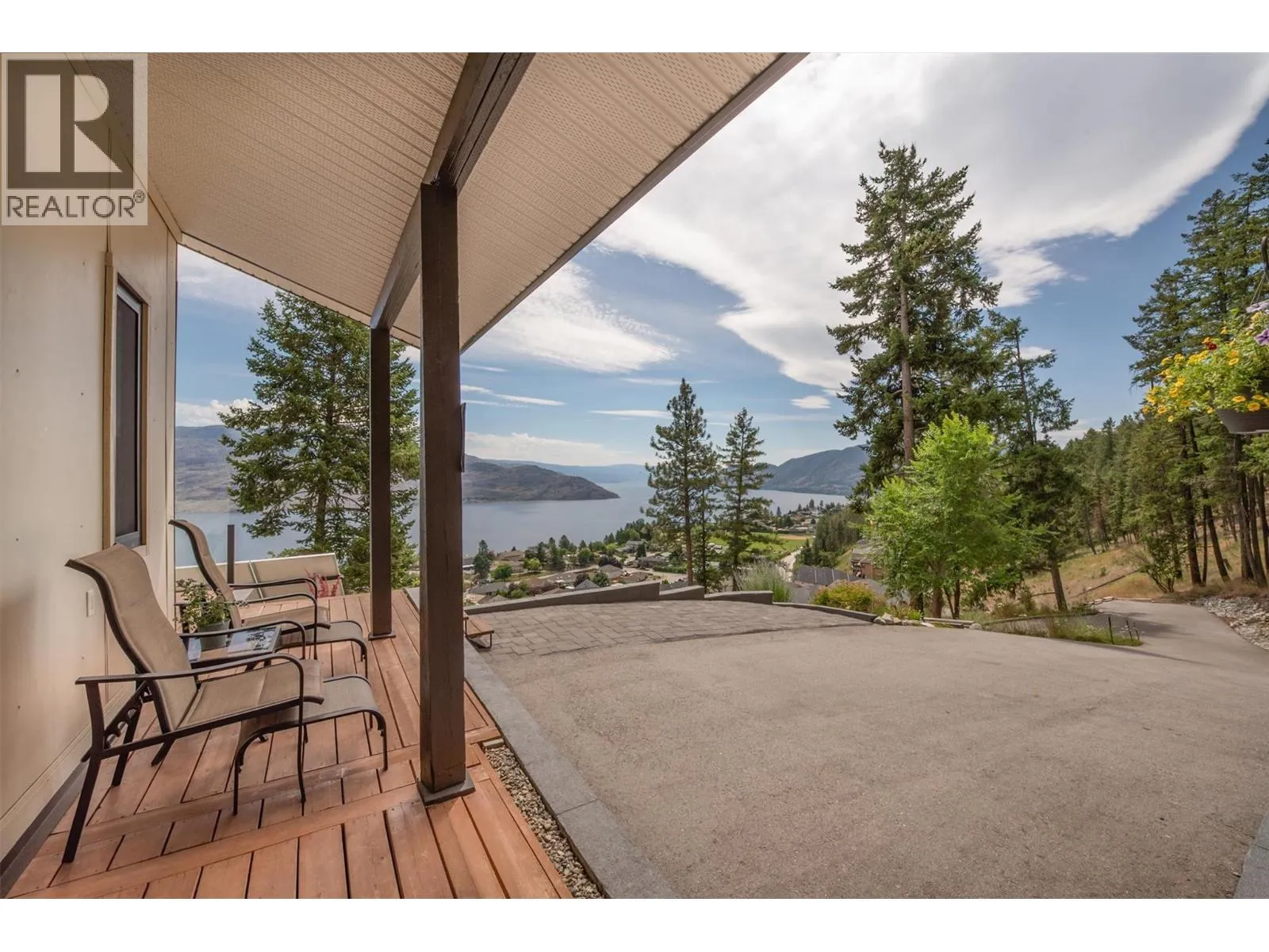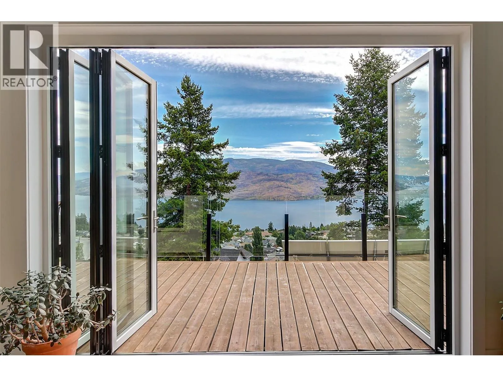 This stunning 2019 owner-built home offers thoughtful design and breathtaking panoramic views of Okanagan Lake and the surrounding mountains. Perched on the hillside, the home captures the scenery from both the spacious front deck and the bright interior living spaces. The open-concept main living area features soaring vaulted ceilings, a generous living room, and seamless flow into the dining area and beautifully designed chefâs kitchen complete with stainless steel appliances, quartz countertops, and a large islandâperfect for entertaining or everyday living. The home offers three spacious bedrooms, each with walk-in closets and private access to modern bathrooms, providing comfort and privacy for family or guests. Step outside to a peaceful garden patio surrounded by nature, or explore the nearby trail system for the ultimate quiet and private Okanagan lifestyle. Adding exceptional versatility, the property includes a separate one-bedroom legal suite with its own entrance, ideal for extended family, guests, or generating rental income. Built to exceed building code standards, this high-performance home is engineered to be fire-smart, wind-resistant, and earthquake-resistant, offering long-term durability and peace of mind. Year-round comfort is ensured with a super high-efficiency design, radiant in-floor heating, and ductless split air conditioning. Sustainability and energy efficiency are enhanced by a 10-kilowatt solar panel system, natural gas generator, and battery backup system, helping reduce utility costs while providing added security. Completing the home is an attached double garage with a Level 2 EV charger for modern convenience. Beautifully maintained and move-in ready, this Peachland property perfectly blends luxury, efficiency, and the relaxed Okanagan lifestyle. (id:27476)