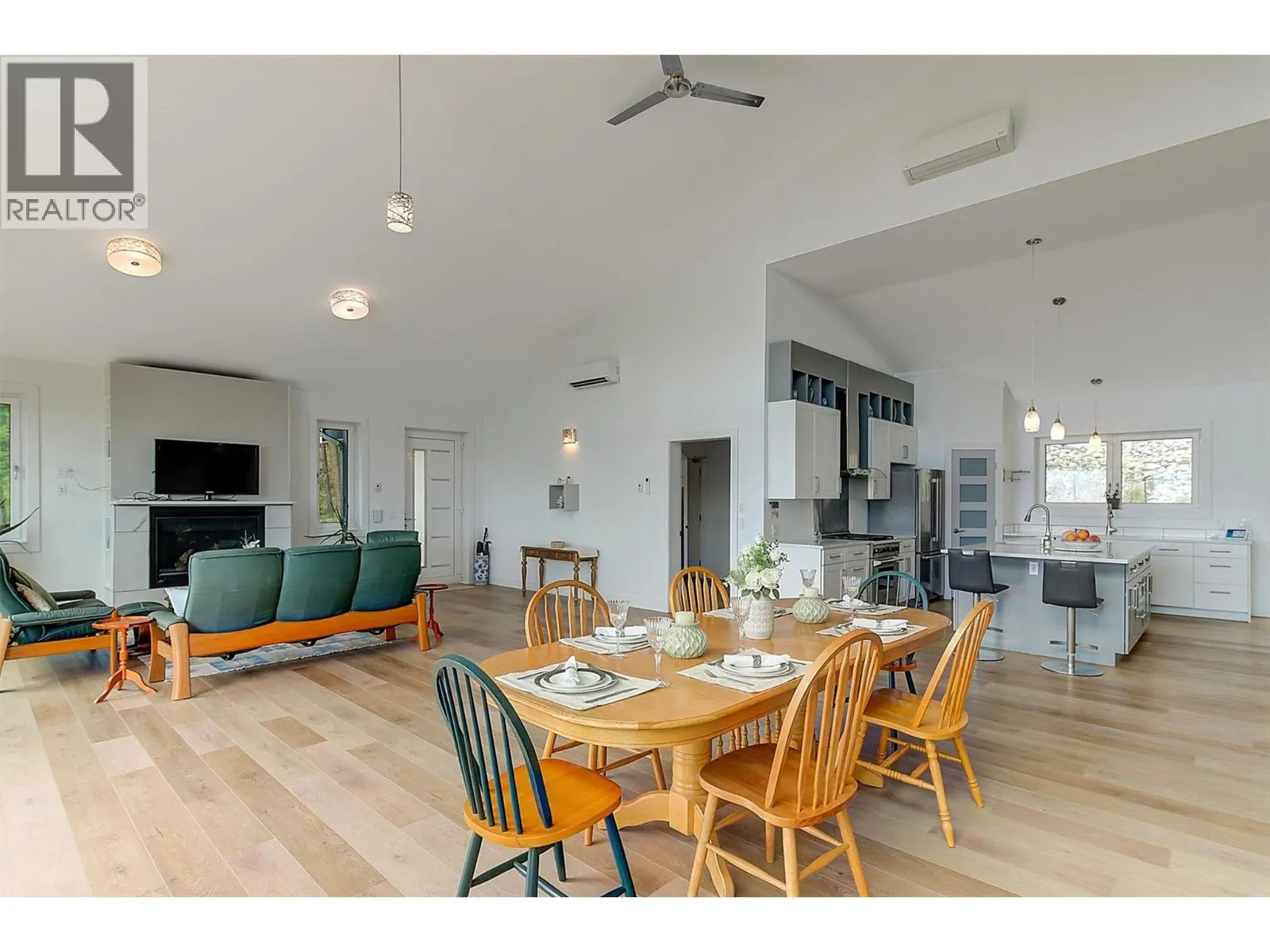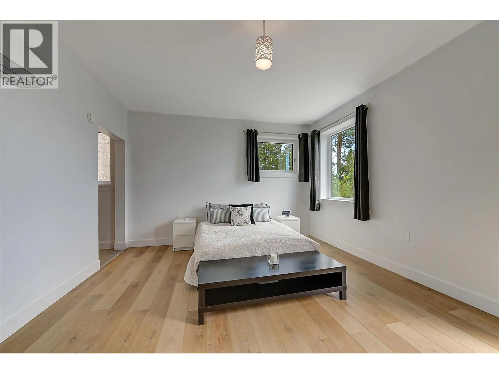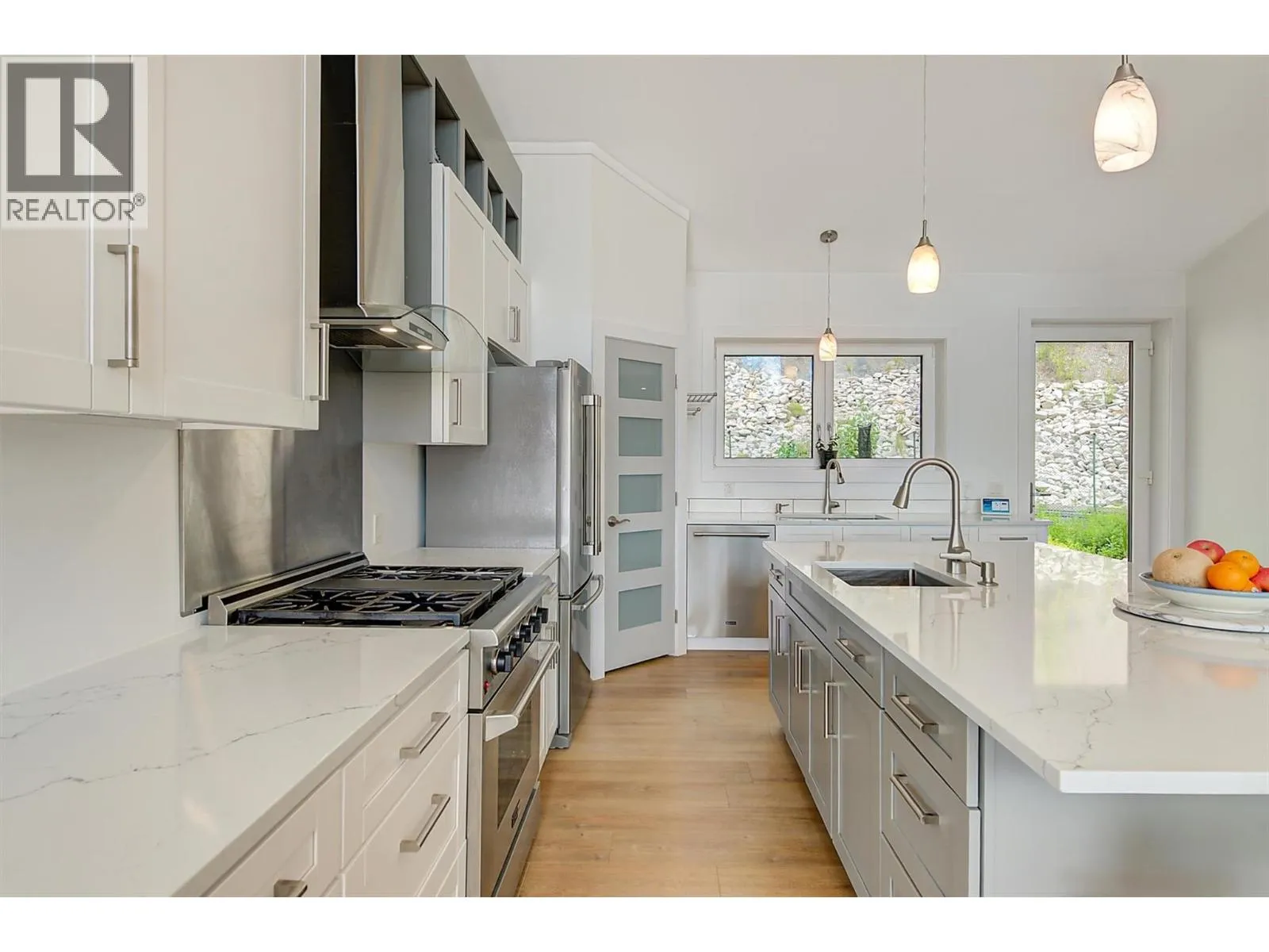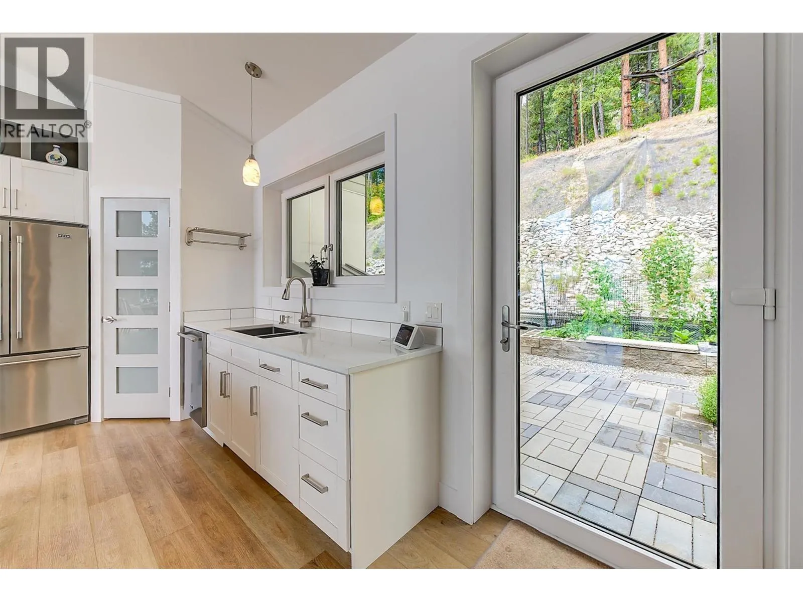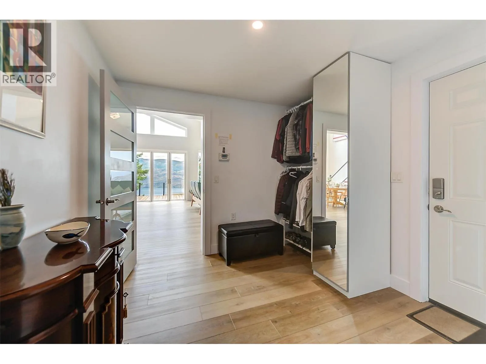 This stunning 2019 owner-built home offers thoughtful design and breathtaking panoramic views of Okanagan Lake and the surrounding mountains. Perched on the hillside, the home captures the scenery from both the spacious front deck and the bright interior living spaces. The open-concept main living area features soaring vaulted ceilings, a generous living room, and seamless flow into the dining area and beautifully designed chefâs kitchen complete with stainless steel appliances, quartz countertops, and a large islandâperfect for entertaining or everyday living. The home offers three spacious bedrooms, each with walk-in closets and private access to modern bathrooms, providing comfort and privacy for family or guests. Step outside to a peaceful garden patio surrounded by nature, or explore the nearby trail system for the ultimate quiet and private Okanagan lifestyle. Adding exceptional versatility, the property includes a separate one-bedroom legal suite with its own entrance, ideal for extended family, guests, or generating rental income. Built to exceed building code standards, this high-performance home is engineered to be fire-smart, wind-resistant, and earthquake-resistant, offering long-term durability and peace of mind. Year-round comfort is ensured with a super high-efficiency design, radiant in-floor heating, and ductless split air conditioning. Sustainability and energy efficiency are enhanced by a 10-kilowatt solar panel system, natural gas generator, and battery backup system, helping reduce utility costs while providing added security. Completing the home is an attached double garage with a Level 2 EV charger for modern convenience. Beautifully maintained and move-in ready, this Peachland property perfectly blends luxury, efficiency, and the relaxed Okanagan lifestyle. (id:27476)