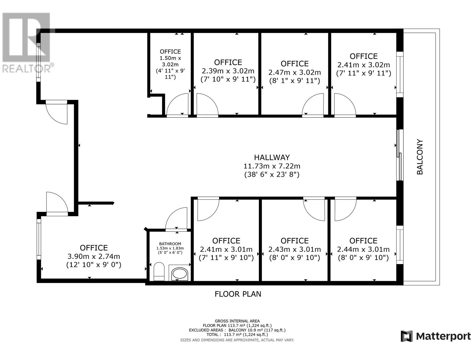 Rare second storey commercial space in the Pemberton Business Park. 1,327 sq.ft. that is currently demised into 6 office spaces, a kitchen area, a bathroom plus storage. This tastefully renovated space includes 2 parking stalls and also features a large balcony with eye catching Mount Currie views. Two separate entrances would make it easy to divide this space into 2 individual spaces of about 650 sq.ft each. (id:27476)