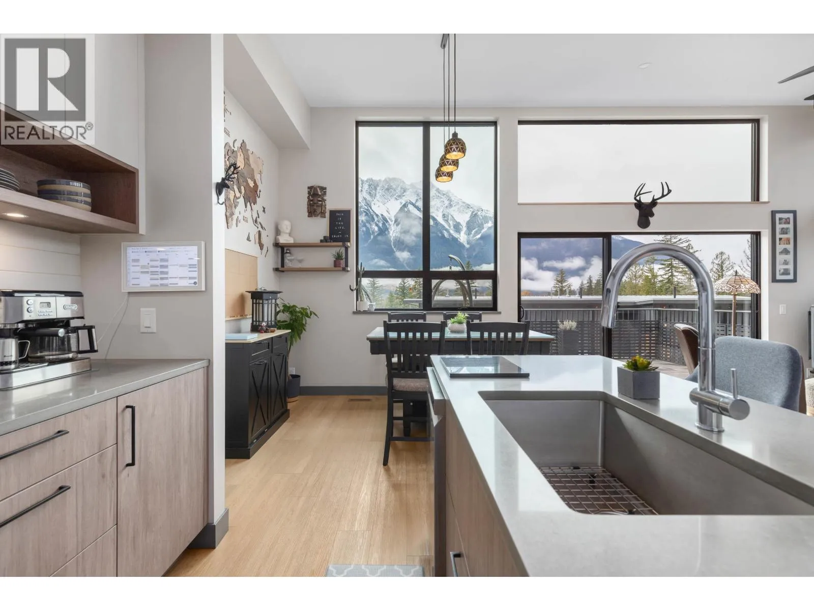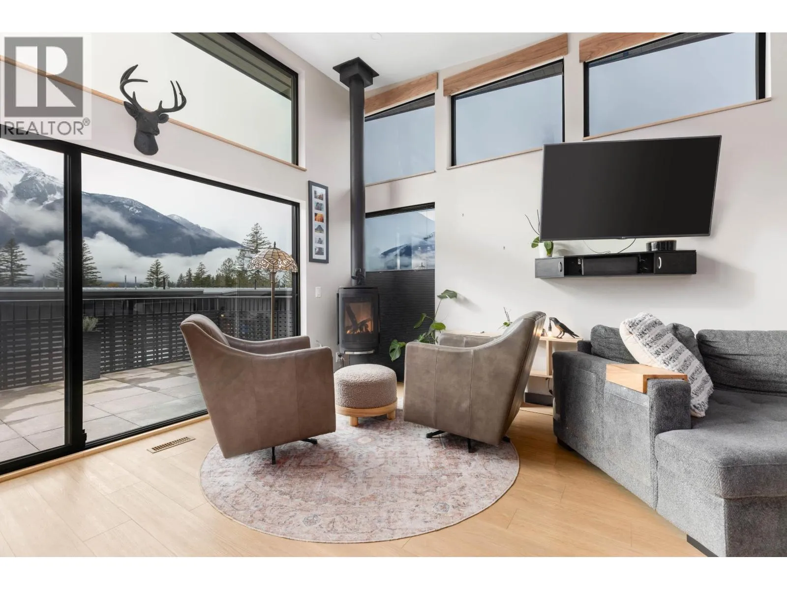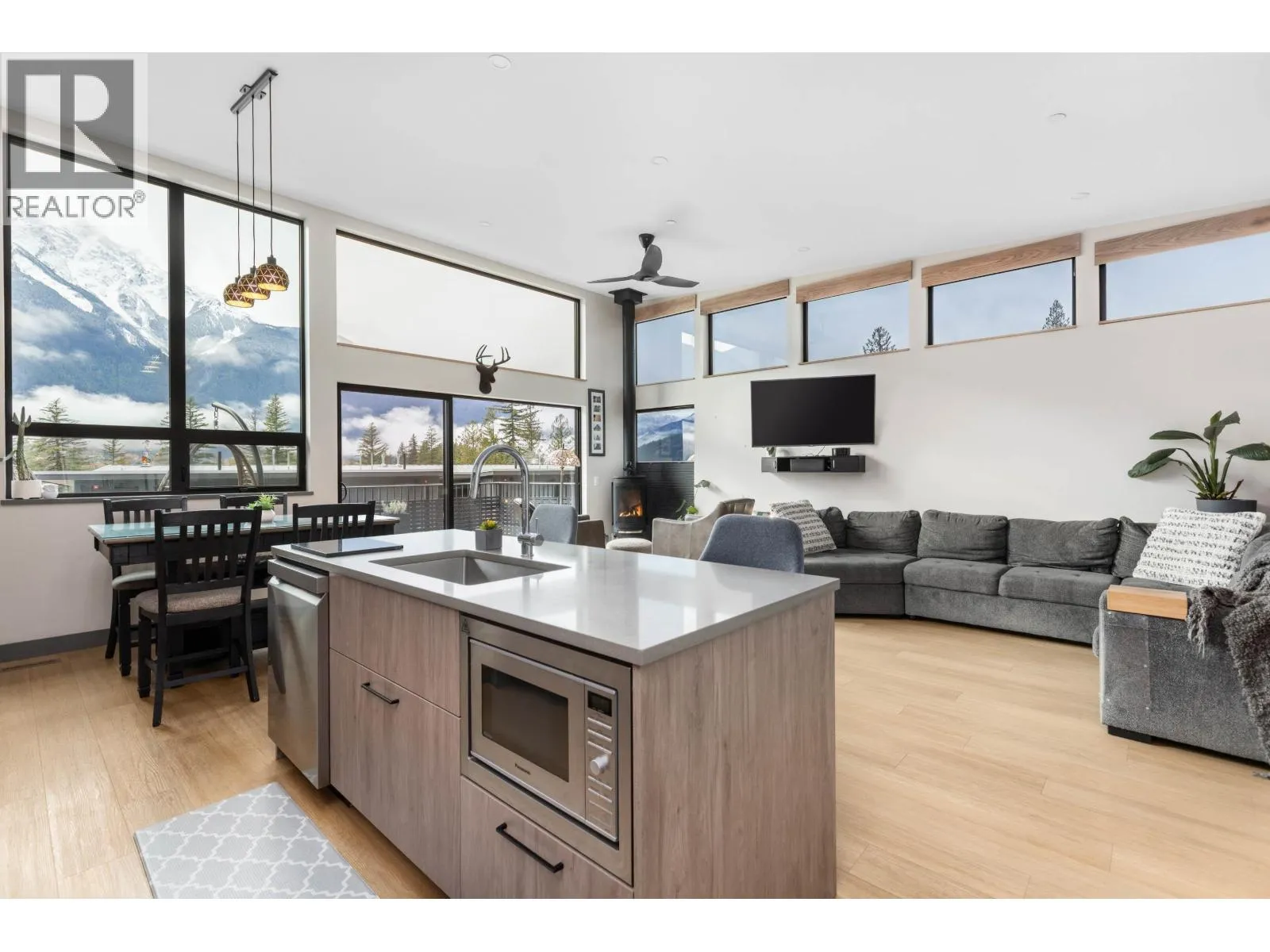 Welcome to Elevate. This spacious end-unit duplex sits in a superior location, offering privacy and unobstructed Mount Currie views. The open, bright main living area flows onto a generous view deck, while the lower level provides flexible space for work, play, or guests. The primary bedroom features a large walk-in closet with barn door and a luxe ensuite. Upgrades include glare reducing window film, solar and remote controlled shades, oak window sills, and a ceiling fan. The kitchen offers an induction oven and newer dishwasher, with a pantry and wine cellar added under the stairs. Additional features include a fenced back patio, EV charger, and upgraded wooden garage shelving. Designed for comfort, storage, and year round living. (id:27476)