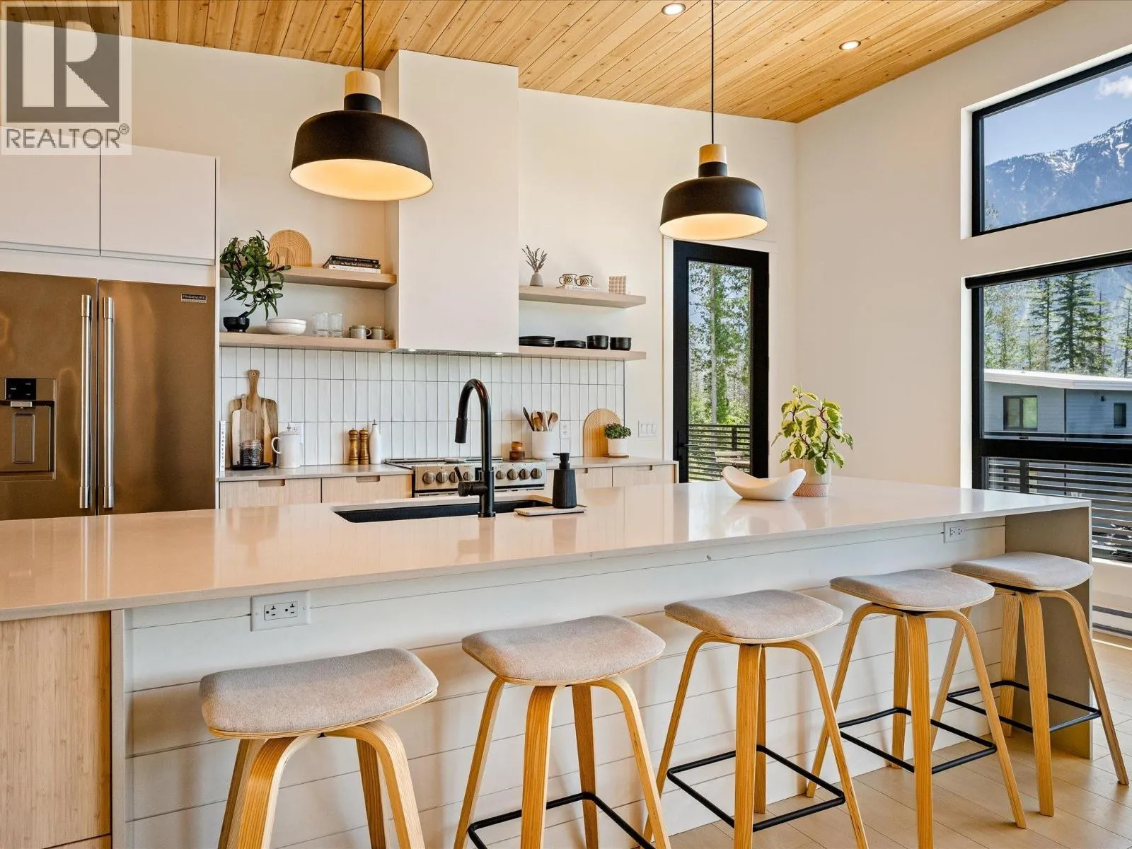 An exceptional custom-built Sunstone home with incredible mountain views and quality finishings throughout. Built to Step Code 4 with triple-glazed windows, HRV, and A/C in both the main home and suite. Enjoy 12´ ceilings, a 12´ kitchen island, quartz waterfall countertops, hemlock wood ceilings, wood stove, and spacious open-concept living. Features include a dedicated home office with private bath, large laundry room, generous storage, and oversized heated garage with sink. Outside offers a covered patio, EV charger rough-in, RV pad, and direct valley trail access-on a private cul-de-sac with no rear or side neighbours. (id:27476)