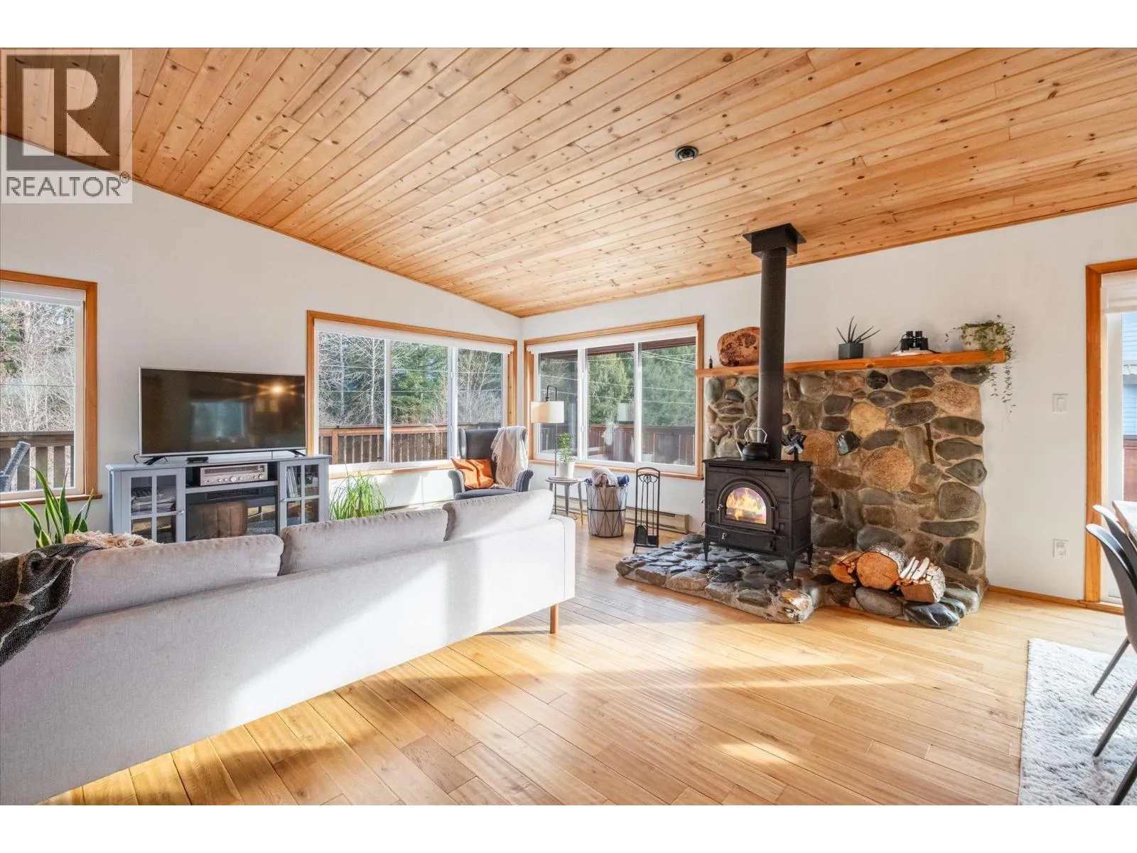 Sunshine, mountain views, and flexible living come together in this Pemberton home on a corner lot with mature trees and established landscaping. The open-concept living area is bright and welcoming, anchored by a cozy wood-burning stove, with some updates already completed. Three bedrooms on the main level flow onto a wrap-around deck for outdoor space and mountain views. The fully fenced backyard receives full sun, making it ideal for gardening, relaxing, and enjoying the hot tub. A double garage provides space for vehicles and gear, while a self-contained one-bedroom mortgage helper adds flexibility for rental income, guests, or extended family. With mountain views and a well-located corner lot, this property combines outdoor living, comfort, and versatility in Pemberdise. (id:27476)