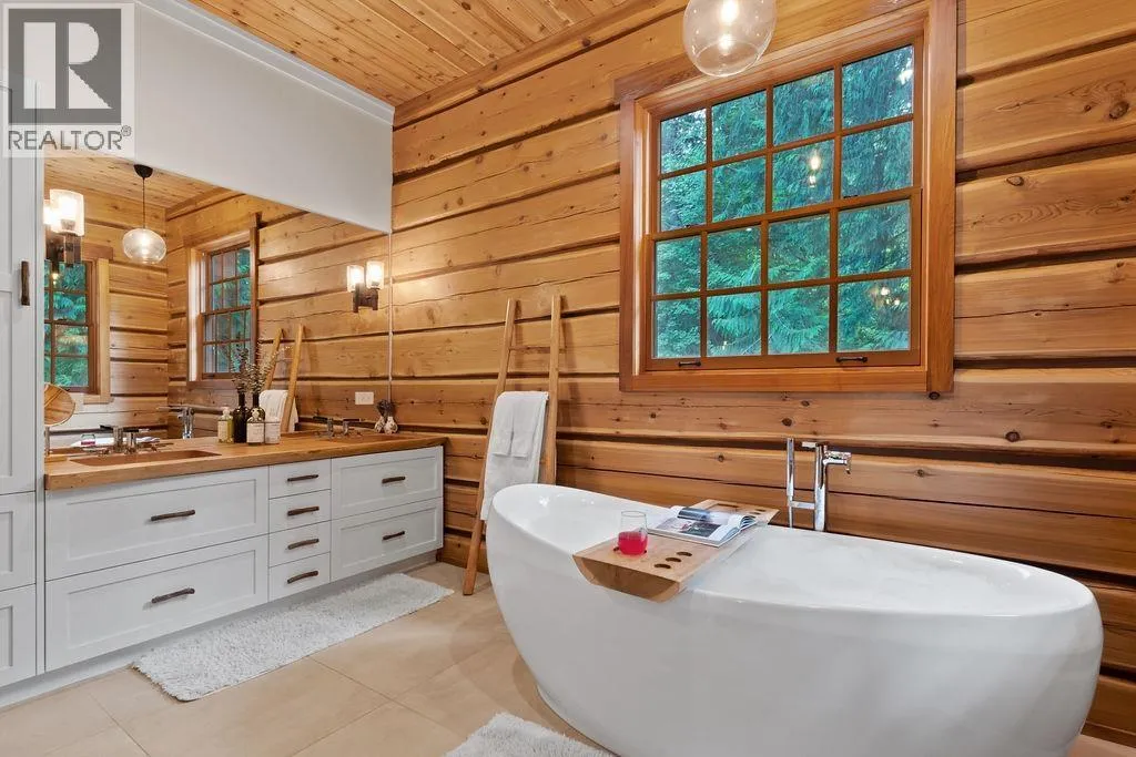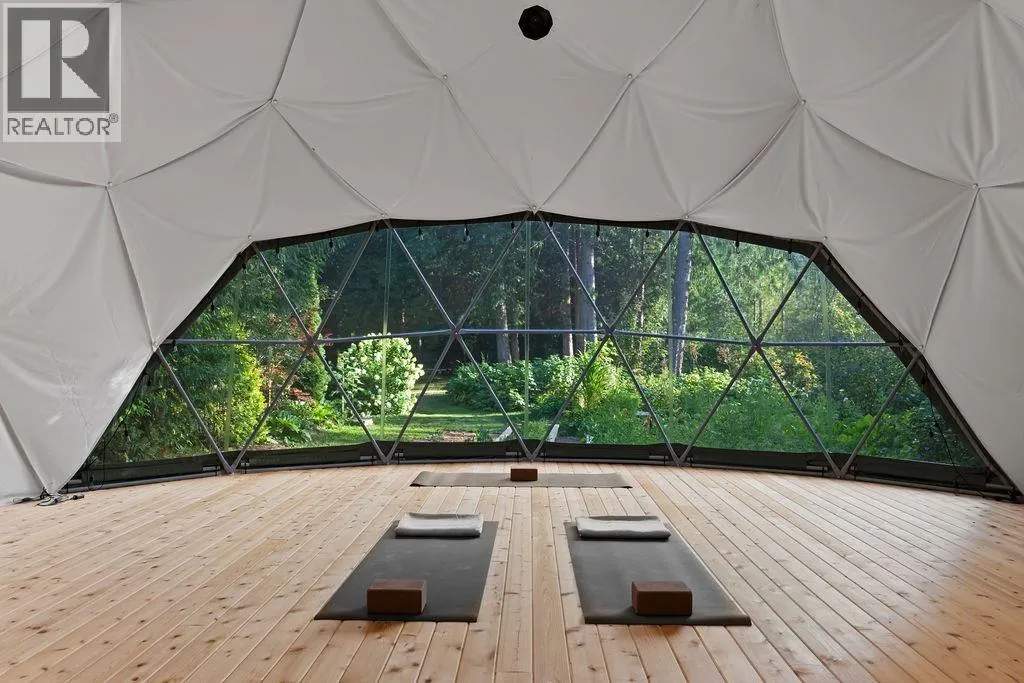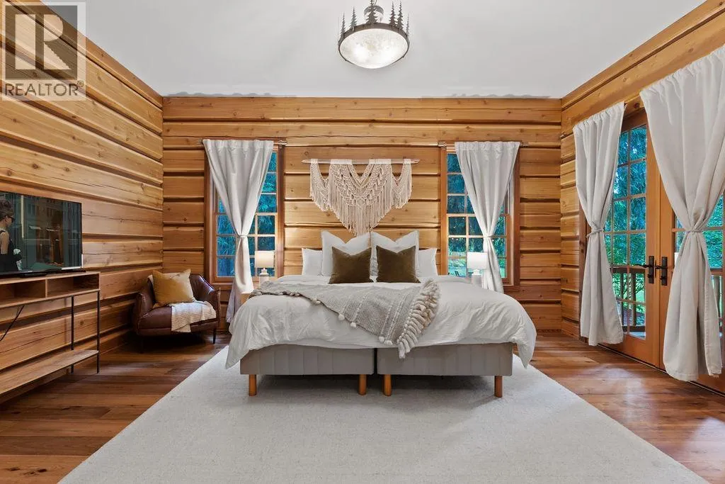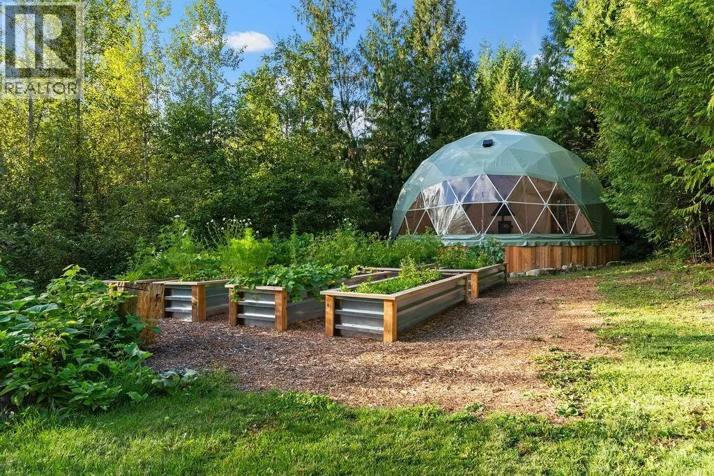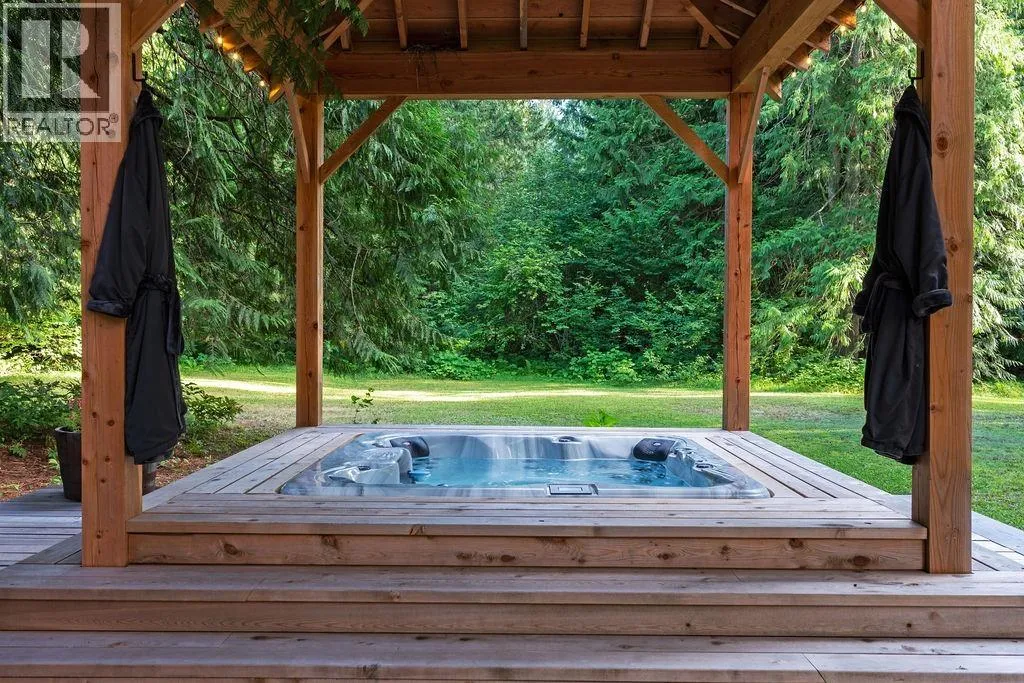 Step into this stunning custom-built chalet set on an impressive 3.29-acre property. Surrounded by towering cedar trees, this private 3,708 square ft residence offers both tranquility and space. Inside, you´ll appreciate the detailed custom woodwork, expansive windows that flood the home with natural light, and a chef-inspired kitchen featuring premium appliances, an HRV forced air system, and handcrafted wood countertops sourced directly from the land. Outside, the meticulously landscaped grounds are just as captivating, featuring a spacious deck, a cedar sauna, and a covered hot tub-perfect for relaxing or entertaining. The property also includes a fully updated barn with 2.5 bedrooms and a garage/workshop. Additional features such as garden beds, yoga dome and two storage sheds. (id:27476)