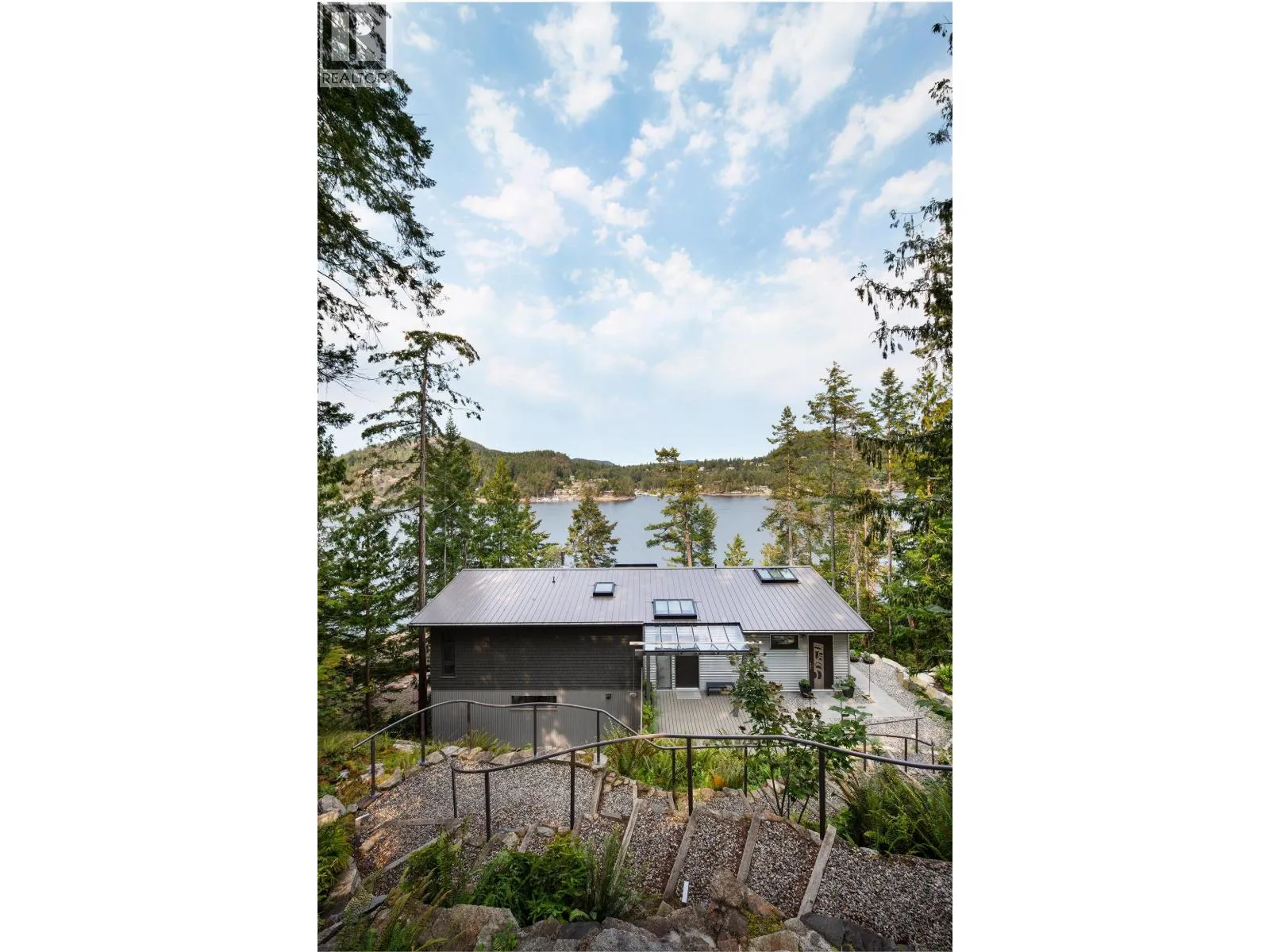 Sea Forest Home is a contemporary waterfront retreat set on a rare 1.22-acre hooked lot overlooking Pender Harbour. This 3,000+ square ft custom home by Canadian artist-designer Sabina Hill features vaulted ceilings, skylights, floor-to-ceiling windows and exceptional views. The open-concept main level flows to expansive decks for seamless indoor-outdoor living. A studio/bedroom adds versatility. The primary bedroom offers ocean and forest outlooks and a spa-inspired ensuite. Lower level has a self-contained two-bedroom suite with private entry, decks and hot tub. Swimmable beach access with dock potential. Zoned for an additional residence, auxiliary buildings and possible subdivision. Four-plus parking, EV-ready service. A legacy property combining privacy, lifestyle and long-term value. (id:27476)