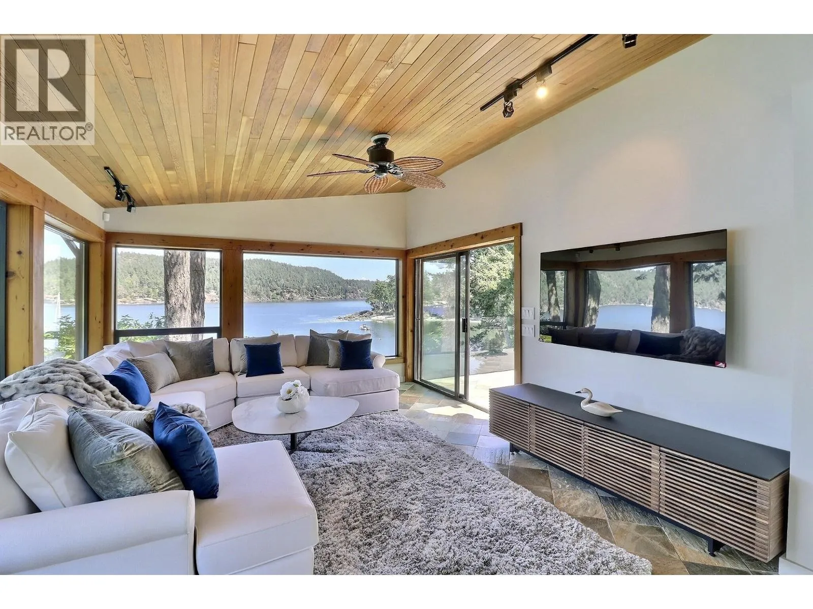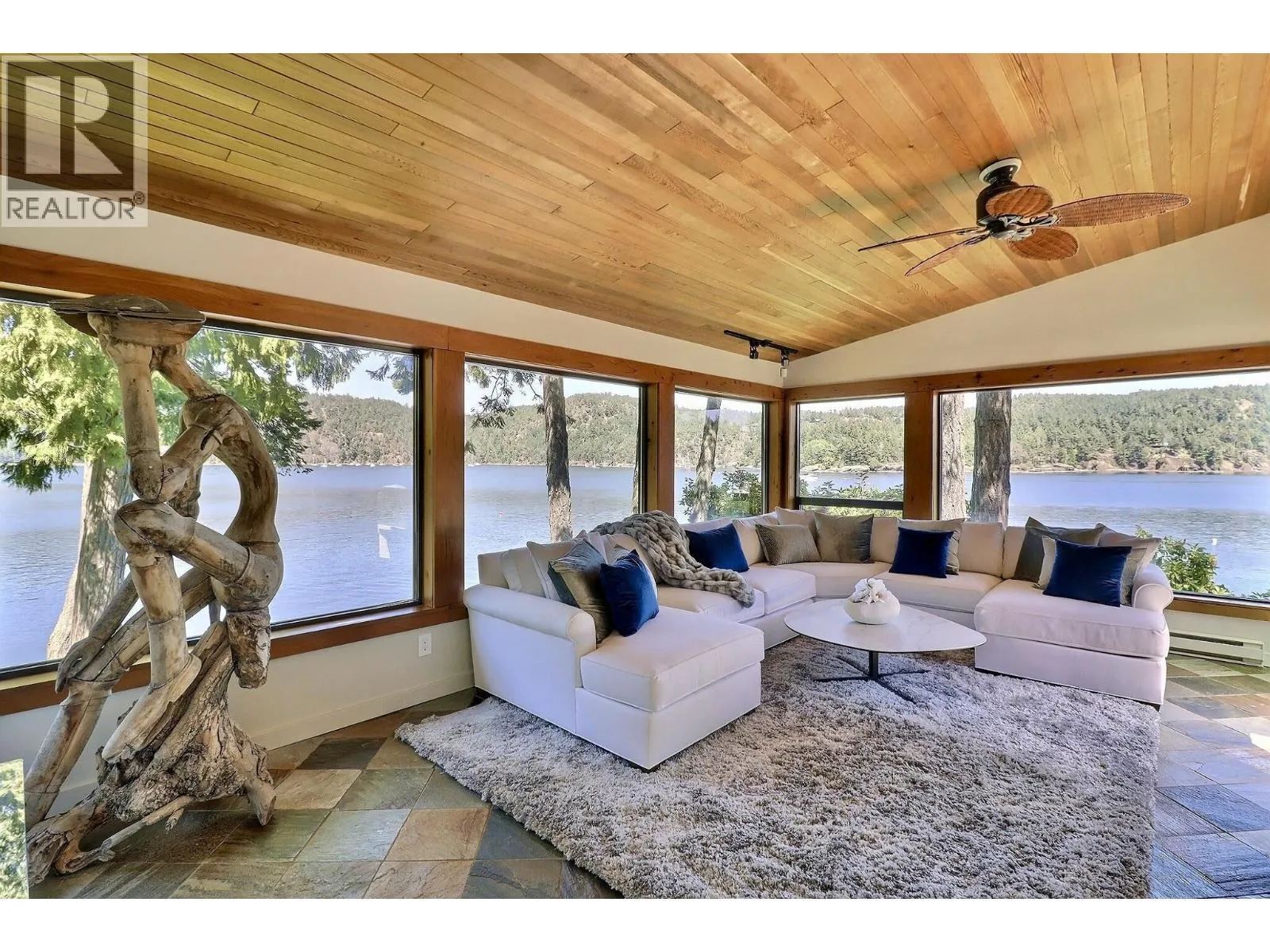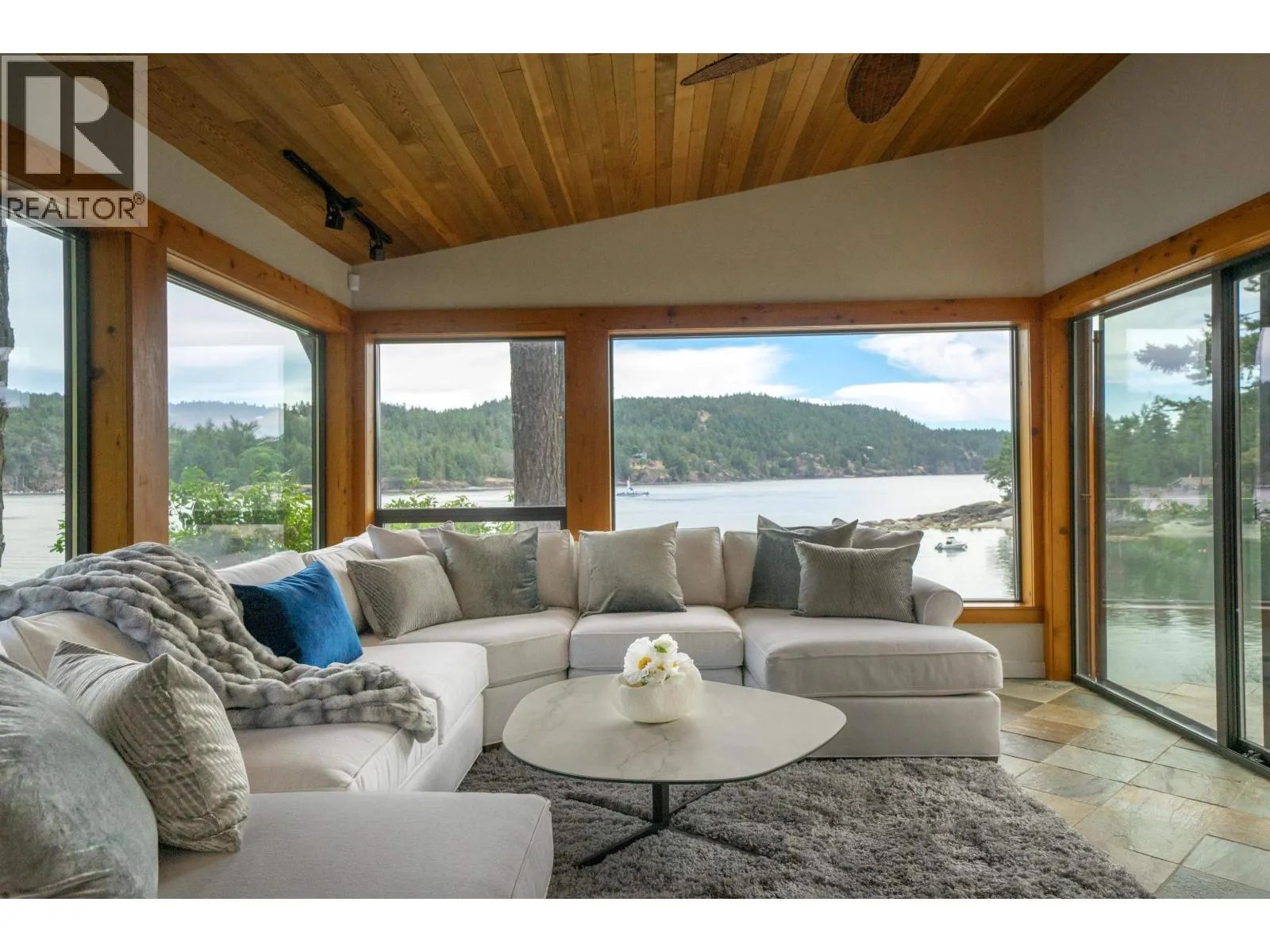 A rare oceanfront retreat with a sought-after deep-water dock-37' x 12' concrete dock and 70' aluminum ramp. Take your boat, dinghy, kayak over to a world-class resort, spa and its restaurants. Accessible by float plane from Vancouver and Victoria with charter flights that will land right at your dock. Extensively renovated, incl. chef´s kitchen and spa bathrooms with radiant floor heating; the 3-bed, 3-bath home blends luxury with relaxed island living A self-contained guest suite with a separate entrance offers privacy for visitors with their own large deck and hot tub. Enjoy breathtaking ocean views that stretch over Bedwell Harbour and Beaumont Marine Park. Level, beautifully landscaped lot has new steps to a tranquil beach. Ample parking for guests boats and RV. Boater's paradise! (id:27476)