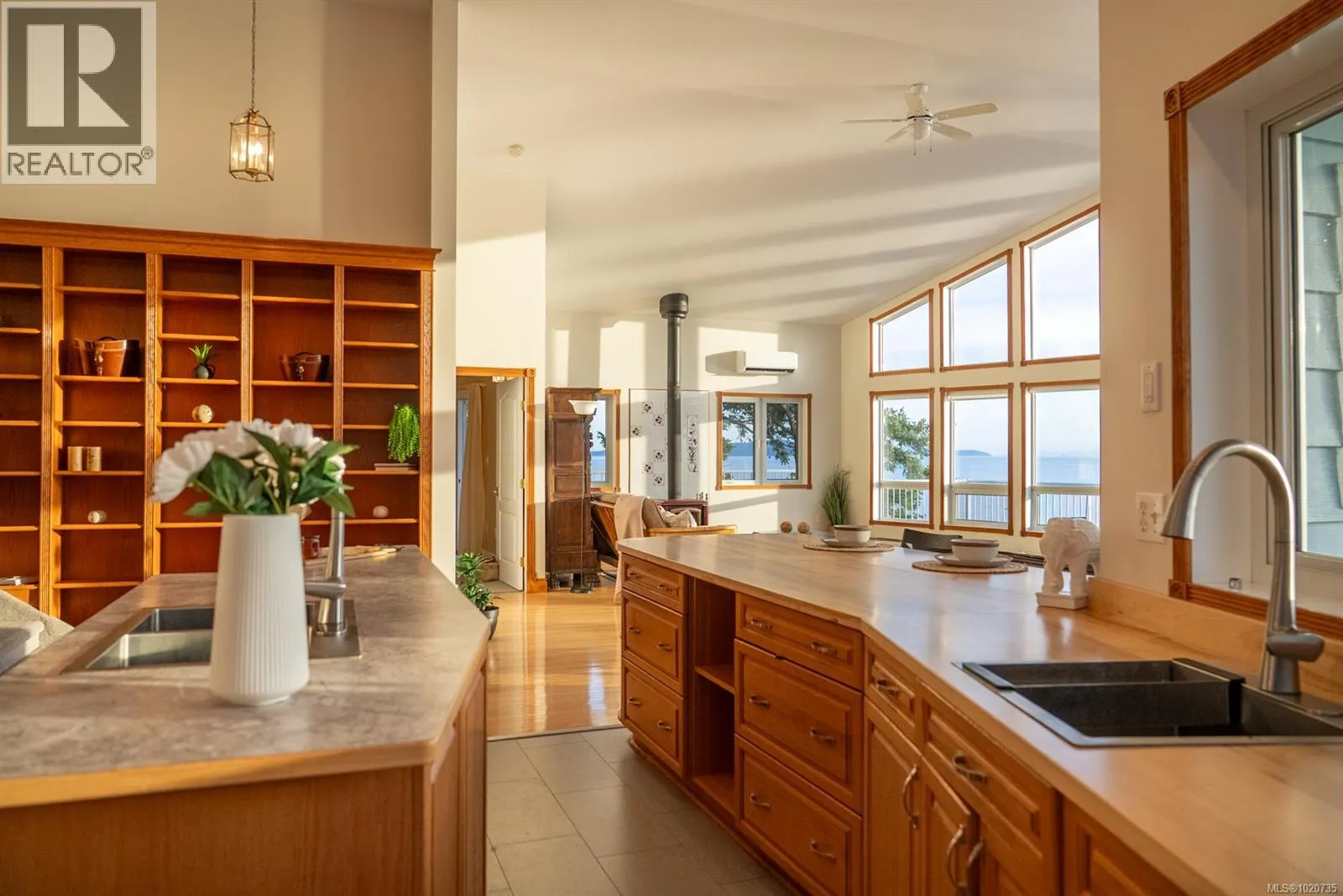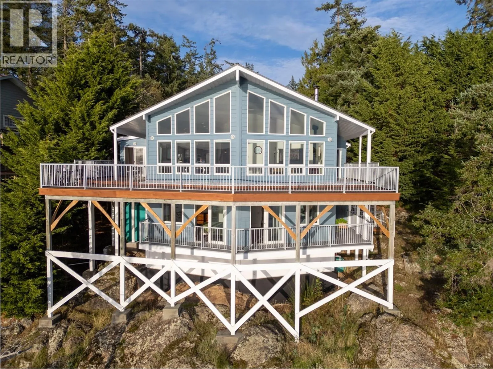 Prepare to be amazed the moment you walk through the door. This spacious 3-bed, 5-bath oceanfront home captures breathtaking east, south, and west-facing panoramic ocean views. Vast walls of windows and vaulted ceilings flood the interior with natural light and frame the ever-changing seascapeâwhales, eagles, passing boats and spectacular sunsets. Designed for main-level living, the upper floor offers an open-plan layout with a dramatic great room, a dining area and chefâs kitchen. The primary bedroom features an ensuite, walk-in closet and a walkout to the expansive deck. Thoughtful versatility on this level also includes space for a home business or office. The oceanfront deck spans the front of the home, creating a spectacular outdoor living area. The lower level provides flexibility for family, guests or B&B potential with two generous bedrooms, each with walkouts to a second oceanfront deck, a full bathroom, a second kitchen with access to the greenhouse/sunroom, deck and additional space ideal for a den, office, or extra bedroom. High ceilings and large windows keep the lower floor bright and inviting. Recent upgrades include new decking, heat pumps, new skylights, flooring, and much more. Additional features include a double garage, fenced garden with fruit trees, garden shed and rainwater catchment for irrigation. On Magic Lake water & sewer. Magic Lake homeowners enjoy access to Thieves Bay Marina with low moorage rates, as well as tennis courts. (id:27476)