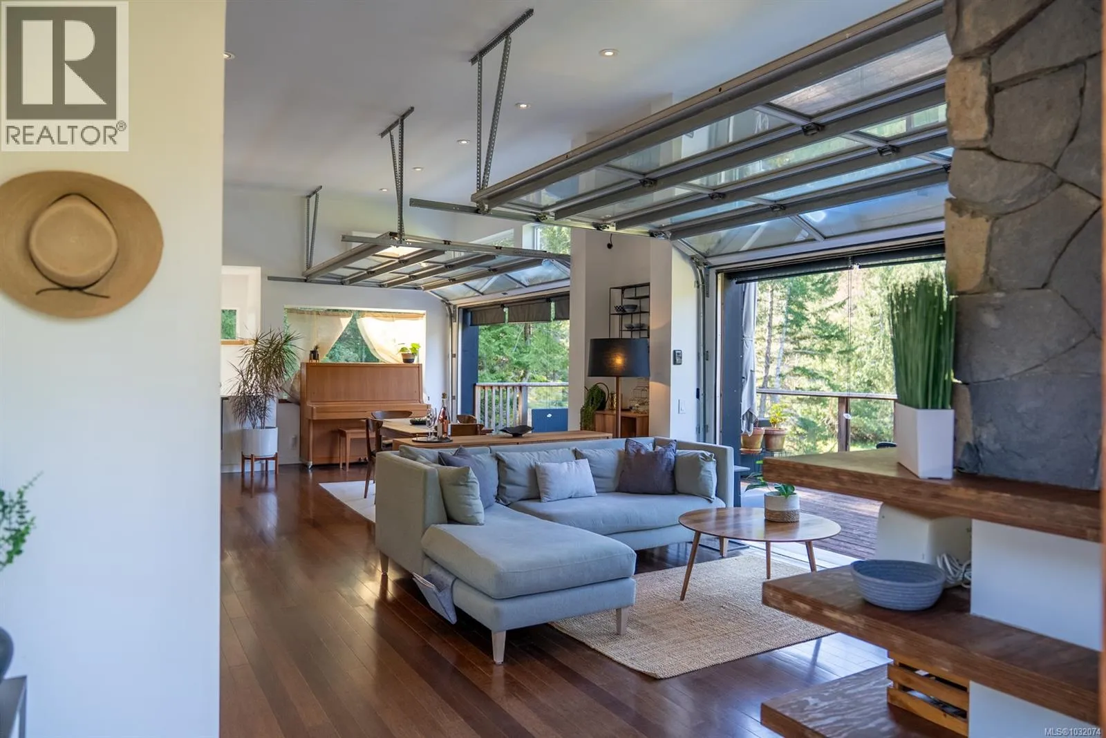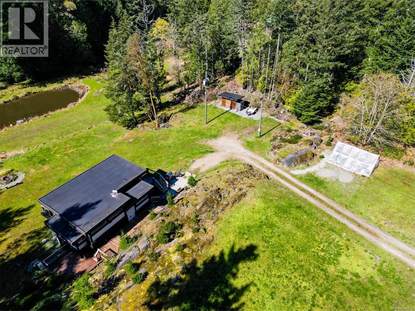 Private, peaceful, and surrounded by nature. Tucked away in complete privacy, this exceptional 5+ acre property feels like its own world. A scenic drive through the forest opens to gently rolling land with sunny south and west exposure, a mature fig orchard, private pond, and open space to roam. The minimalist West Coast-style home is designed for simplicity, functionality, a strong connection to nature and seamless indoor-outdoor living, with large glass doors opening to expansive decking. Inside offers a warm, modern feel with a renovated kitchen, in-floor heating throughout and thoughtful updates including a new heat pump (2024), hot water tank (2022), and hydronic system improvements. Custom siding, new soffits, fresh exterior paint (2025) and all new exterior lighting enhance the home, along with interior features such as a custom structural wall, door and window in primary bedroom and handcrafted stairs and railings. The land offers versatility for gardens, animals, or simply enjoying the privacy and space. A custom-built shed adds storage, and services are in place at the upper portion of the property for your RV or future potential. Located in the desirable Hope Bay area, this is a rare offering that combines lifestyle, privacy, and possibility. (id:27476)