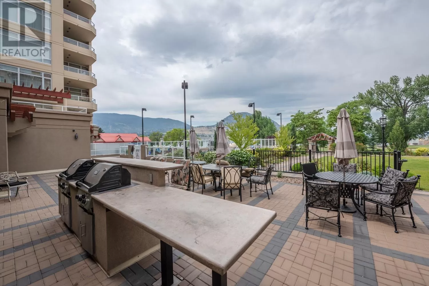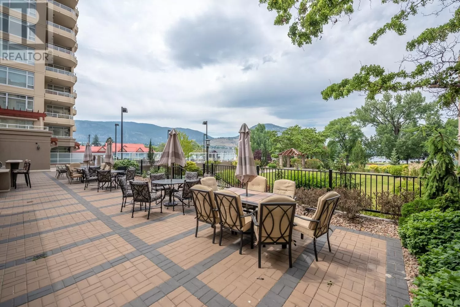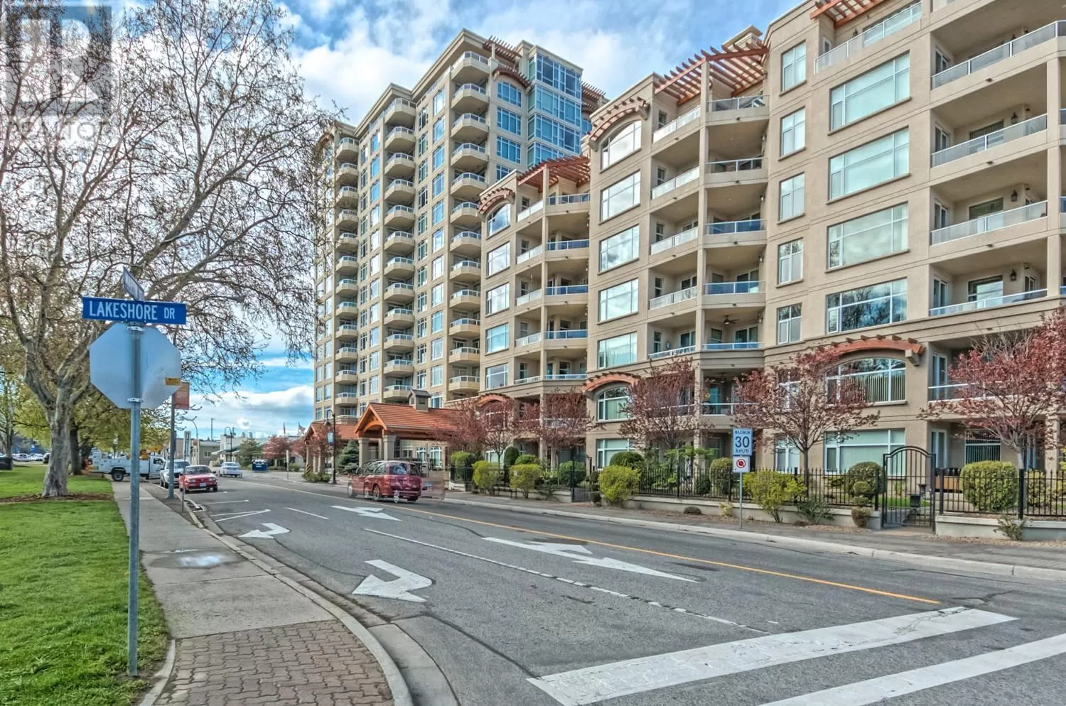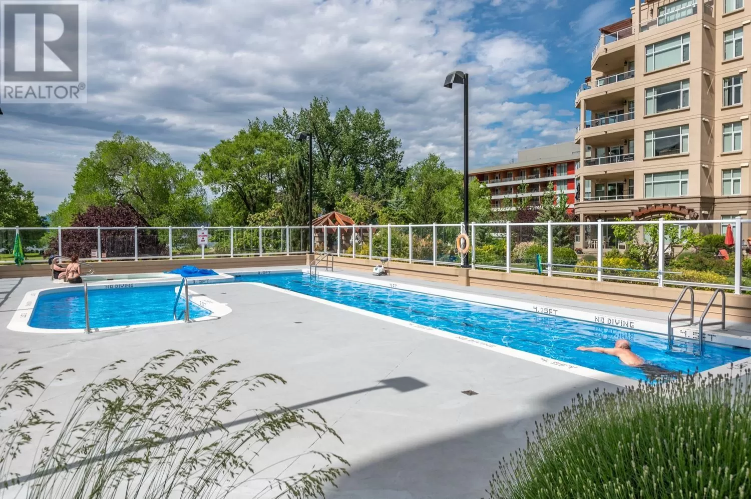 Condo at Lakeshore Towers, south facing 1 bedroom + 1 den. 1 full bath, 868 sq ft suite sits directly across from one of the most beautiful beaches & lakes in the Okanagan. Lakeshore towers is the only condo complex in Penticton that offers an outdoor pool, hot tub and sauna, 2 fitness rooms, 3 amenity rooms, putting green, secure bike storage, guest suites and exceptional outdoor common area. This beautiful condo is in the heart of the city, steps from the lake and a short stroll to the marina, shopping, incredible restaurants, wineries and breweries. Enjoy the city views from the nice south facing deck. This is a quiet suite due to the building's concrete construction. It also features granite countertops, high end tile and quality appliances. There is 1 secure parking stall and 1 storage locker, 2 pets allowed. (id:27476)