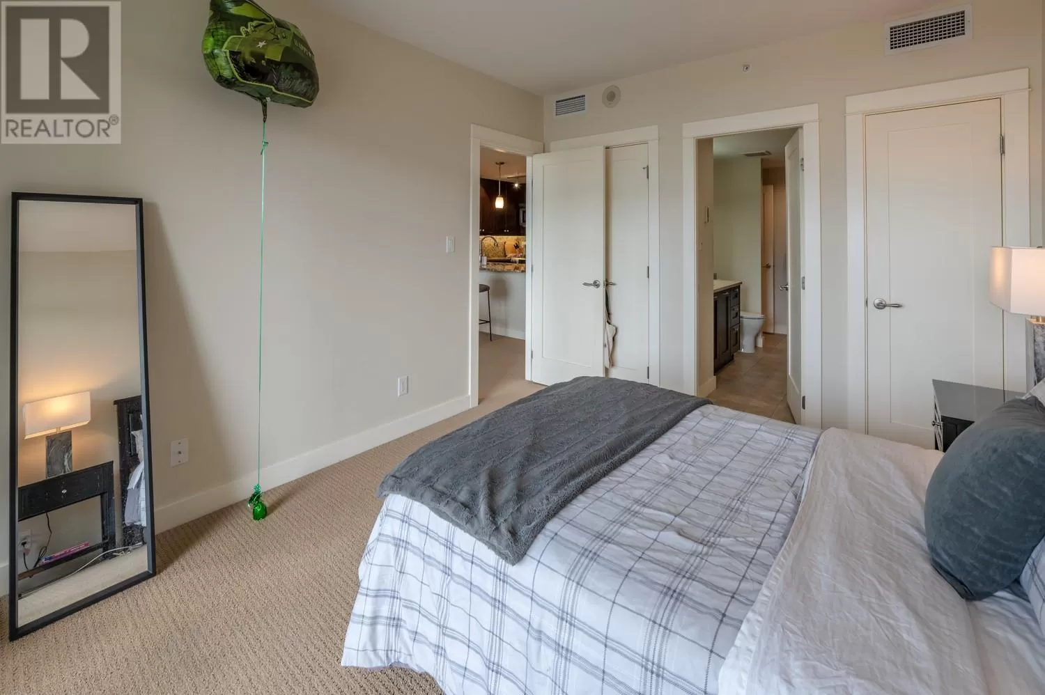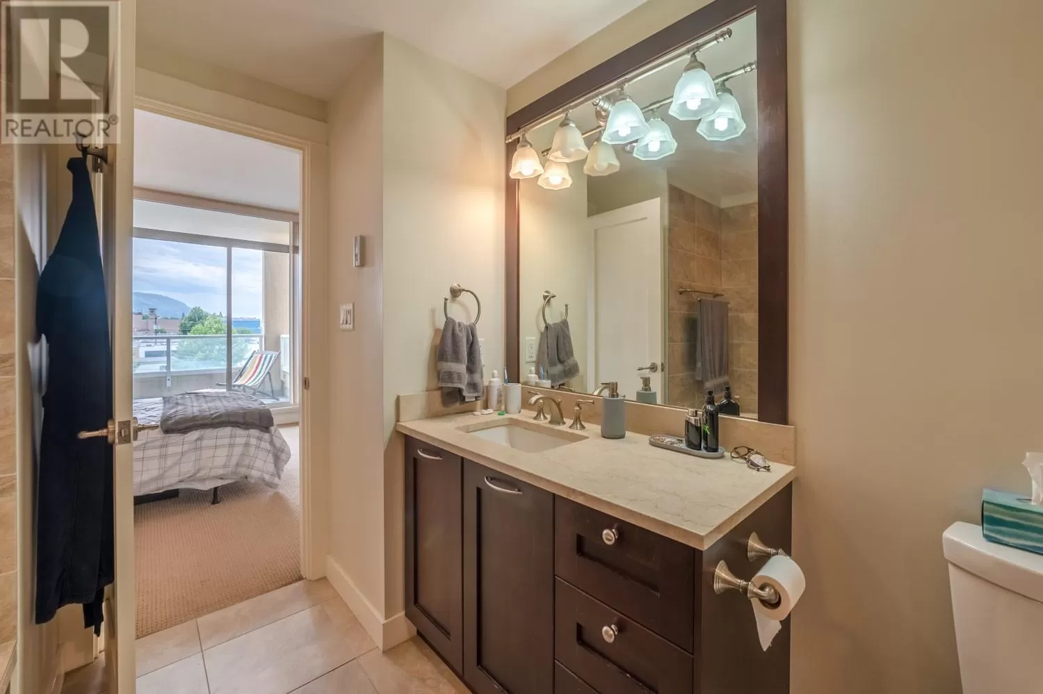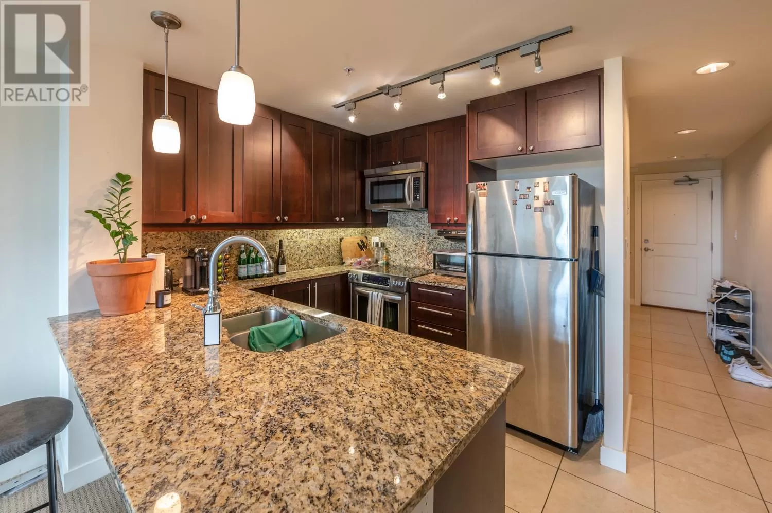 Condo at Lakeshore Towers, south facing 1 bedroom + 1 den. 1 full bath, 868 sq ft suite sits directly across from one of the most beautiful beaches & lakes in the Okanagan. Lakeshore towers is the only condo complex in Penticton that offers an outdoor pool, hot tub and sauna, 2 fitness rooms, 3 amenity rooms, putting green, secure bike storage, guest suites and exceptional outdoor common area. This beautiful condo is in the heart of the city, steps from the lake and a short stroll to the marina, shopping, incredible restaurants, wineries and breweries. Enjoy the city views from the nice south facing deck. This is a quiet suite due to the building's concrete construction. It also features granite countertops, high end tile and quality appliances. There is 1 secure parking stall and 1 storage locker, 2 pets allowed. (id:27476)