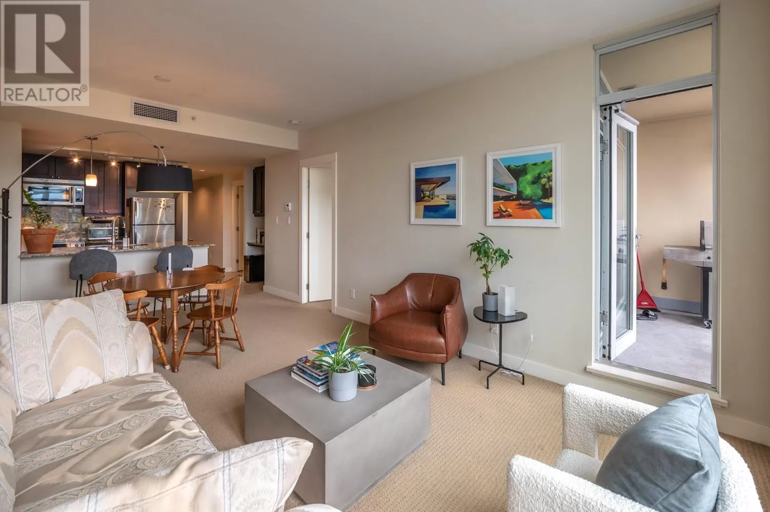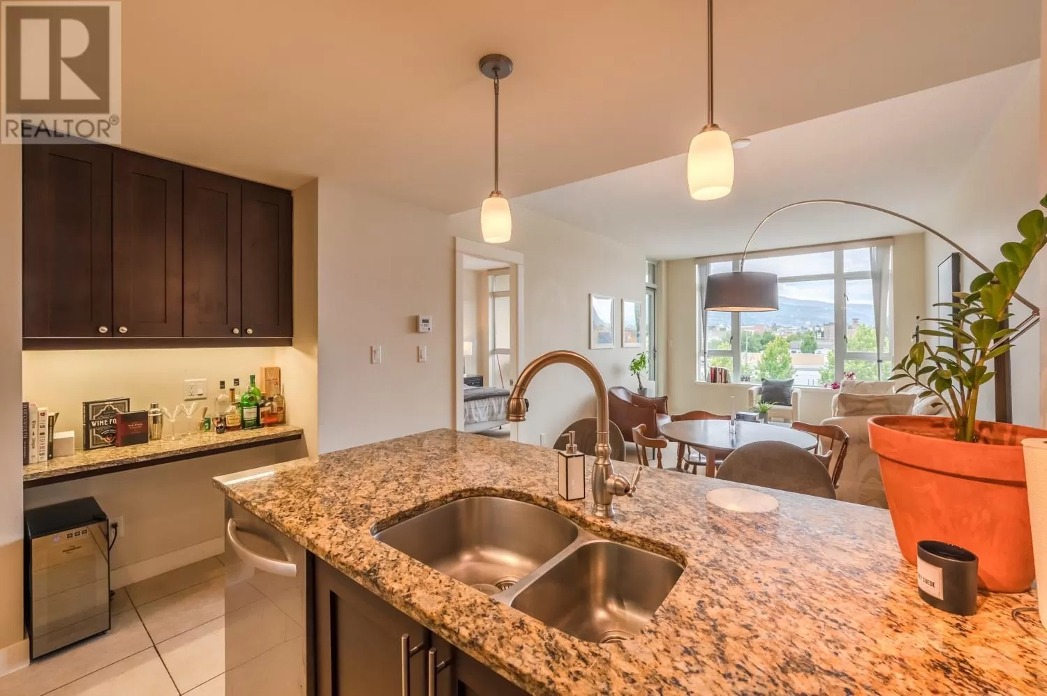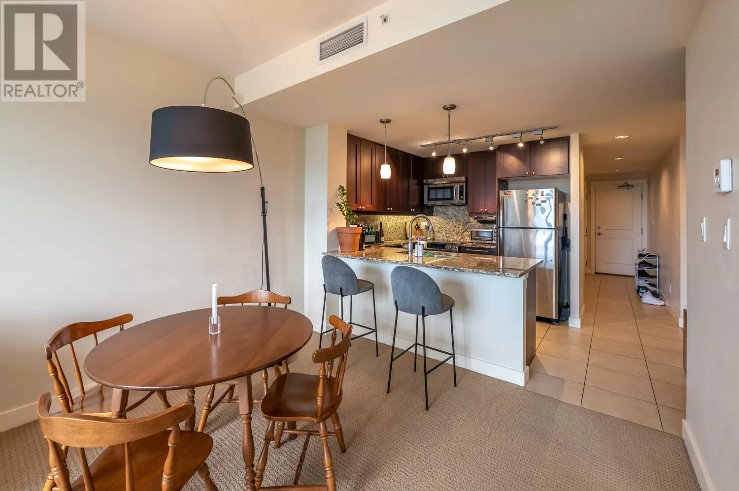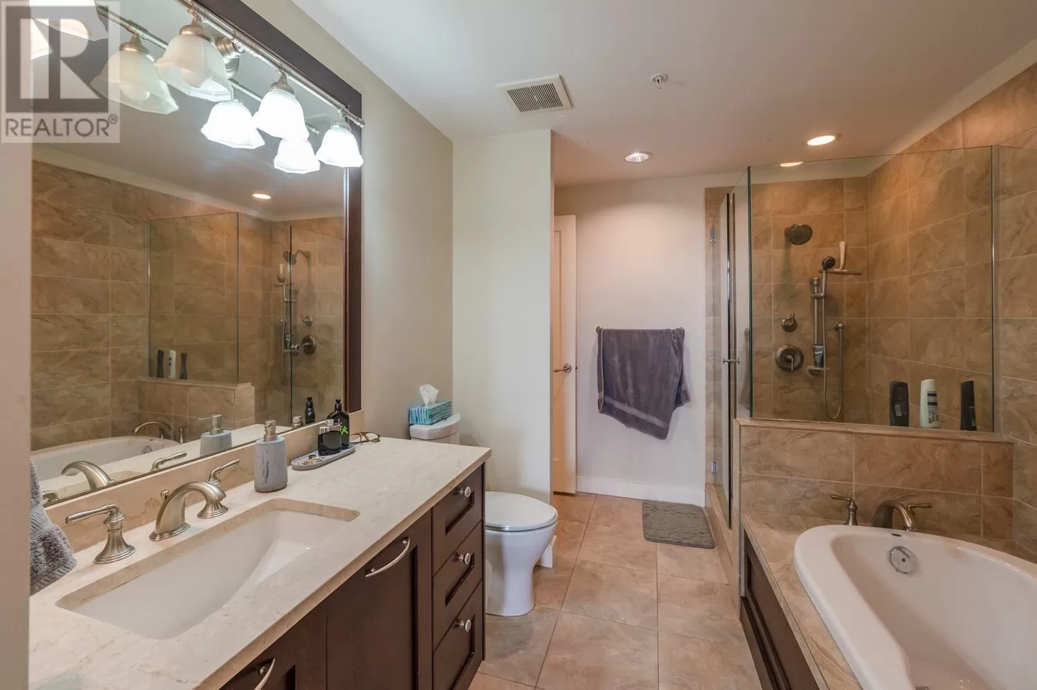 Condo at Lakeshore Towers, south facing 1 bedroom + 1 den. 1 full bath, 868 sq ft suite sits directly across from one of the most beautiful beaches & lakes in the Okanagan. Lakeshore towers is the only condo complex in Penticton that offers an outdoor pool, hot tub and sauna, 2 fitness rooms, 3 amenity rooms, putting green, secure bike storage, guest suites and exceptional outdoor common area. This beautiful condo is in the heart of the city, steps from the lake and a short stroll to the marina, shopping, incredible restaurants, wineries and breweries. Enjoy the city views from the nice south facing deck. This is a quiet suite due to the building's concrete construction. It also features granite countertops, high end tile and quality appliances. There is 1 secure parking stall and 1 storage locker, 2 pets allowed. (id:27476)