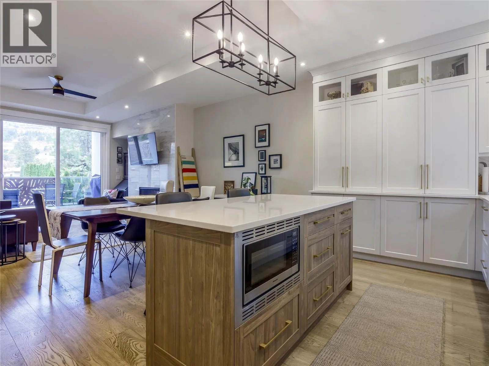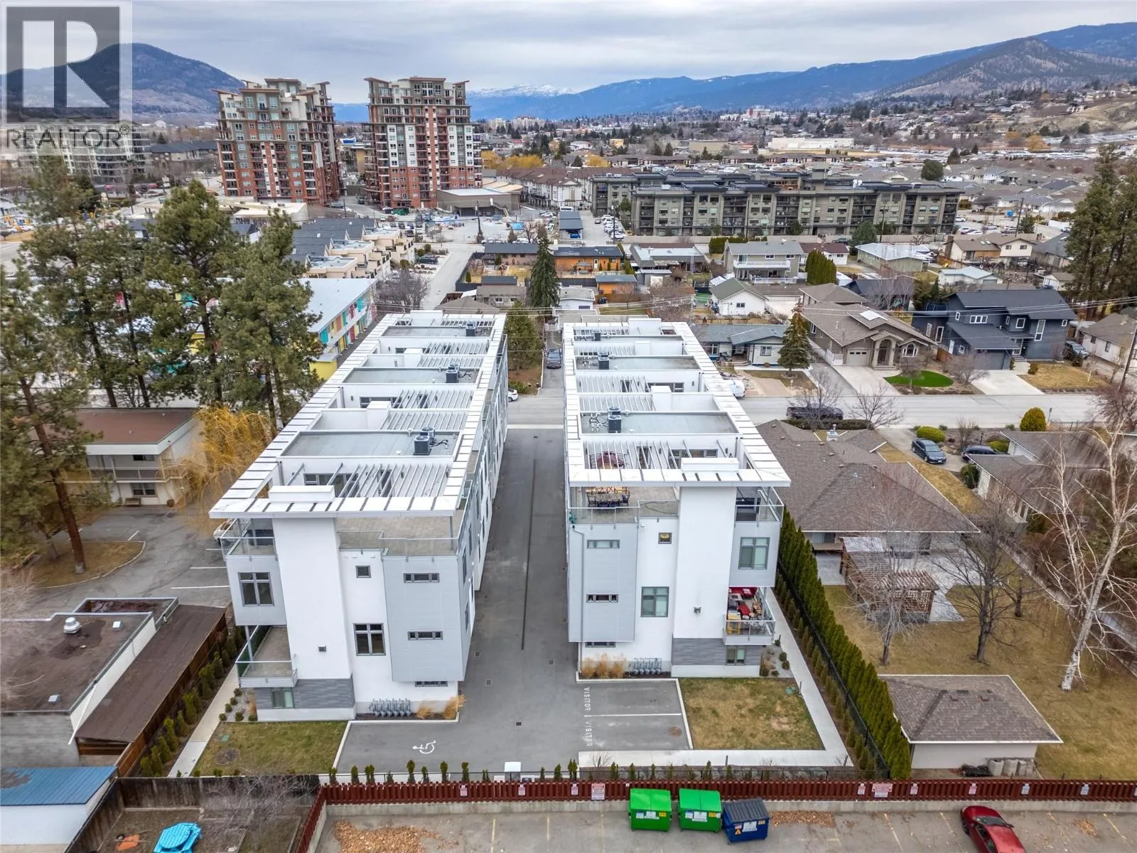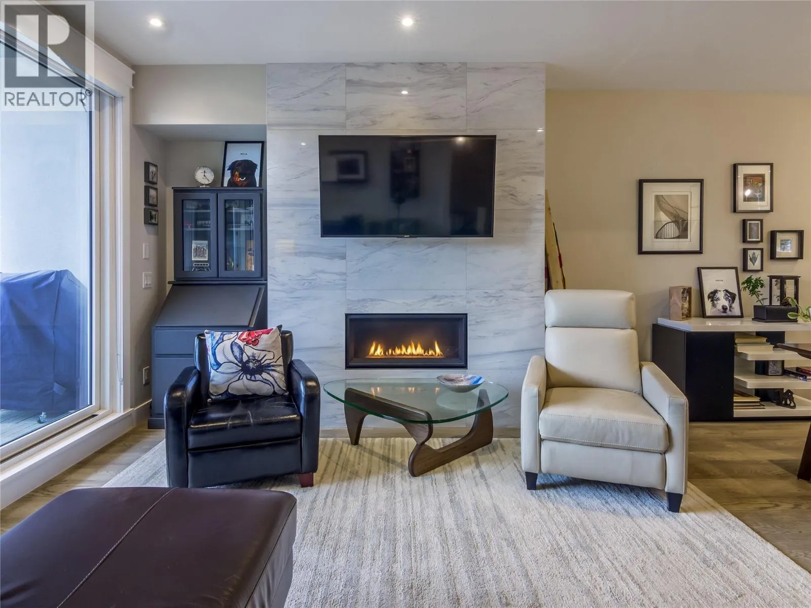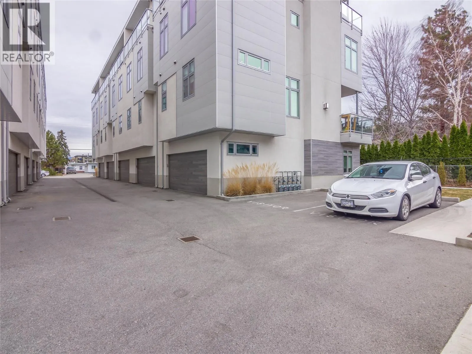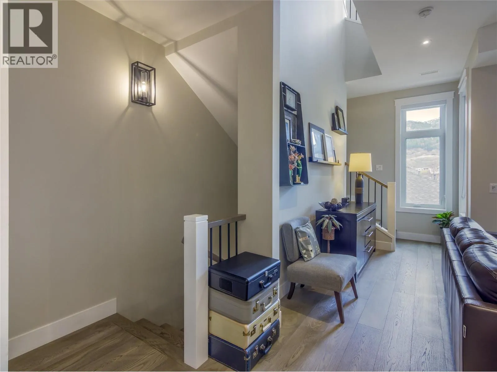 Welcome to 222 Lee, a luxury townhouse just a block to Skaha Lake beach and parks! This stunning unit was built in 2019 and features 1906.3 sqft throughout with four bedrooms, four bathrooms, rooftop patio, and a double car garage! The ground floor of the home has a guest bedroom/den and a three-piece bathroom, a nice sized foyer & the attached double car garage perfect for your cars and beach toys. Up one floor is the spacious open plan great room, featuring beautiful hardwood floors, a sleek modern fireplace, East facing deck for a BBQ, guest bathroom, large dining area & a show stopper kitchen. With classic white cabinets, quartz counters, herringbone pattern backsplash, gas stove & beautiful wood accent island, a chefs dream. Stairs to the next floor feature hardwood flooring into the hallway, laundry, 2 guest/kids bedrooms & a full guest bathroom, + the primary bedroom with walk-in closet full of custom organizers and its stunning ensuite with quartz counters, huge shower, & floating vanity. This unit is topped off with a massive rooftop patio that is dressed to impress with a gas fireplace, hot tub, composite decking, sun shade, & room to entertain all your friends and family. Enjoy this ultimate location just a stroll to Skaha Lake, the walkways & beach, outdoor amenities like tennis and volleyball, the Dragon Boat Pub, and other stops like Kojo sushi or SpinCo just a walk away! This unit is excellent value for the high end quality and the design is sure to impress! (id:27476)