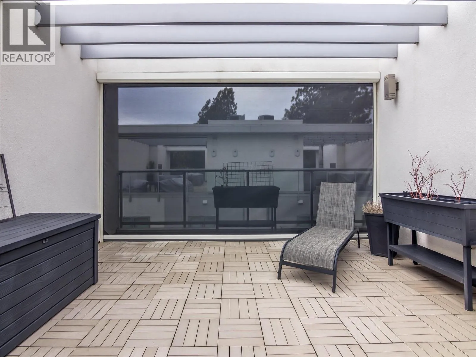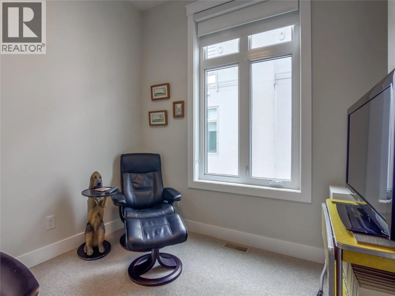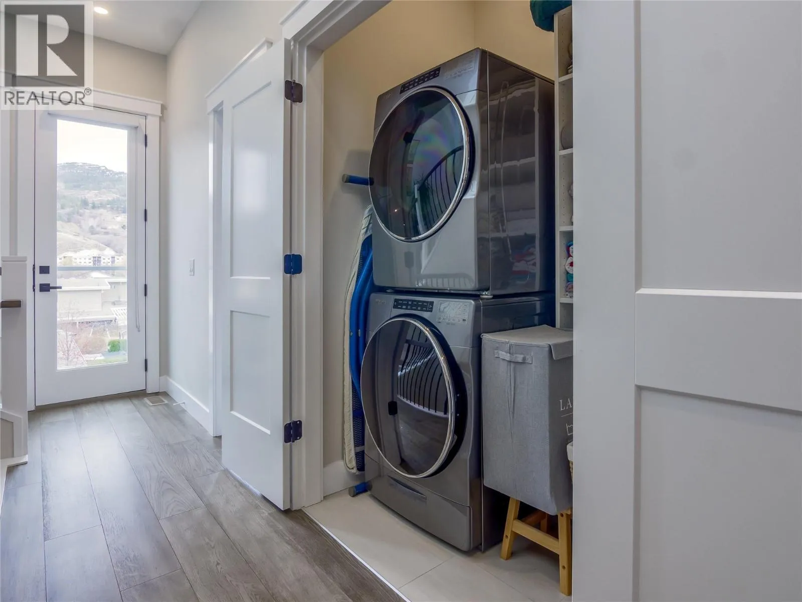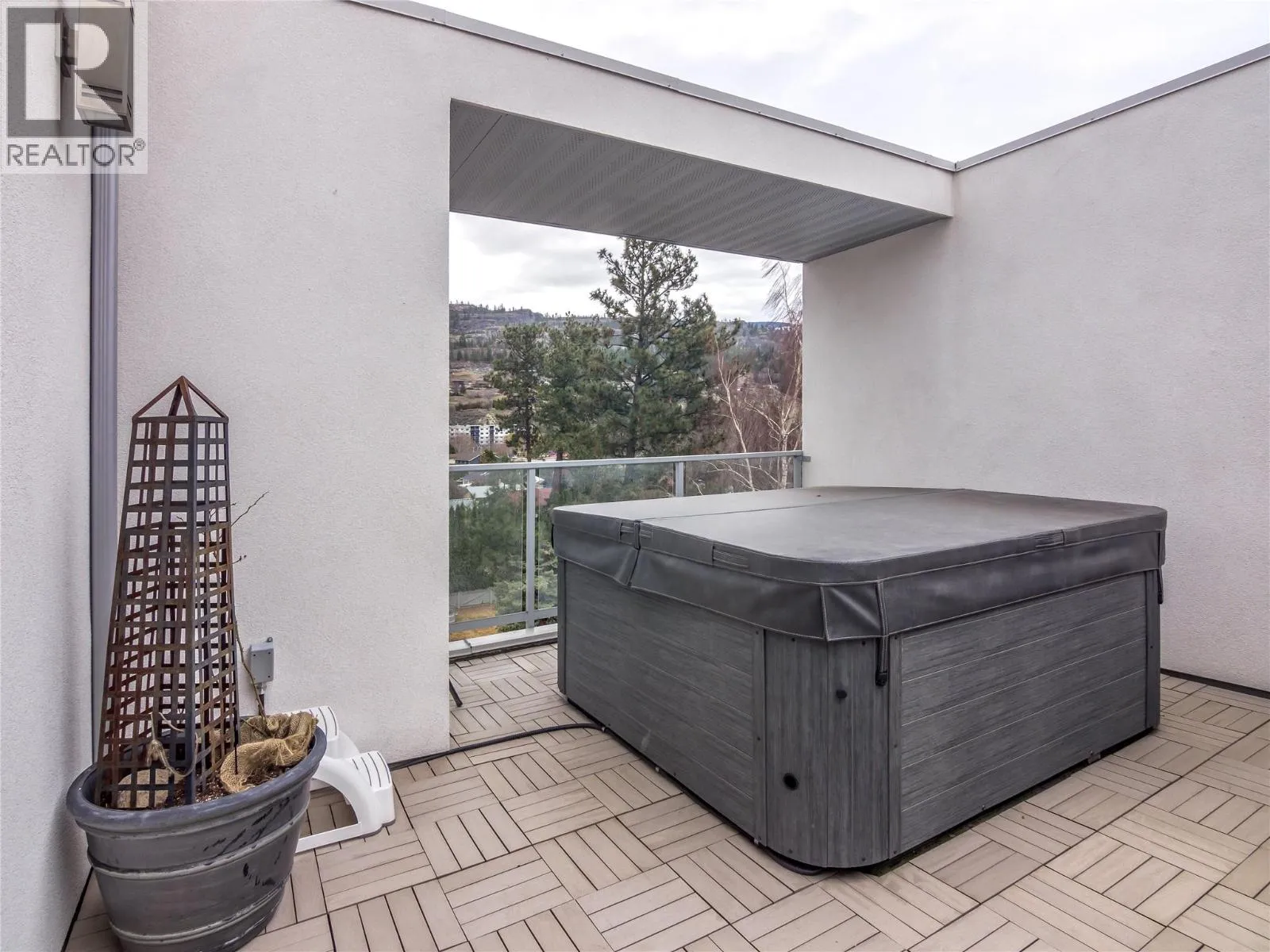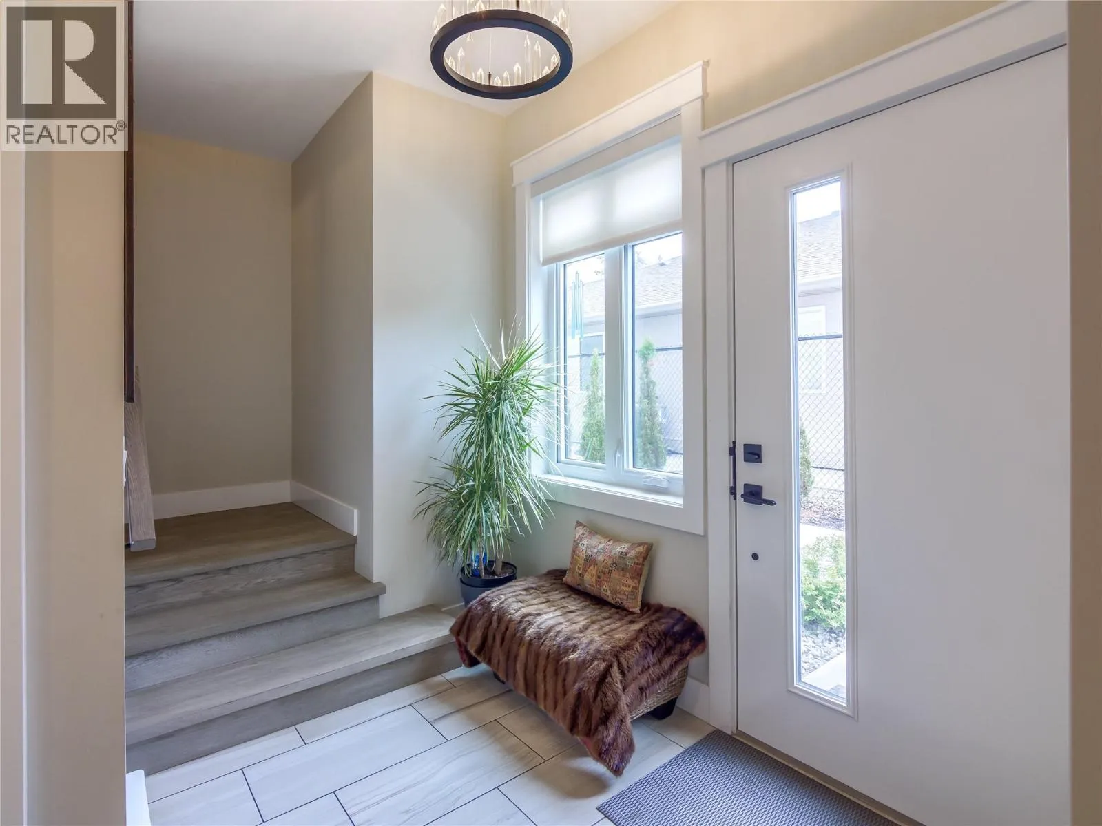 Welcome to 222 Lee, a luxury townhouse just a block to Skaha Lake beach and parks! This stunning unit was built in 2019 and features 1906.3 sqft throughout with four bedrooms, four bathrooms, rooftop patio, and a double car garage! The ground floor of the home has a guest bedroom/den and a three-piece bathroom, a nice sized foyer & the attached double car garage perfect for your cars and beach toys. Up one floor is the spacious open plan great room, featuring beautiful hardwood floors, a sleek modern fireplace, East facing deck for a BBQ, guest bathroom, large dining area & a show stopper kitchen. With classic white cabinets, quartz counters, herringbone pattern backsplash, gas stove & beautiful wood accent island, a chefs dream. Stairs to the next floor feature hardwood flooring into the hallway, laundry, 2 guest/kids bedrooms & a full guest bathroom, + the primary bedroom with walk-in closet full of custom organizers and its stunning ensuite with quartz counters, huge shower, & floating vanity. This unit is topped off with a massive rooftop patio that is dressed to impress with a gas fireplace, hot tub, composite decking, sun shade, & room to entertain all your friends and family. Enjoy this ultimate location just a stroll to Skaha Lake, the walkways & beach, outdoor amenities like tennis and volleyball, the Dragon Boat Pub, and other stops like Kojo sushi or SpinCo just a walk away! This unit is excellent value for the high end quality and the design is sure to impress! (id:27476)
