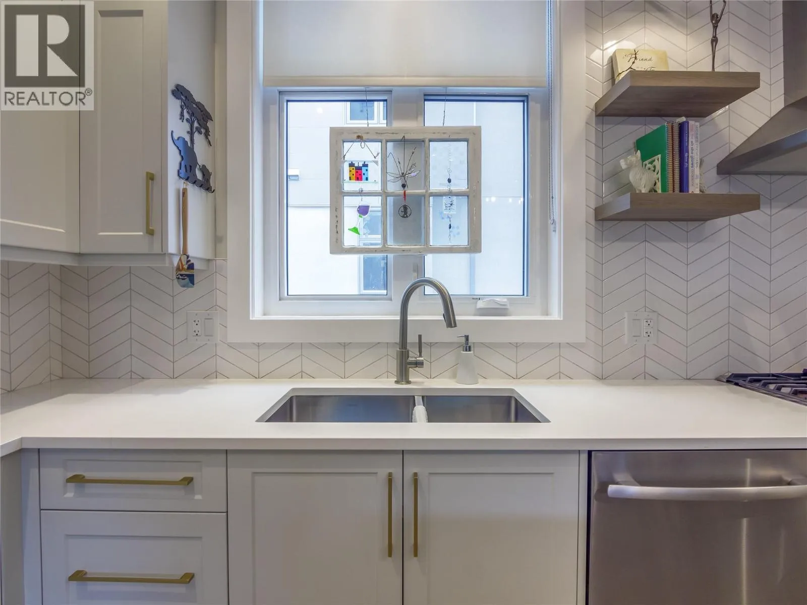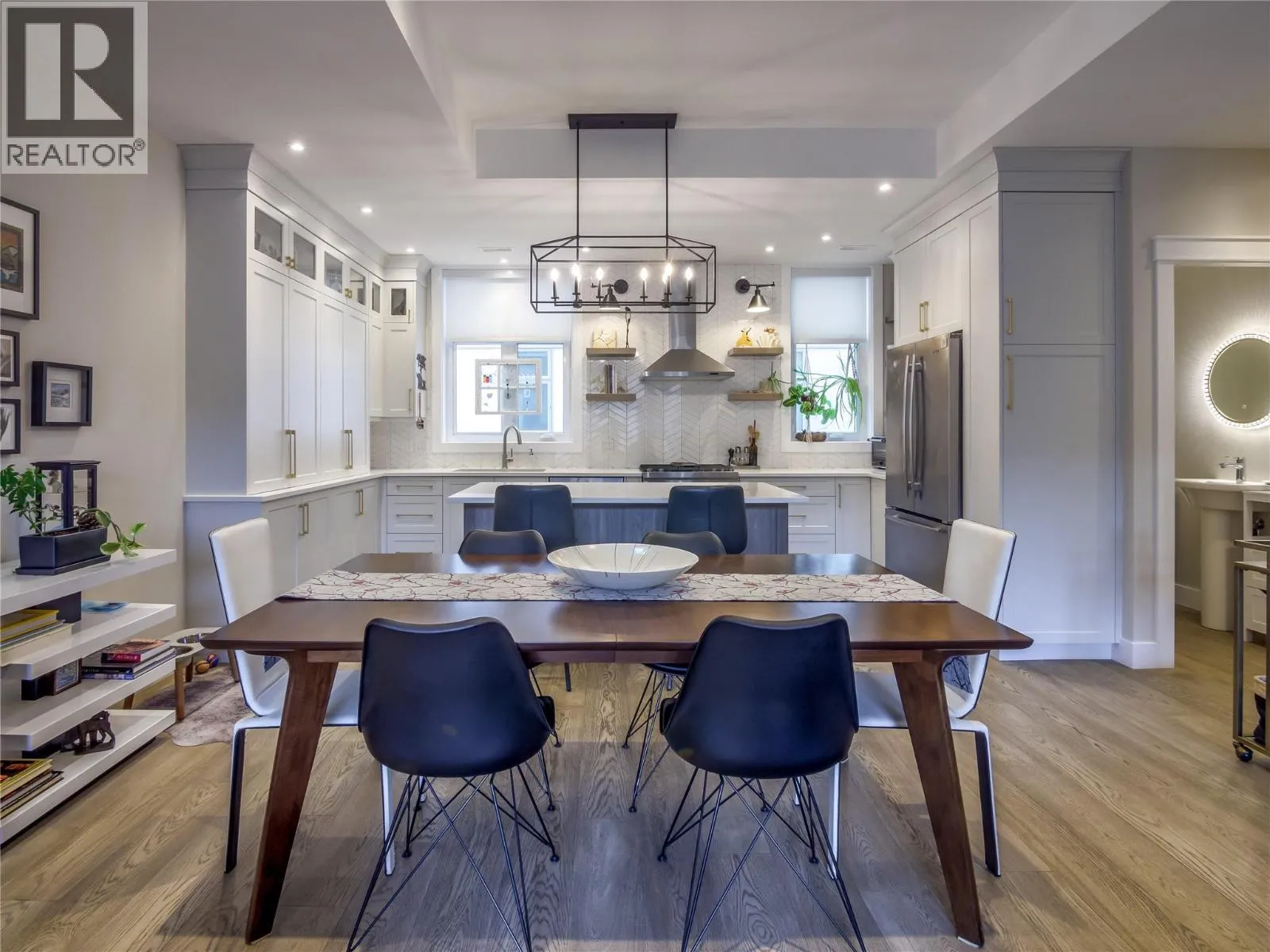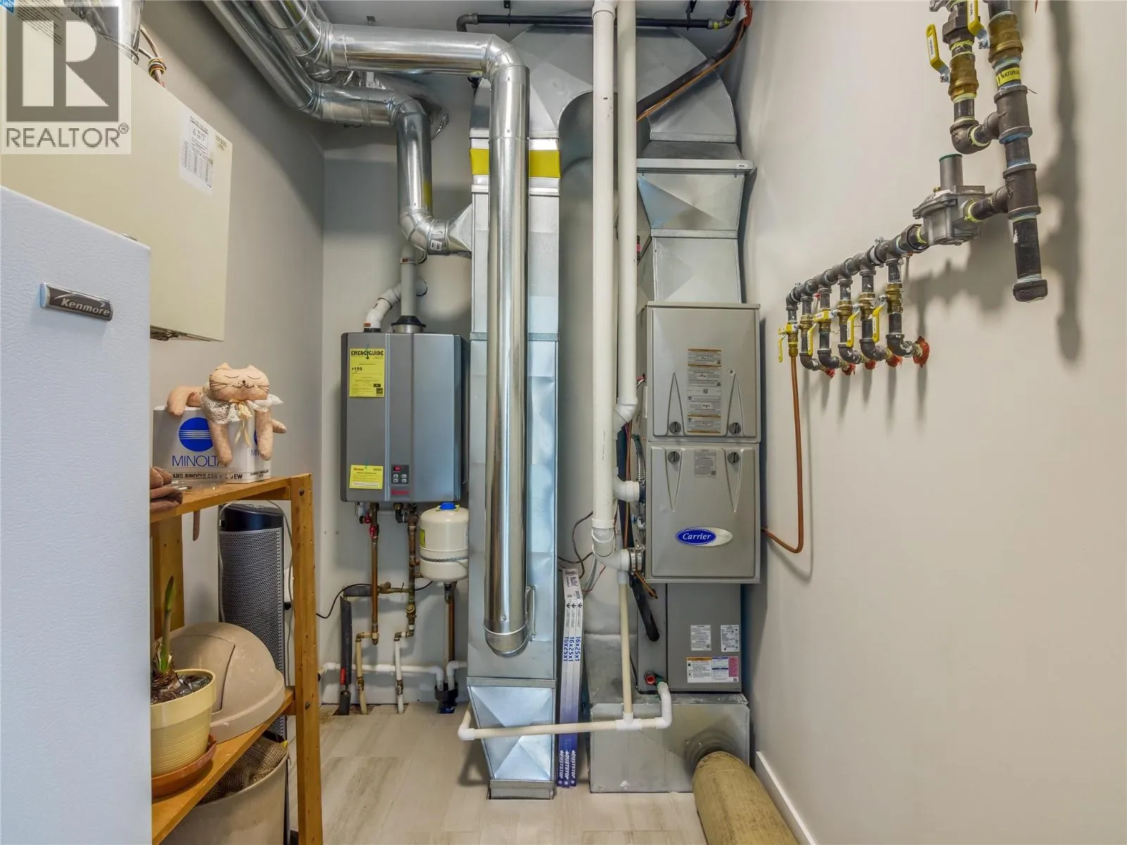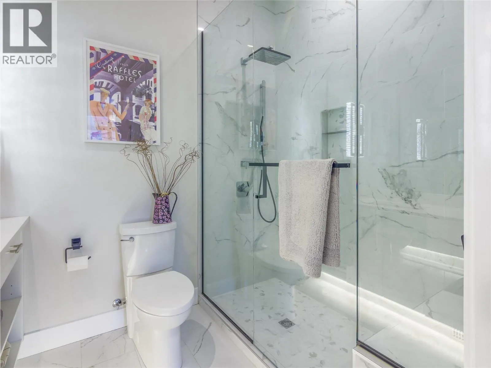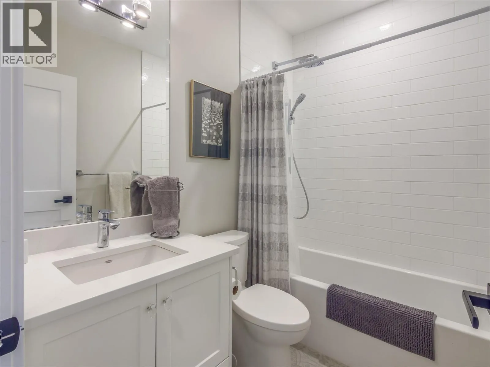 Welcome to 222 Lee, a luxury townhouse just a block to Skaha Lake beach and parks! This stunning unit was built in 2019 and features 1906.3 sqft throughout with four bedrooms, four bathrooms, rooftop patio, and a double car garage! The ground floor of the home has a guest bedroom/den and a three-piece bathroom, a nice sized foyer & the attached double car garage perfect for your cars and beach toys. Up one floor is the spacious open plan great room, featuring beautiful hardwood floors, a sleek modern fireplace, East facing deck for a BBQ, guest bathroom, large dining area & a show stopper kitchen. With classic white cabinets, quartz counters, herringbone pattern backsplash, gas stove & beautiful wood accent island, a chefs dream. Stairs to the next floor feature hardwood flooring into the hallway, laundry, 2 guest/kids bedrooms & a full guest bathroom, + the primary bedroom with walk-in closet full of custom organizers and its stunning ensuite with quartz counters, huge shower, & floating vanity. This unit is topped off with a massive rooftop patio that is dressed to impress with a gas fireplace, hot tub, composite decking, sun shade, & room to entertain all your friends and family. Enjoy this ultimate location just a stroll to Skaha Lake, the walkways & beach, outdoor amenities like tennis and volleyball, the Dragon Boat Pub, and other stops like Kojo sushi or SpinCo just a walk away! This unit is excellent value for the high end quality and the design is sure to impress! (id:27476)