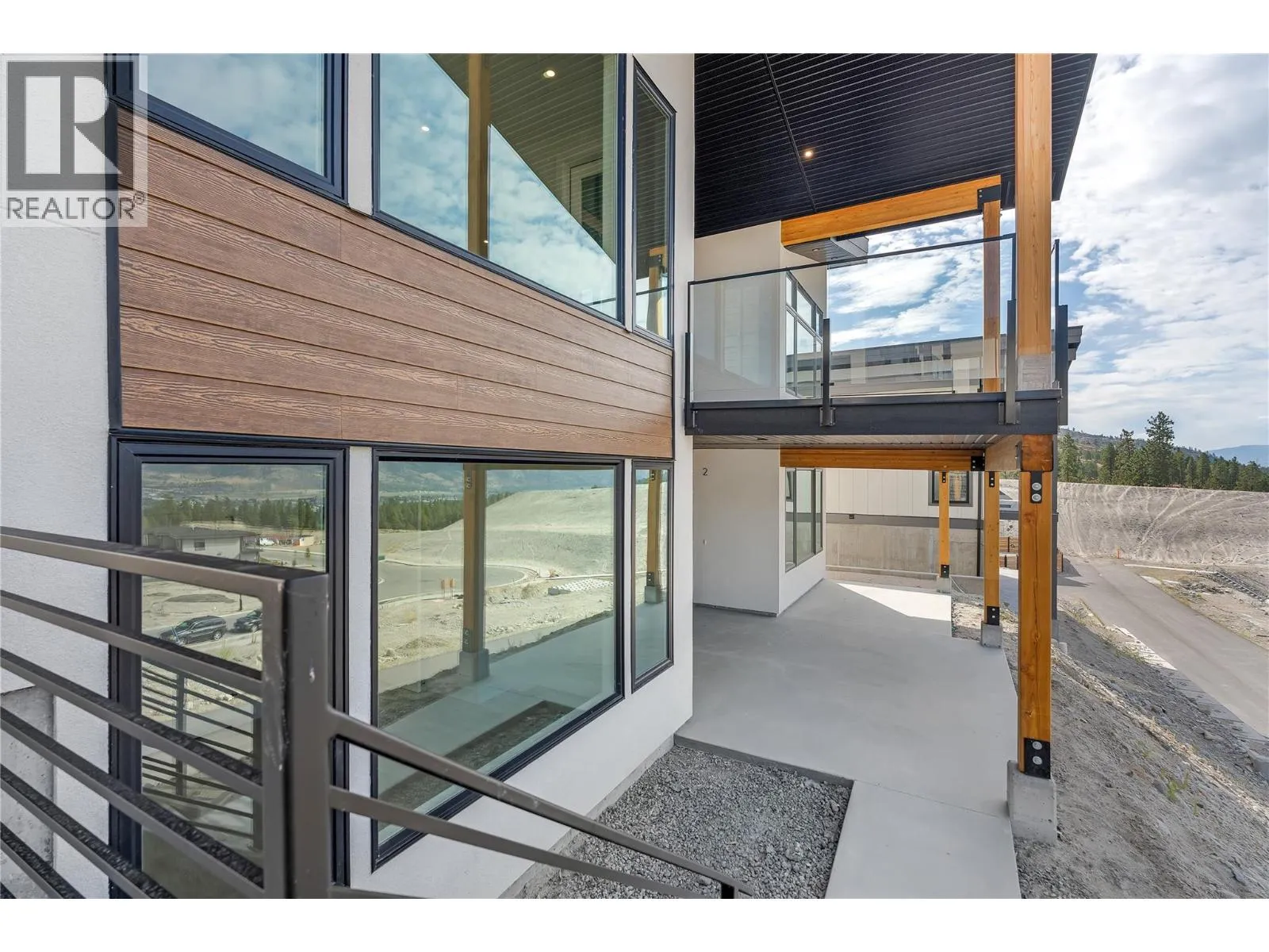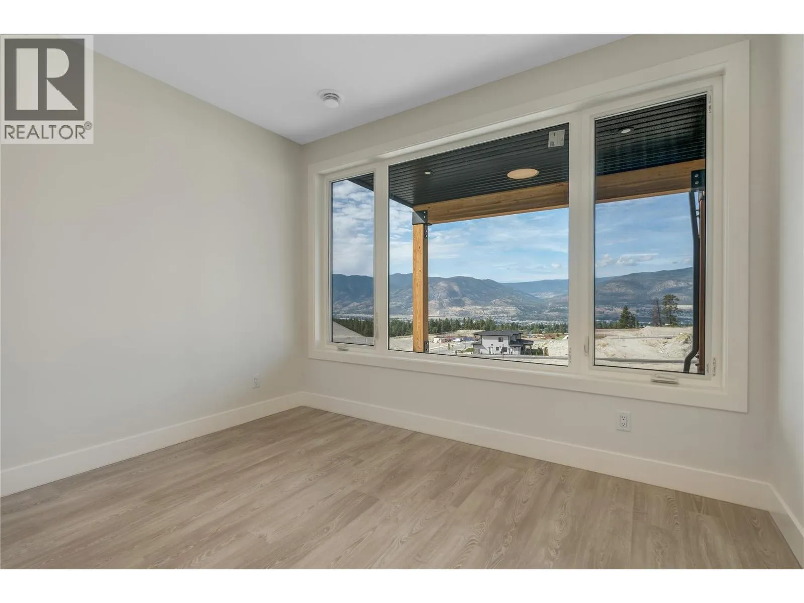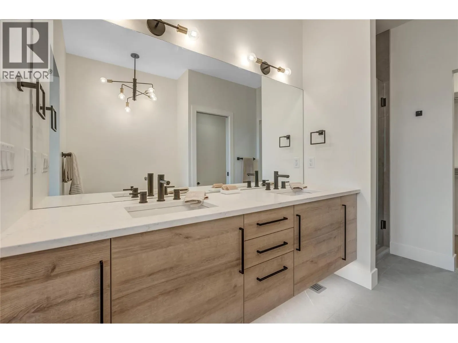 Luxurious family home with legal walk-out suite. Welcome to this stunning 2400+ square foot home in the highly sought-after The Ridge Penticton neighborhood. Blending modern design with functional living spaces, this home is perfect for families or those seeking rental income. The main house includes 3 bedrooms and 2 1/2 baths in a thoughtfully designed open-concept layout. The living area features beautiful white oak engineered hardwood flooring, while the ensuite bathroom features matte porcelain tile. The vaulted ceilings enhance the airy and spacious feel of the home. The kitchen is equipped with quartz countertops, custom cabinetry, and high-end Bosch appliances, including a gas range. For added convenience, the Samsung washer and dryer are located in a multifunctional mudroom/laundry room, which has private access from the 2-car garage. A fully carpeted staircase leads to the lower level, continuing into the hallway and one of the bedrooms. The legal walk-out basement suite offers 2 bedrooms and 1 bathroom, making it perfect for long or short-term rentals following the updated provincial legislation. The suite has laminate flooring in the main living area, a private entrance from the street with stair access, a spacious 200+ square foot covered patio and an in-suite laundry. Located in a peaceful neighborhood with access to local amenities, parks, and schools, this property also offers excellent rental potential with its legal suite. (id:27476)