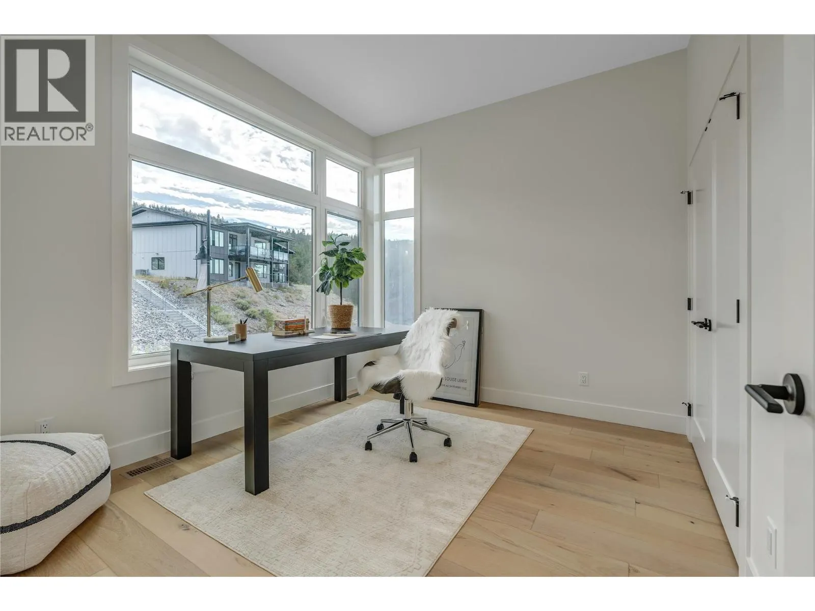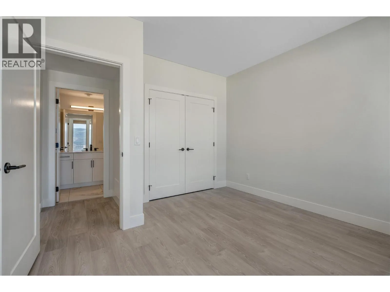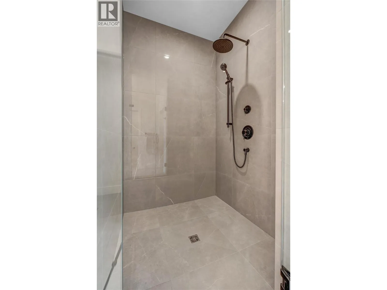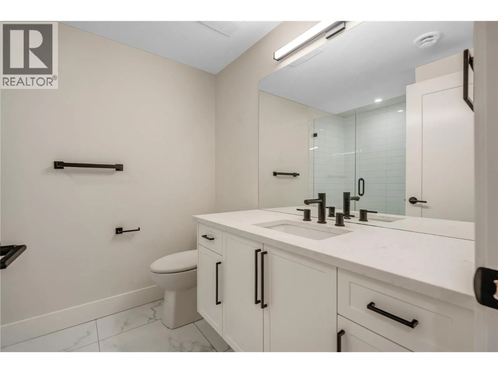 Luxurious family home with legal walk-out suite. Welcome to this stunning 2400+ square foot home in the highly sought-after The Ridge Penticton neighborhood. Blending modern design with functional living spaces, this home is perfect for families or those seeking rental income. The main house includes 3 bedrooms and 2 1/2 baths in a thoughtfully designed open-concept layout. The living area features beautiful white oak engineered hardwood flooring, while the ensuite bathroom features matte porcelain tile. The vaulted ceilings enhance the airy and spacious feel of the home. The kitchen is equipped with quartz countertops, custom cabinetry, and high-end Bosch appliances, including a gas range. For added convenience, the Samsung washer and dryer are located in a multifunctional mudroom/laundry room, which has private access from the 2-car garage. A fully carpeted staircase leads to the lower level, continuing into the hallway and one of the bedrooms. The legal walk-out basement suite offers 2 bedrooms and 1 bathroom, making it perfect for long or short-term rentals following the updated provincial legislation. The suite has laminate flooring in the main living area, a private entrance from the street with stair access, a spacious 200+ square foot covered patio and an in-suite laundry. Located in a peaceful neighborhood with access to local amenities, parks, and schools, this property also offers excellent rental potential with its legal suite. (id:27476)