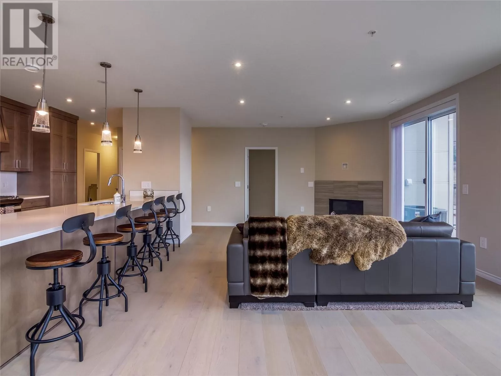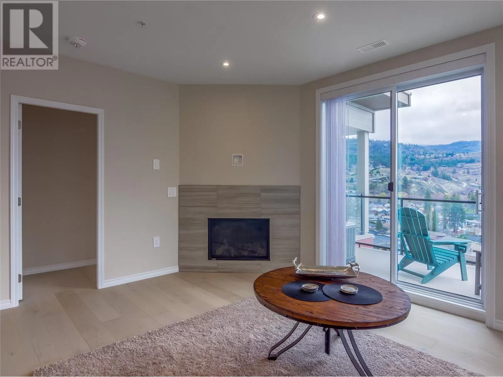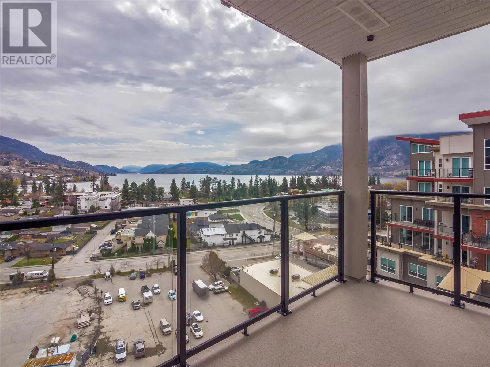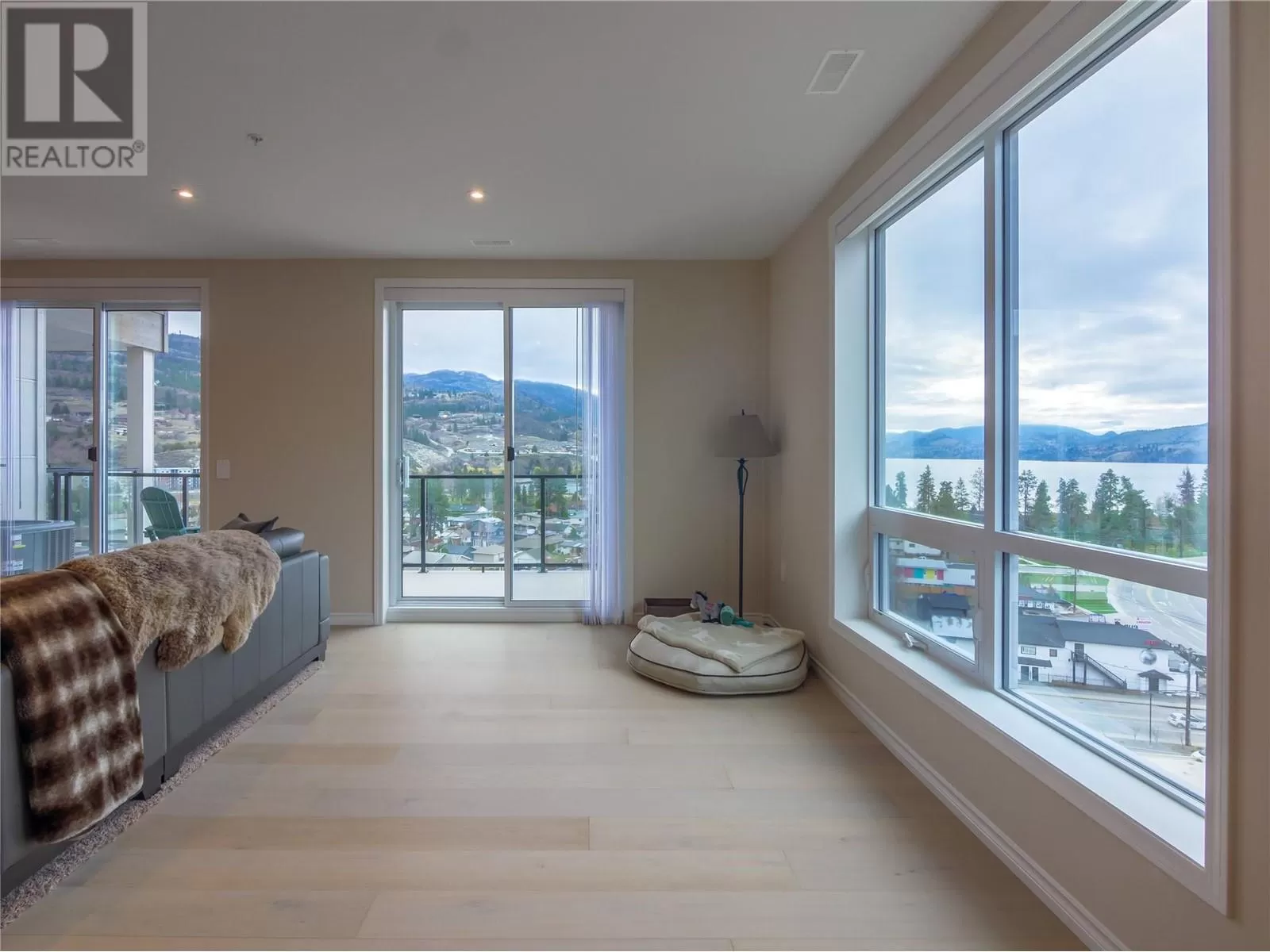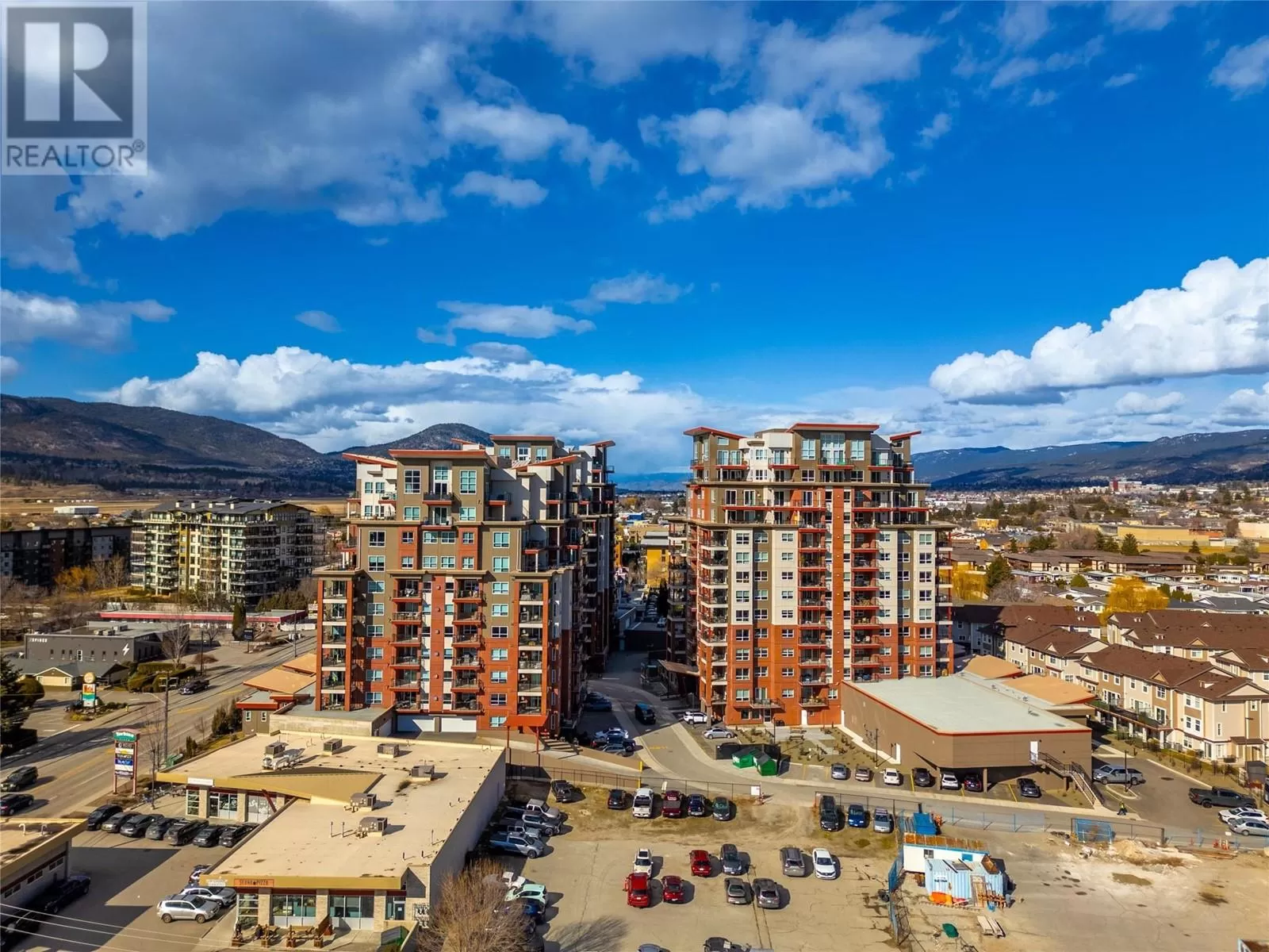 One of Skaha Lake Towers most prime units, a South West corner with unsurpassed lake views in Phase 3! This upgraded & customized unit is 1379sqft with 2 bedrooms 2 bathrooms + a den, with 2 gorgeous decks to enjoy the views from. The expansive open great room features engineered hardwood throughout, 2 sets of patio doors out to the huge South facing deck, a feature gas fireplace with modern tile, 9â ceilings & a layout that offers great flexible options for furniture. This upgraded kitchen has sleek wood cabinets to the ceiling, is an extended size adding more cabinets & a built in microwave, has expansive counter space with a stunning huge peninsula to entertain at, quartz counters, & stainless steel appliances top it off. The customisations continue in the primary bathroom with a custom tile shower, hardwood floors run throughout all the rooms including the spacious guest bedroom & the dedicated den/home office. The primary bedroom enjoys its own deck, ensuite with double sinks & a walk in closet. This energy efficient unit has a gas hot water on demand unit, forced air heat & central AC. The suite has a storage unit on the same floor, a secure parkade parking spot, + the building has a dedicated bike locker room, common rec room & patio, & more. Enjoy living a short stroll to Skaha Lake with its gorgeous beach, parks, & walking paths. Plus enjoy conveniences nearby like Kojo sushi, the bakery and pizza shop, spinco, the Dragon Boat pub and more. This one is a must see! (id:27476)