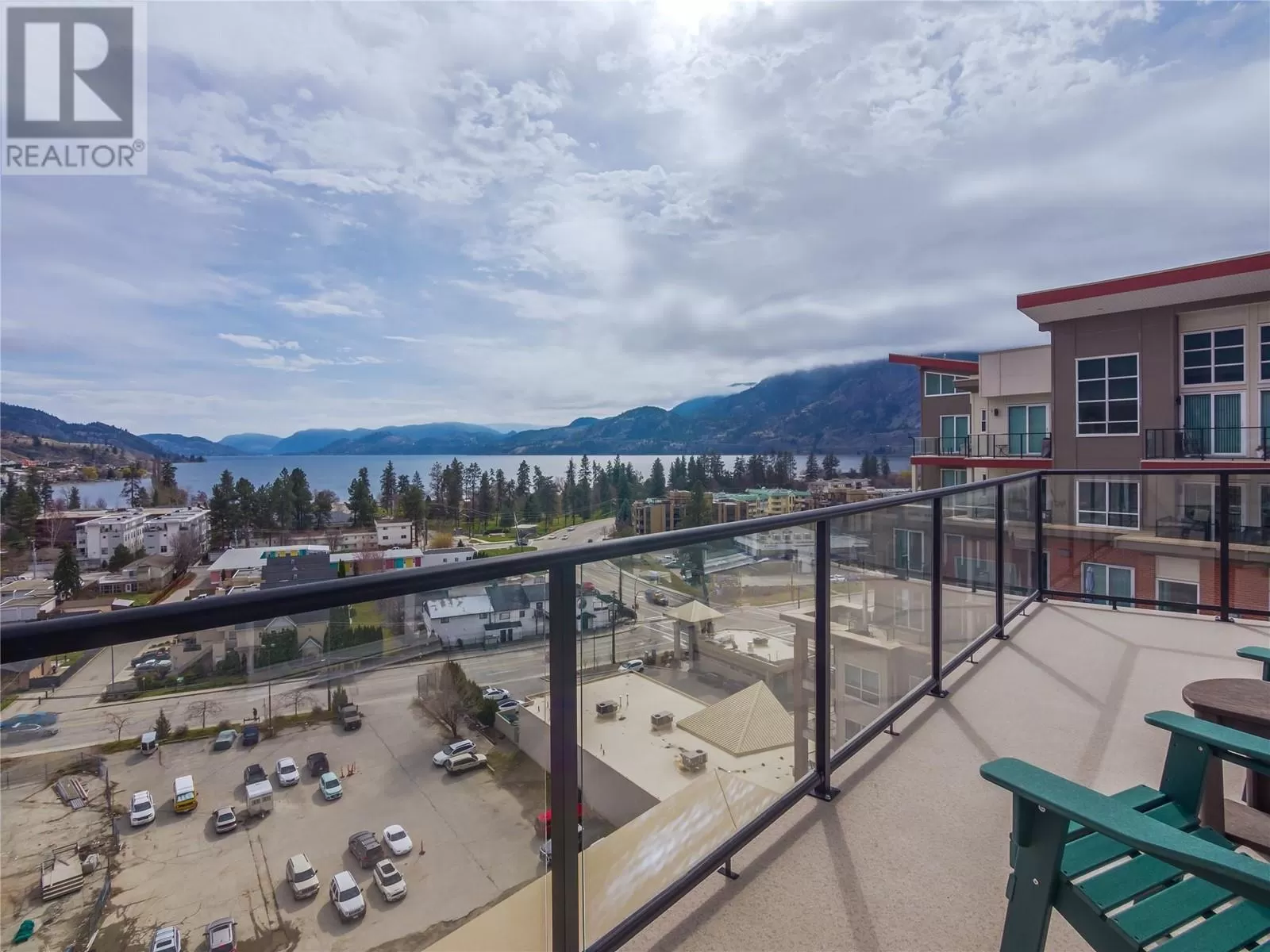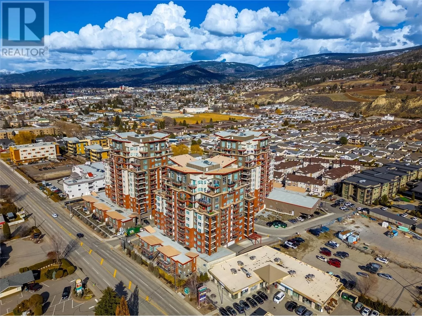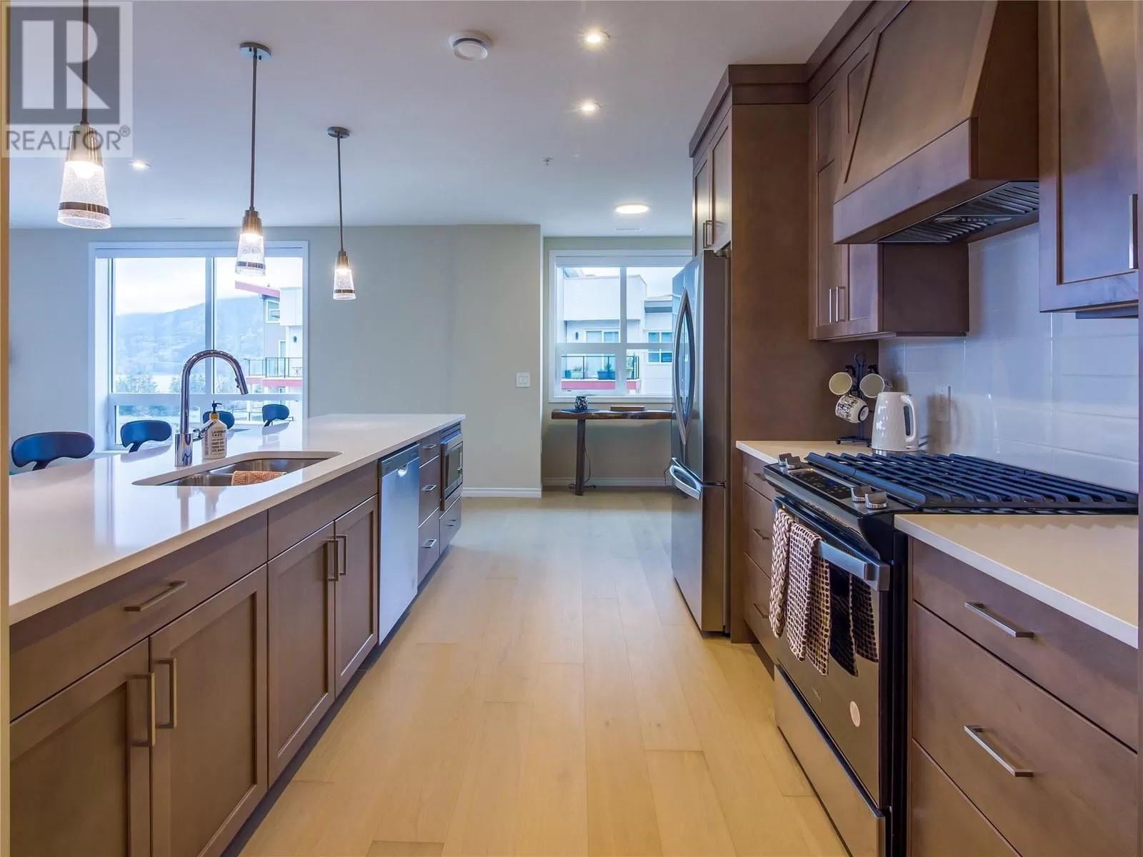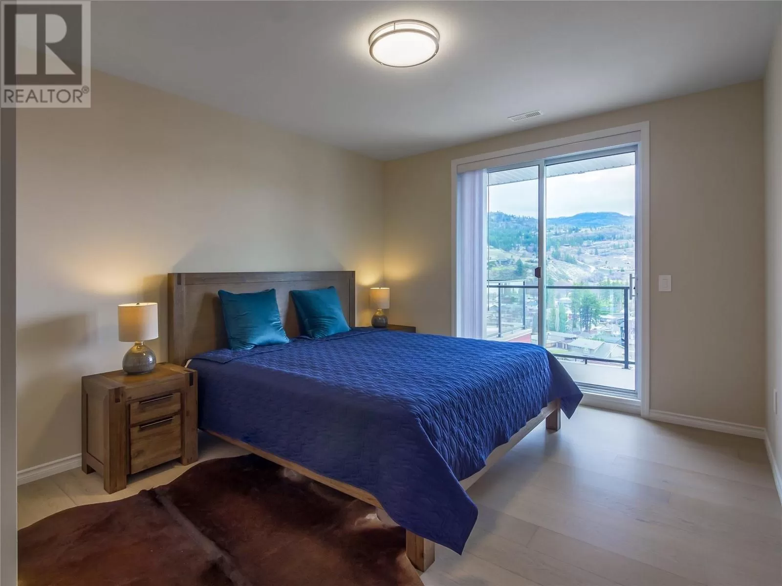 One of Skaha Lake Towers most prime units, a South West corner with unsurpassed lake views in Phase 3! This upgraded & customized unit is 1379sqft with 2 bedrooms 2 bathrooms + a den, with 2 gorgeous decks to enjoy the views from. The expansive open great room features engineered hardwood throughout, 2 sets of patio doors out to the huge South facing deck, a feature gas fireplace with modern tile, 9â ceilings & a layout that offers great flexible options for furniture. This upgraded kitchen has sleek wood cabinets to the ceiling, is an extended size adding more cabinets & a built in microwave, has expansive counter space with a stunning huge peninsula to entertain at, quartz counters, & stainless steel appliances top it off. The customisations continue in the primary bathroom with a custom tile shower, hardwood floors run throughout all the rooms including the spacious guest bedroom & the dedicated den/home office. The primary bedroom enjoys its own deck, ensuite with double sinks & a walk in closet. This energy efficient unit has a gas hot water on demand unit, forced air heat & central AC. The suite has a storage unit on the same floor, a secure parkade parking spot, + the building has a dedicated bike locker room, common rec room & patio, & more. Enjoy living a short stroll to Skaha Lake with its gorgeous beach, parks, & walking paths. Plus enjoy conveniences nearby like Kojo sushi, the bakery and pizza shop, spinco, the Dragon Boat pub and more. This one is a must see! (id:27476)