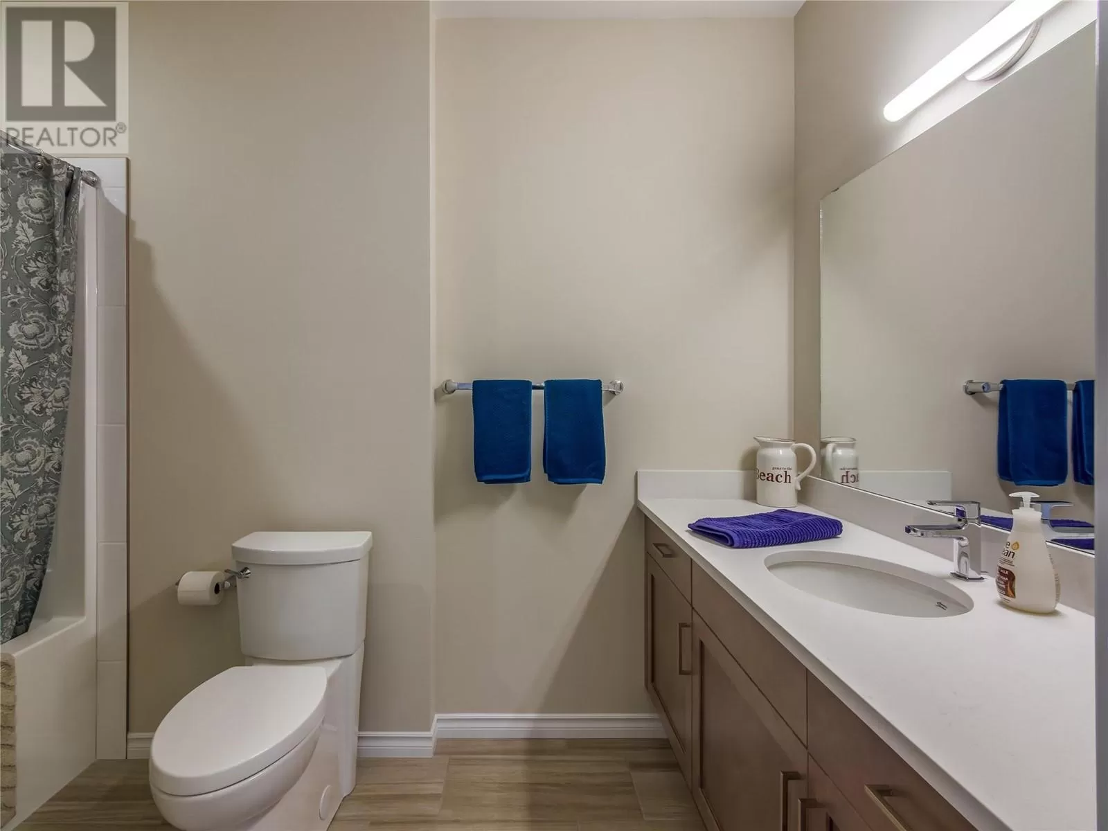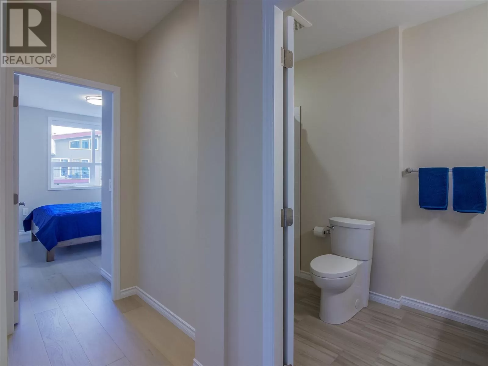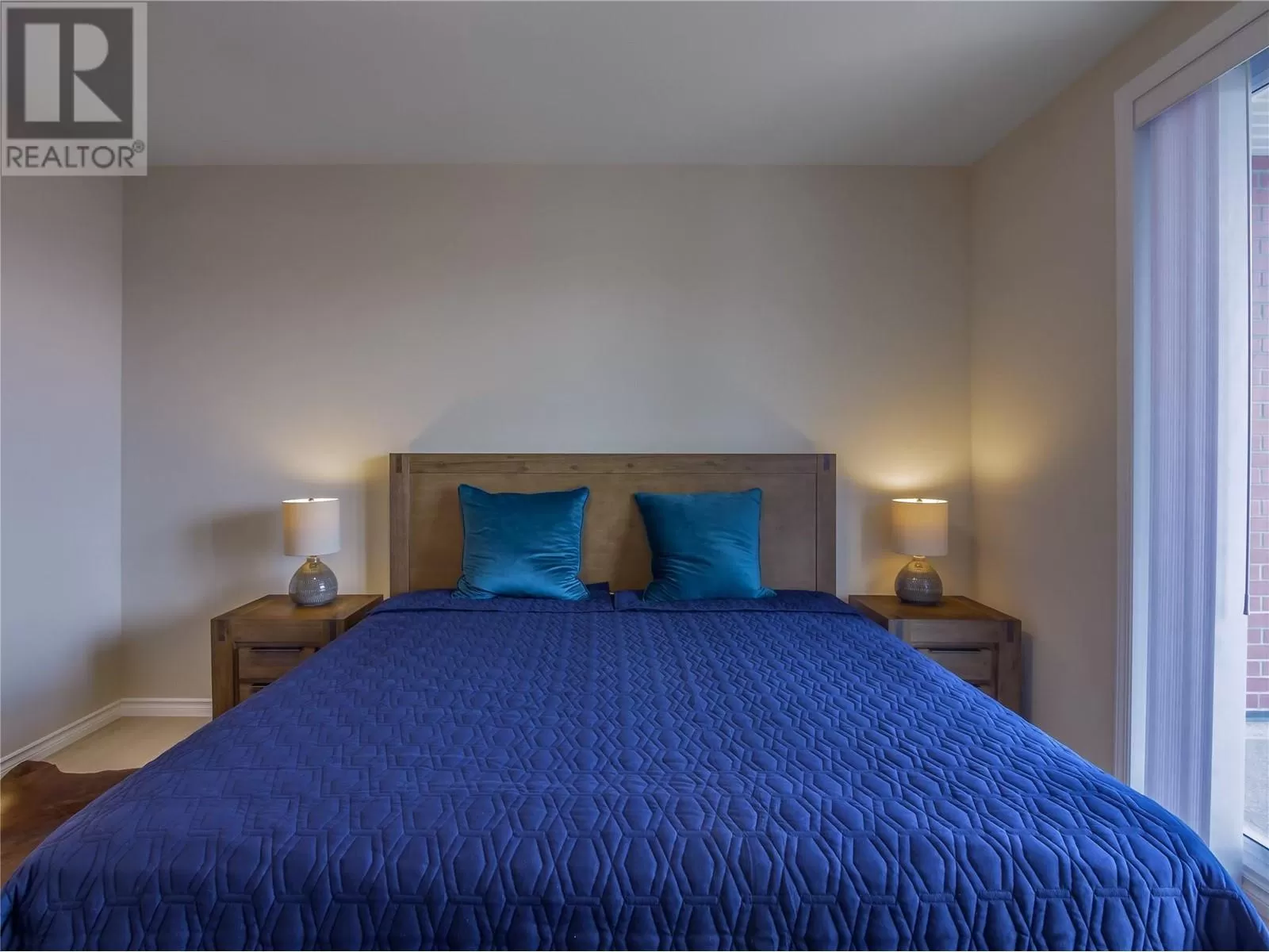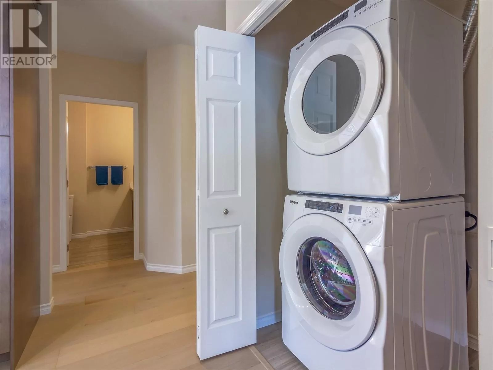 One of Skaha Lake Towers most prime units, a South West corner with unsurpassed lake views in Phase 3! This upgraded & customized unit is 1379sqft with 2 bedrooms 2 bathrooms + a den, with 2 gorgeous decks to enjoy the views from. The expansive open great room features engineered hardwood throughout, 2 sets of patio doors out to the huge South facing deck, a feature gas fireplace with modern tile, 9â ceilings & a layout that offers great flexible options for furniture. This upgraded kitchen has sleek wood cabinets to the ceiling, is an extended size adding more cabinets & a built in microwave, has expansive counter space with a stunning huge peninsula to entertain at, quartz counters, & stainless steel appliances top it off. The customisations continue in the primary bathroom with a custom tile shower, hardwood floors run throughout all the rooms including the spacious guest bedroom & the dedicated den/home office. The primary bedroom enjoys its own deck, ensuite with double sinks & a walk in closet. This energy efficient unit has a gas hot water on demand unit, forced air heat & central AC. The suite has a storage unit on the same floor, a secure parkade parking spot, + the building has a dedicated bike locker room, common rec room & patio, & more. Enjoy living a short stroll to Skaha Lake with its gorgeous beach, parks, & walking paths. Plus enjoy conveniences nearby like Kojo sushi, the bakery and pizza shop, spinco, the Dragon Boat pub and more. This one is a must see! (id:27476)