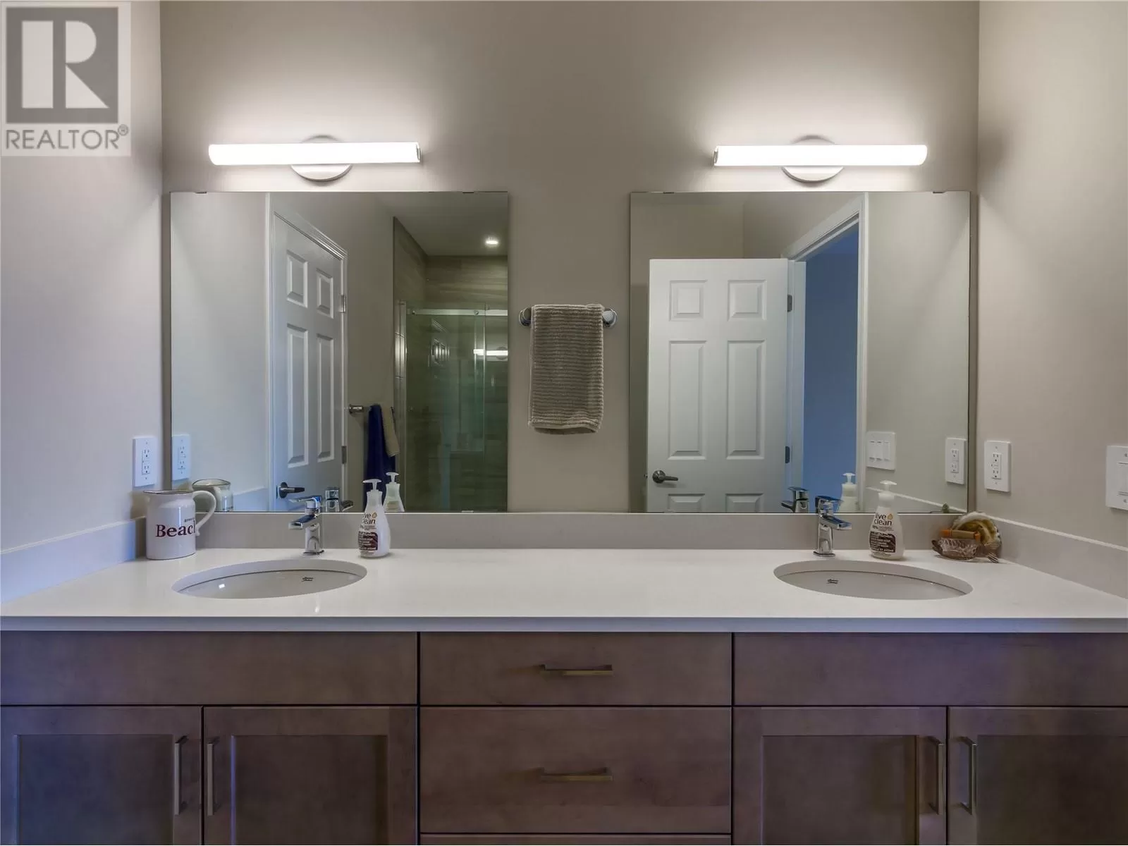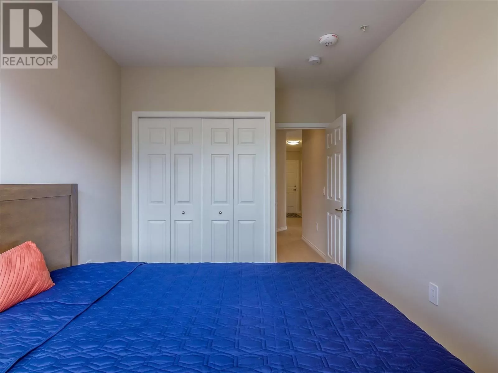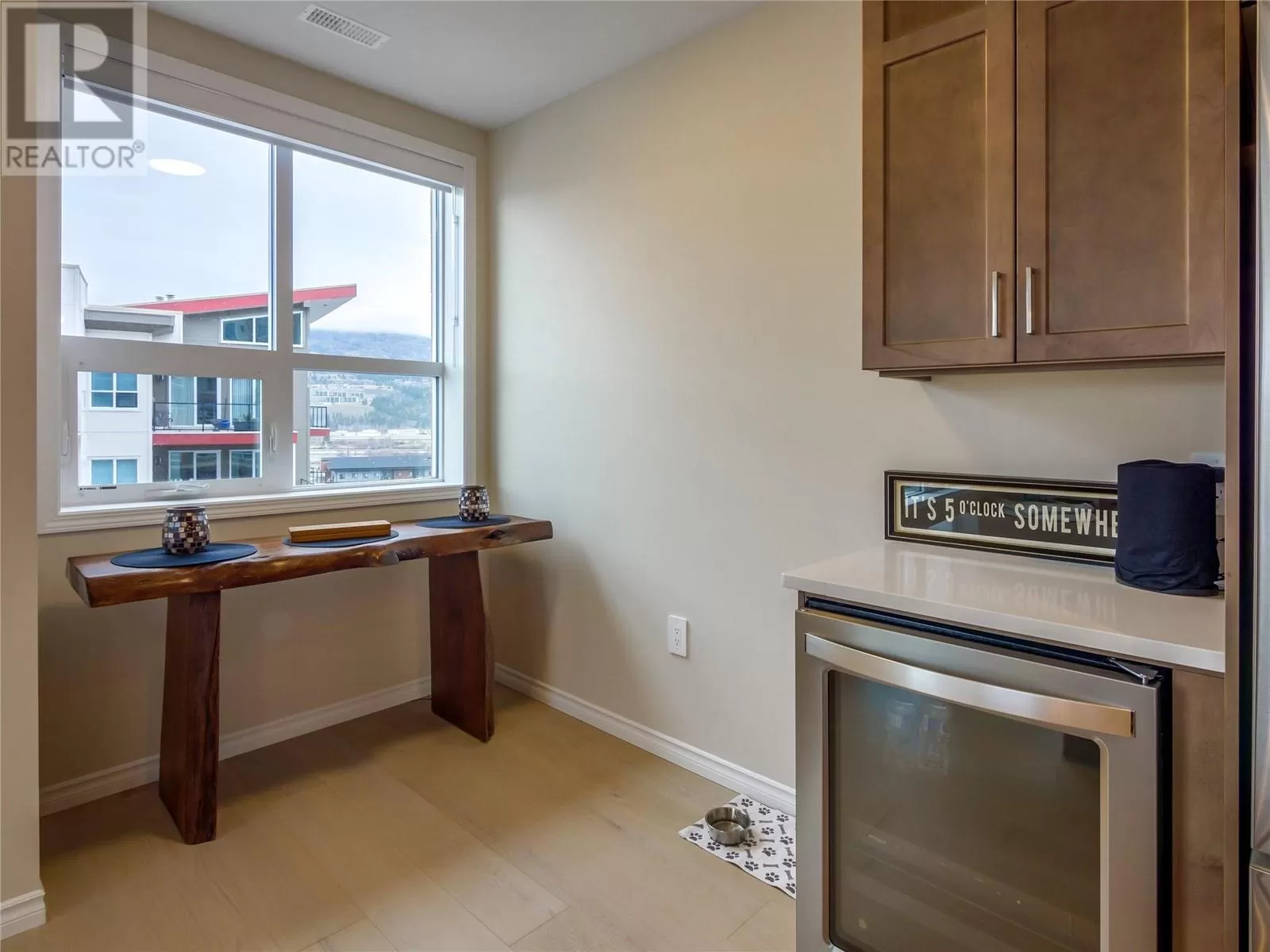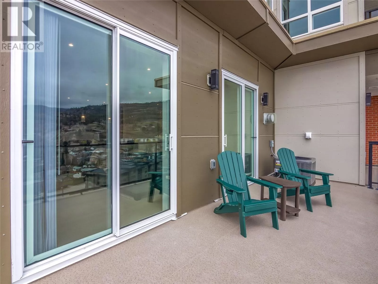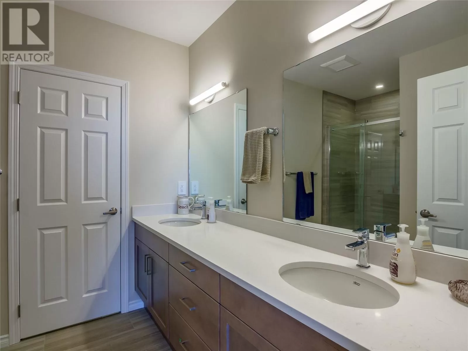 One of Skaha Lake Towers most prime units, a South West corner with unsurpassed lake views in Phase 3! This upgraded & customized unit is 1379sqft with 2 bedrooms 2 bathrooms + a den, with 2 gorgeous decks to enjoy the views from. The expansive open great room features engineered hardwood throughout, 2 sets of patio doors out to the huge South facing deck, a feature gas fireplace with modern tile, 9â ceilings & a layout that offers great flexible options for furniture. This upgraded kitchen has sleek wood cabinets to the ceiling, is an extended size adding more cabinets & a built in microwave, has expansive counter space with a stunning huge peninsula to entertain at, quartz counters, & stainless steel appliances top it off. The customisations continue in the primary bathroom with a custom tile shower, hardwood floors run throughout all the rooms including the spacious guest bedroom & the dedicated den/home office. The primary bedroom enjoys its own deck, ensuite with double sinks & a walk in closet. This energy efficient unit has a gas hot water on demand unit, forced air heat & central AC. The suite has a storage unit on the same floor, a secure parkade parking spot, + the building has a dedicated bike locker room, common rec room & patio, & more. Enjoy living a short stroll to Skaha Lake with its gorgeous beach, parks, & walking paths. Plus enjoy conveniences nearby like Kojo sushi, the bakery and pizza shop, spinco, the Dragon Boat pub and more. This one is a must see! (id:27476)