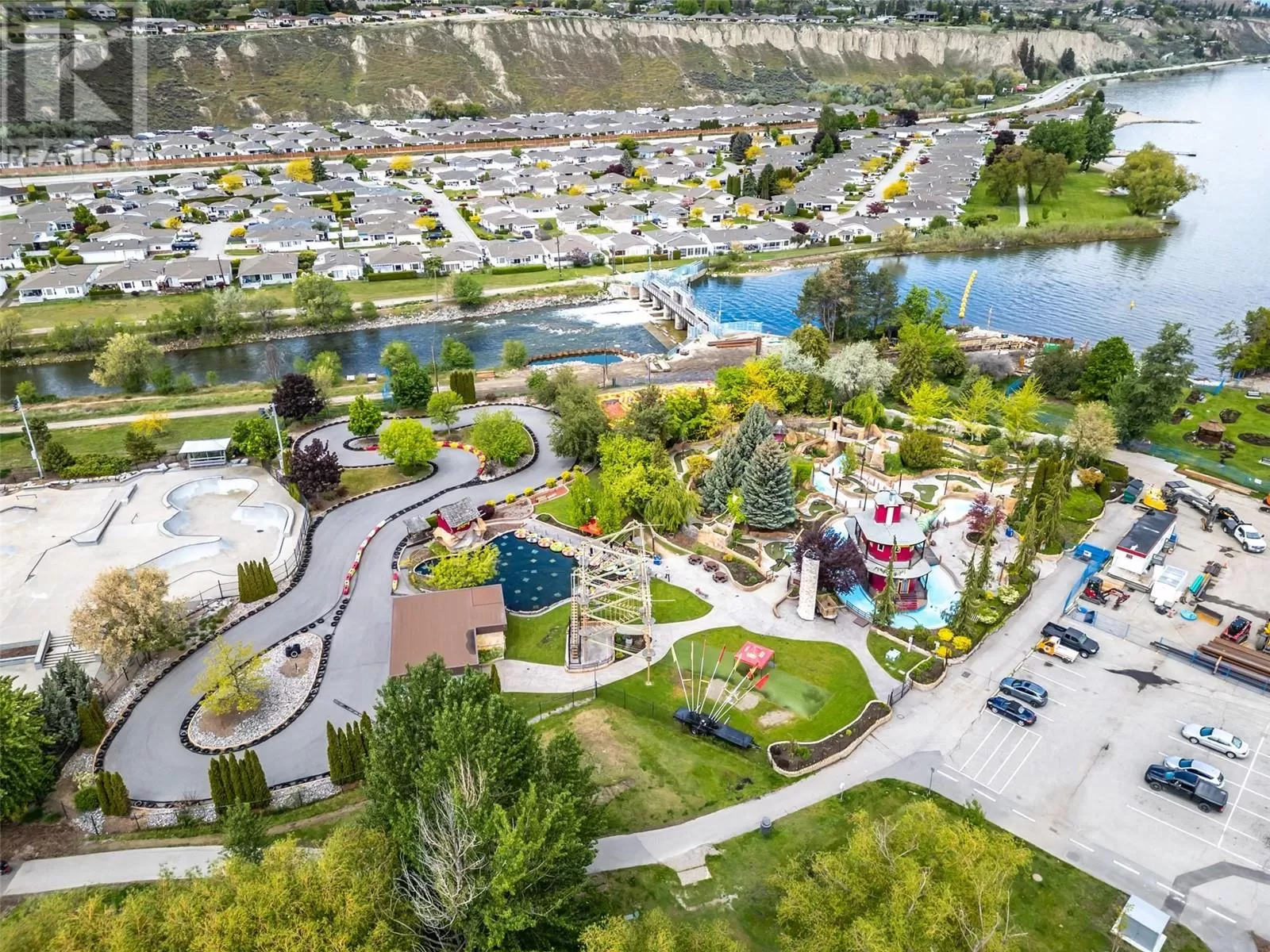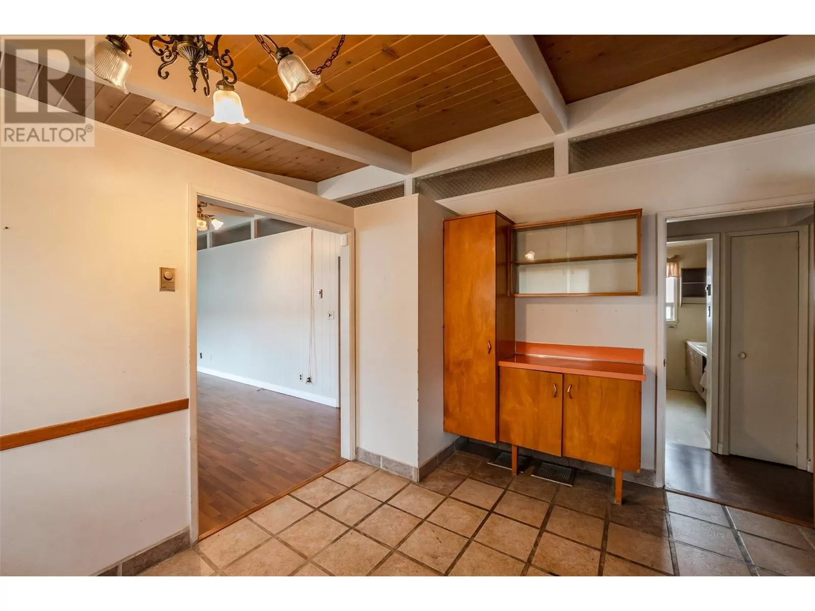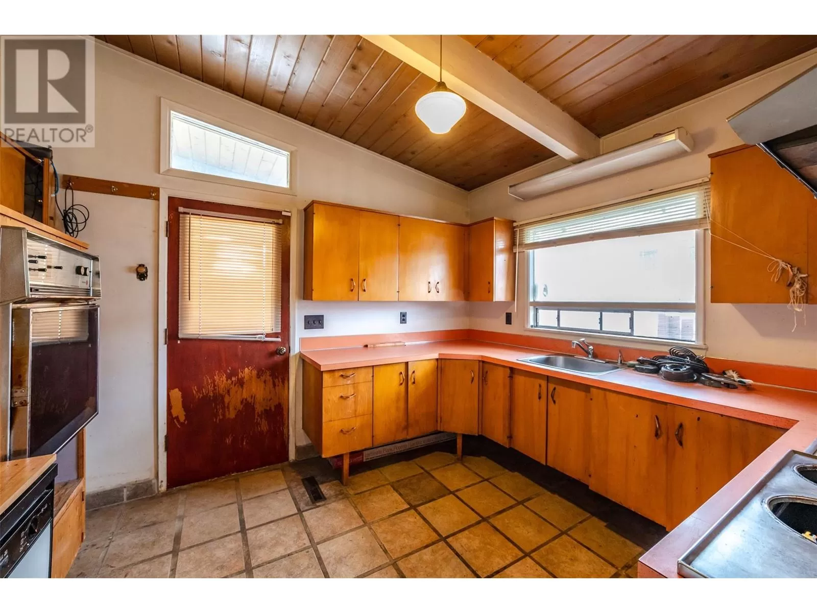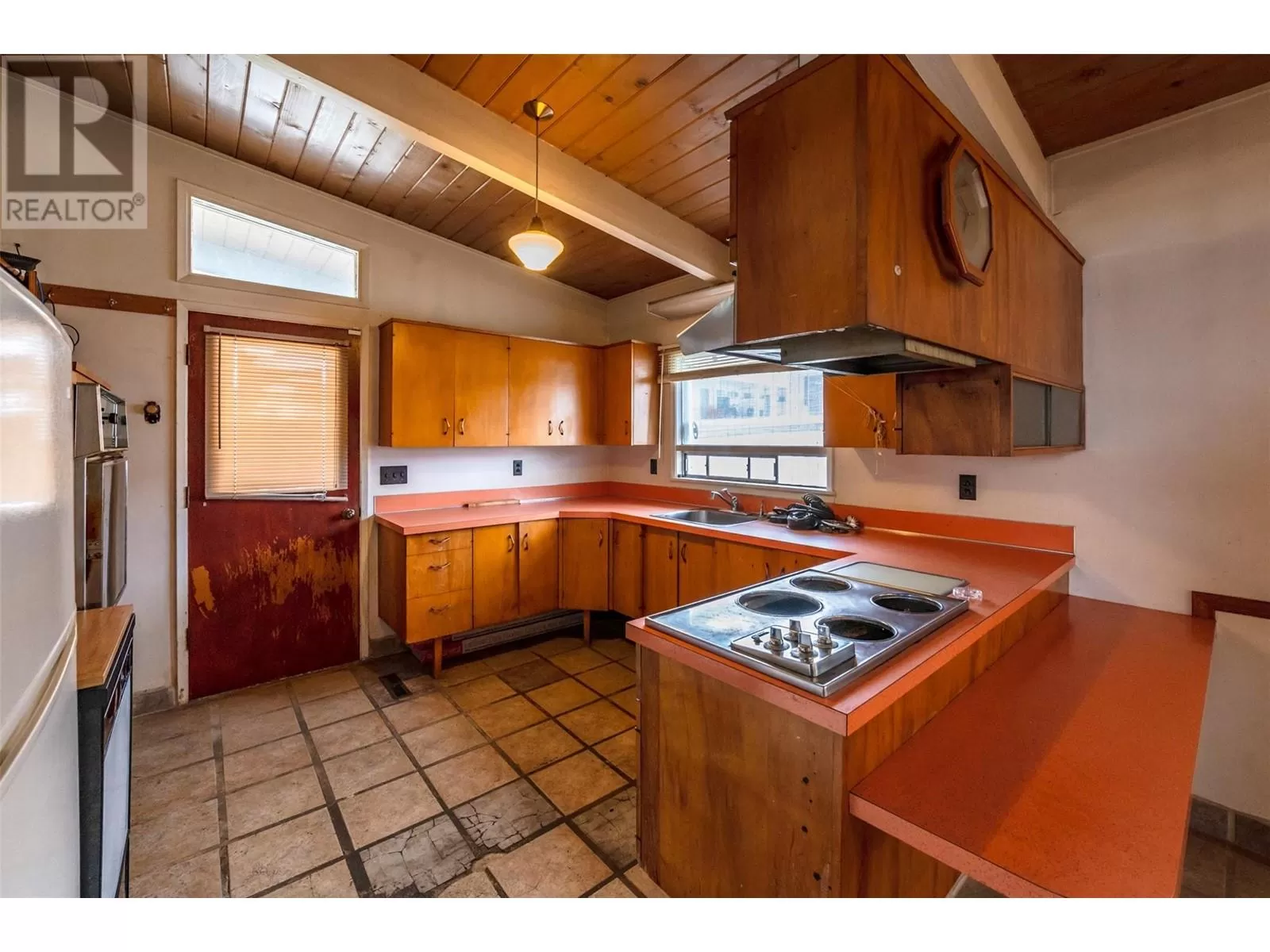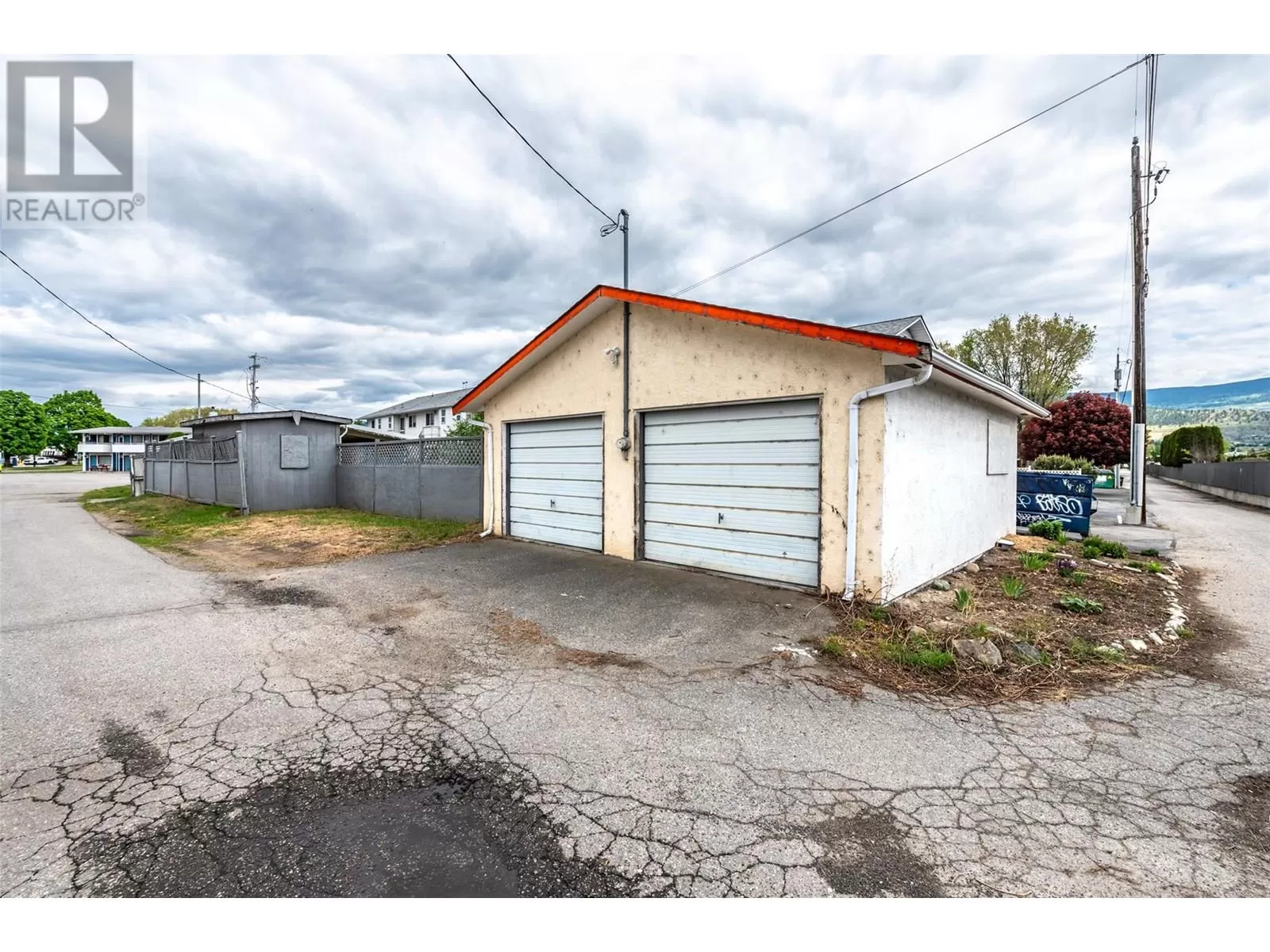 Fantastic location for this retro residential home with detached double car garage. Rancher rental or starter home. Commercial zoning corner long skinny narrow lot lends itself to many possibilities for the future development holding property. Quick possession available. Okanagan Lake, the South Okanagan Events center, coffee shops and restaurants are all within a minutes walk. (id:27476)