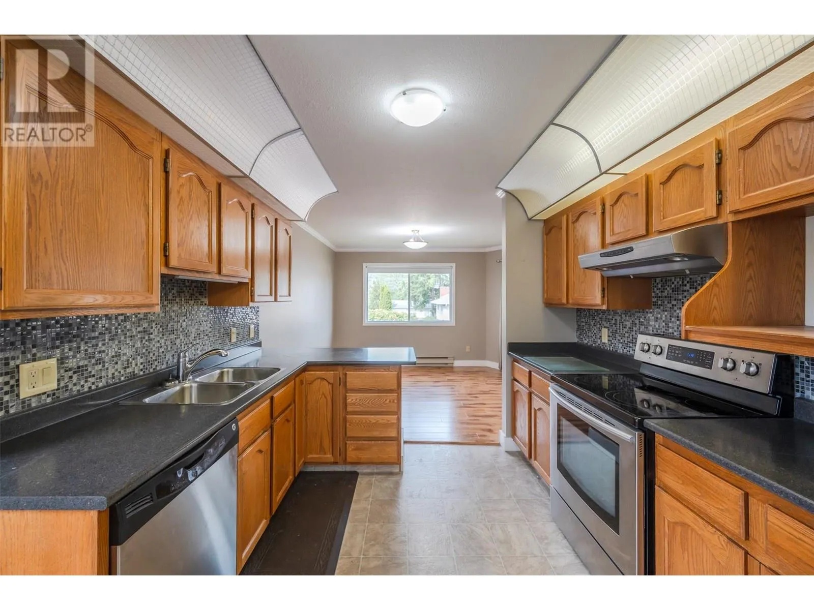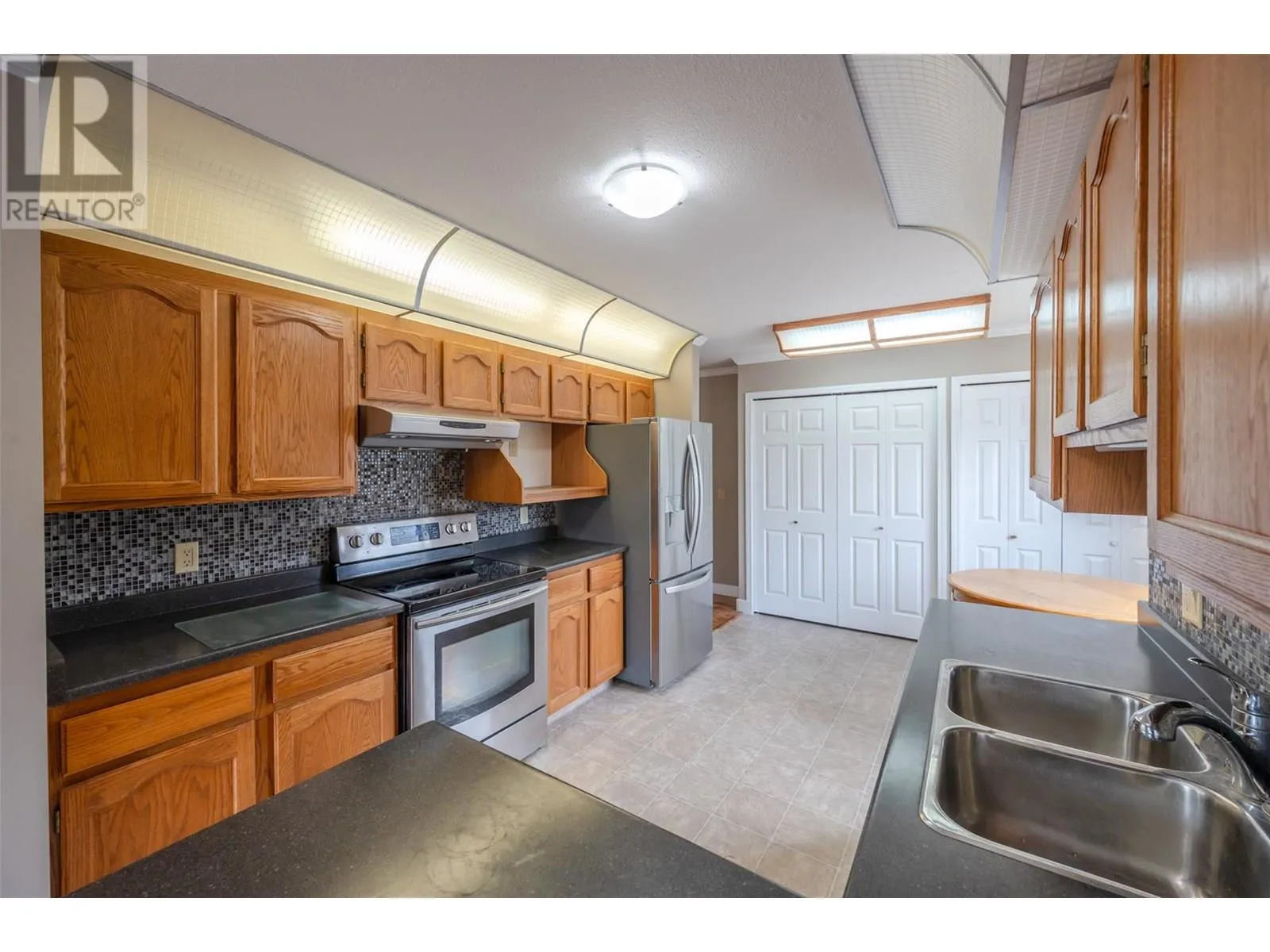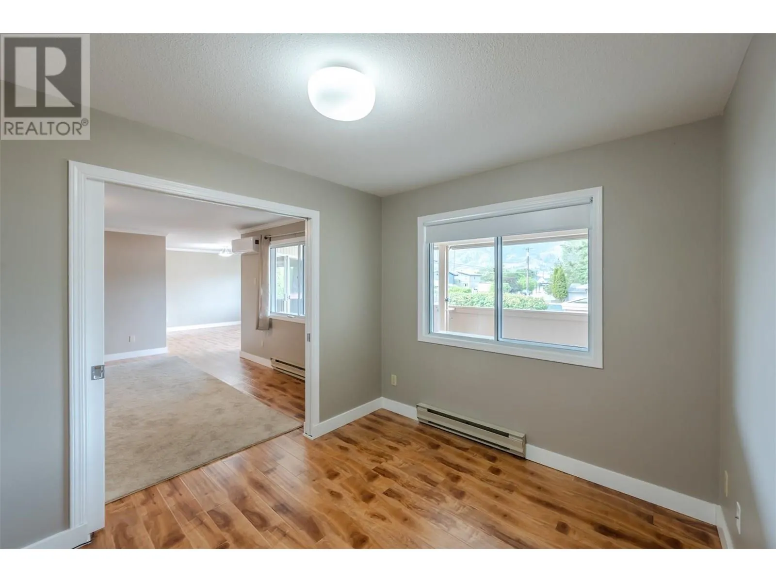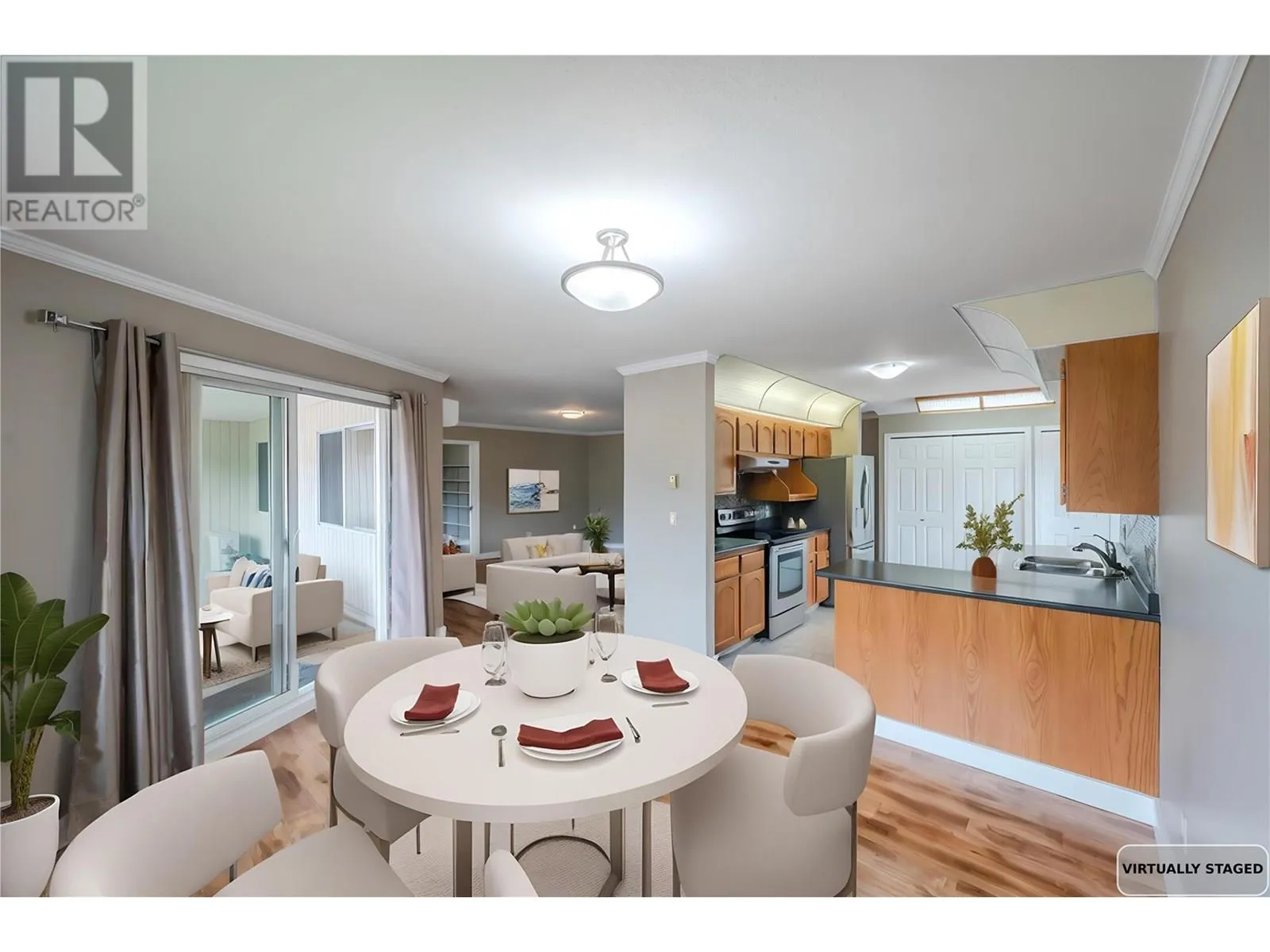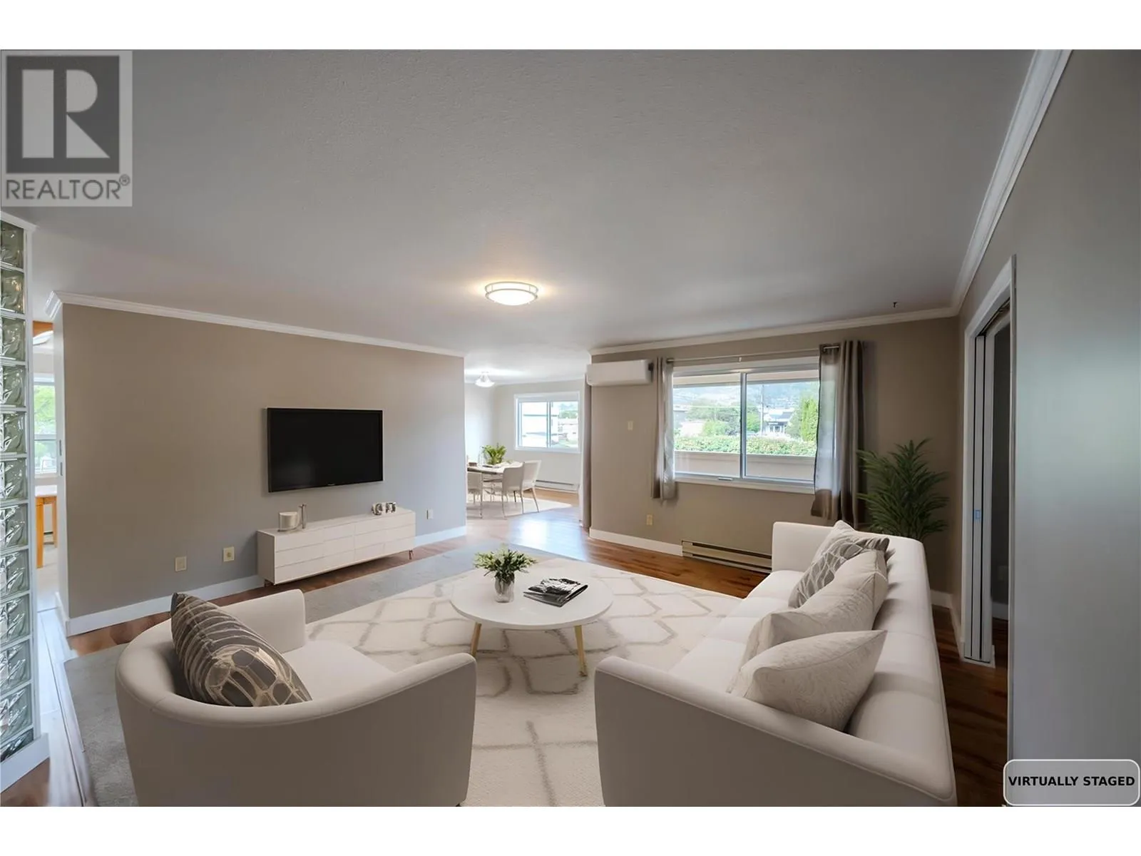 Welcome to this beautifully designed 55+ one-level townhome offering comfort, functionality, and stunning mountain views. This top-floor unit features two spacious bedrooms and two bathrooms, including a primary suite with a private 3-piece ensuite. The bright, open-concept living and dining area flows seamlessly onto a covered deckâperfect for relaxing or entertaining. A cozy den off the living room and an office space off the foyer provide flexible living options. The kitchen includes in-suite laundry for added convenience, and a detached garage offering ample storage plus an additional outdoor parking space. With a smart layout and plenty of natural light, this home combines ease of living with style and space. Rentals and cats allowed, but no dogs - contact the listing agent to view! (id:27476)