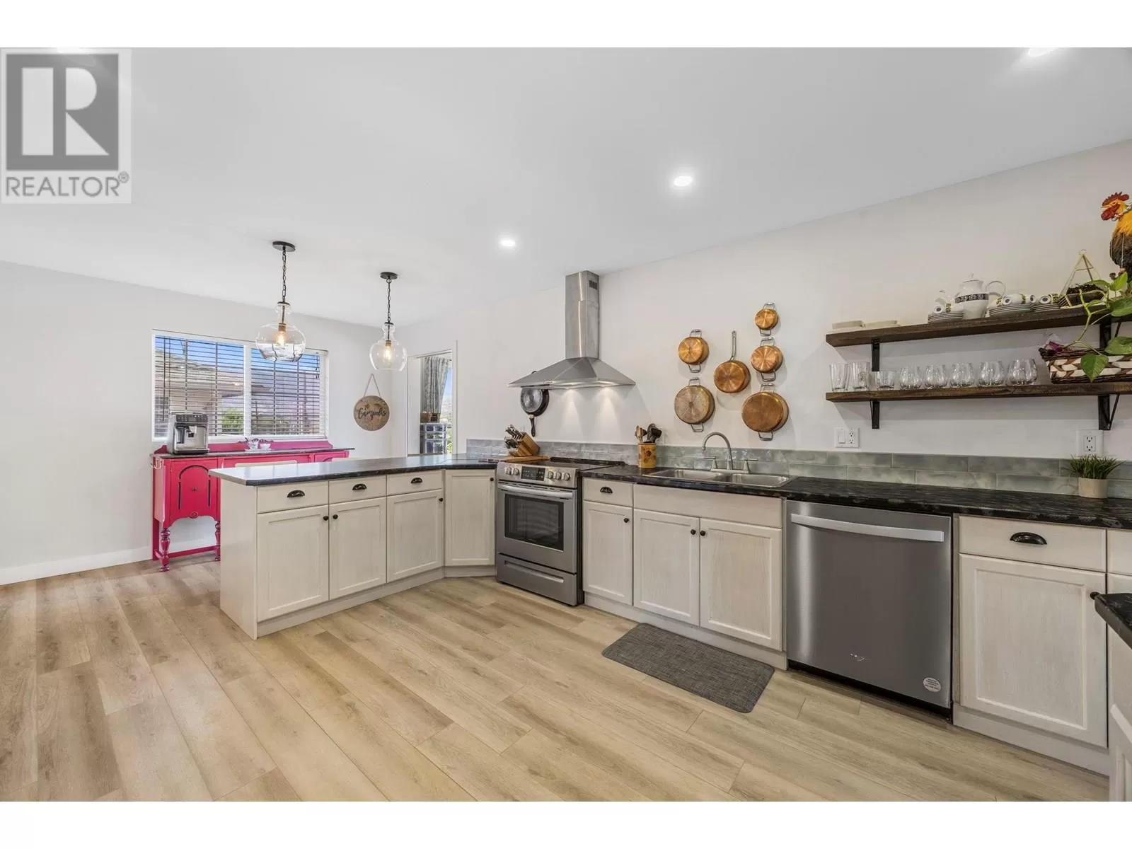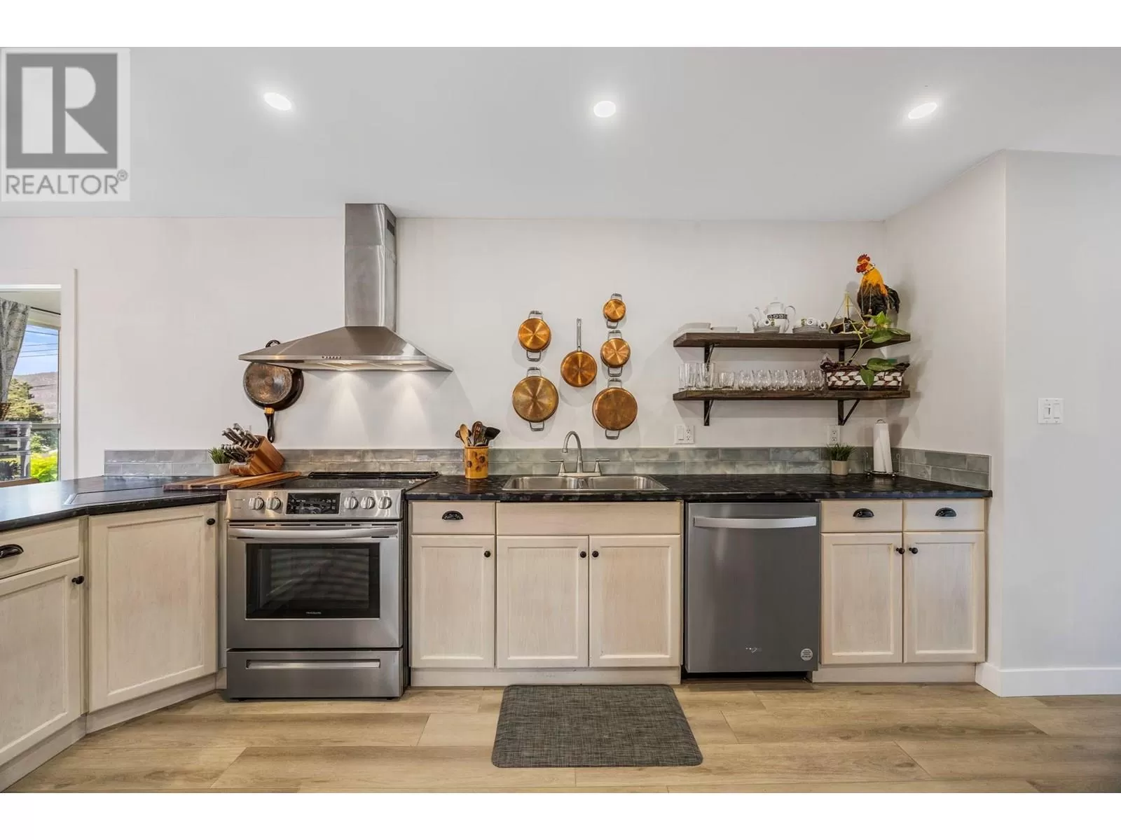 Spacious 5-bedroom, 4-bathroom home in a prime Penticton location with a large 2-bedroom in-law suite that can be used as a mortgage helper or as a profitable Airbnb. Energy-efficient natural gas furnace and hot water tank replaced in 2019. Features include central vacuum, 2 gas fireplaces, 2 natural gas BBQ hookups, and 2 wired outbuildings that are nice enough to rent as extra rooms. New 30-year roof installed in 2012. Major renovations in 2010 with full geotechnical and structural engineer involvement. Upstairs boasts new vinyl plank flooring and a luxurious ensuite with heated floors. Fantastic location just steps from the KVR Trail and close to schools, shops, and all amenities Penticton has to offer. Ideal for families or investors â move-in ready with excellent income potential! (id:27476)