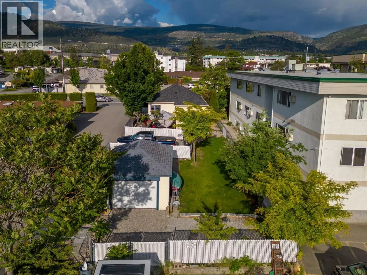 Close to the heart of downtown Penticton. Large 0.19-acre R4-L lot presents a fantastic opportunity, whether you're looking for a holding property with potential for multi-unit residential development or a charming starter home in Penticton's vibrant downtown core. The location offers unparalleled convenience, with schools, breweries, restaurants, shops, and numerous amenities just a short stroll away. The 2-bedroom home on the property is in excellent condition, brimming with character and boasting a host of recent upgrades, making it move-in ready. You'll appreciate the original hardwood flooring, the upgraded kitchen with newer appliances, and the updated 4-piece bathroom. The home also features newer vinyl windows and a poured stamped concrete pad in the backyard, perfect for barbecues and entertaining. The full basement is partially finished, offering ample space for future expansion. Detached single garage and or workshop at the rear of property, and extra parking included right outside your back door. Recent home inspection performed and brand new hot water tank June 2025 on file. Call LS for a personal tour. All meas approx. (id:27476)