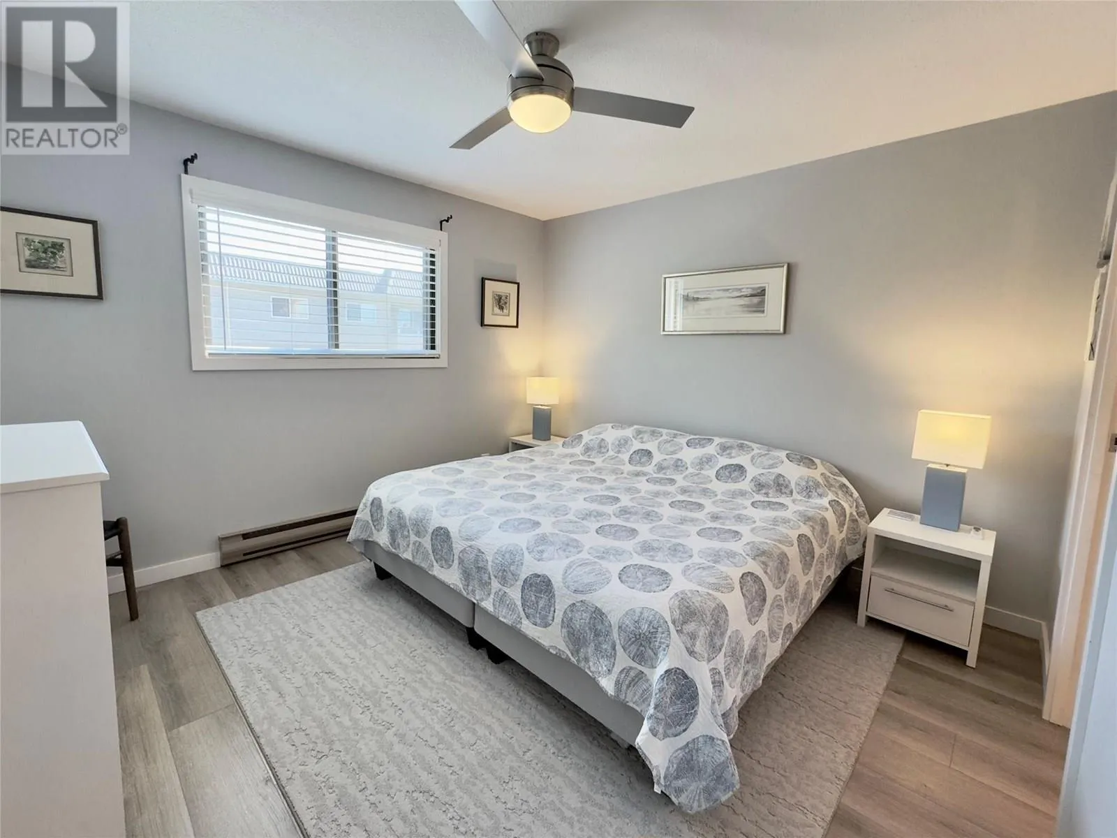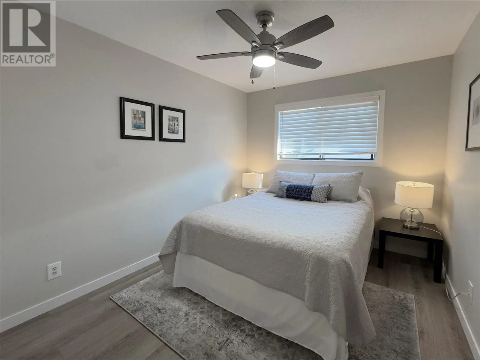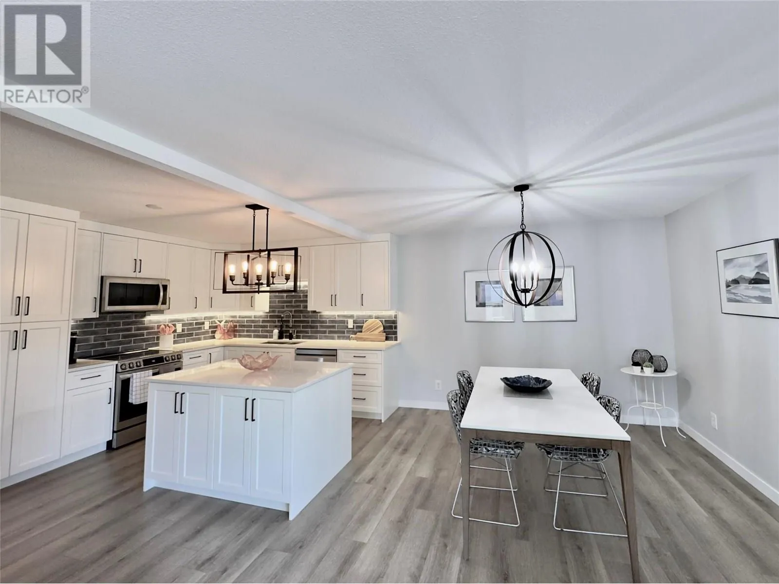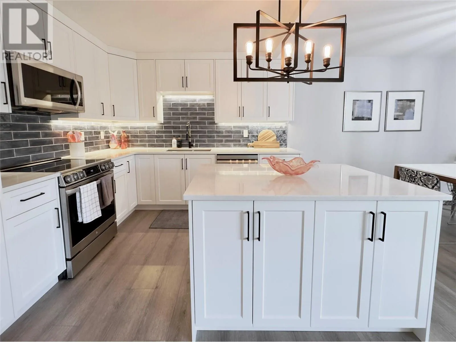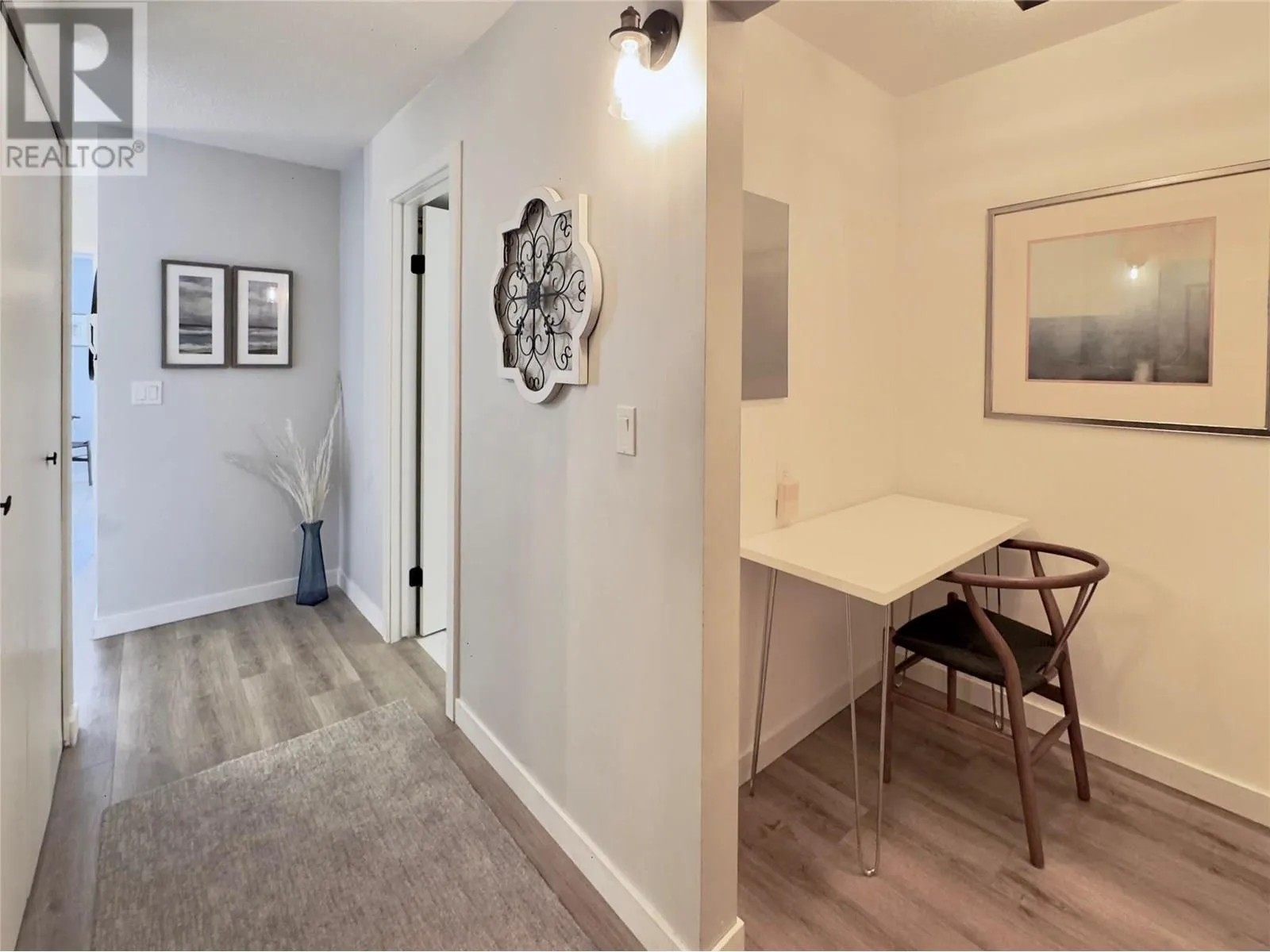 #203 â 84 Van Horne Street | Renovated Downtown Penticton Condo! Step into style and comfort with this beautifully renovated 2-bedroom, 2-bathroom condo located in the heart of downtown Pentictonâjust one block from Okanagan Lake and steps to restaurants, cafes, breweries, the KVR Trail, and the famous farmers market. This southeast-facing corner unit has been substantially updated throughout, featuring all-new flooring, fresh paint, a brand-new hot water tank, and a fully renovated kitchen with quartz countertops, white shaker-style cabinetry, under-cabinet lighting, a large island, and all new stainless steel appliances. Both bathrooms have been tastefully renovated, and the unit also offers in-suite laundry and a bonus office/storage space. The open-concept living area is filled with natural light thanks to the new window and sliding door, which lead to a wrap-around covered balconyâperfect for enjoying morning sun and views. Hallmark Manor is a well-maintained and secure 55+ complex, ideally situated in one of Pentictonâs most walkable neighborhoods. The building features secure underground parking, a recreation room, and a storage locker room with a workshop area. Small pets are allowed with strata approval. Rentals permitted with restrictions. Whether you're looking for a full-time home, a vacation getaway, or a low-maintenance investment, this condo checks all the boxes. Move-in ready and close to everything Penticton has to offer! (id:27476)