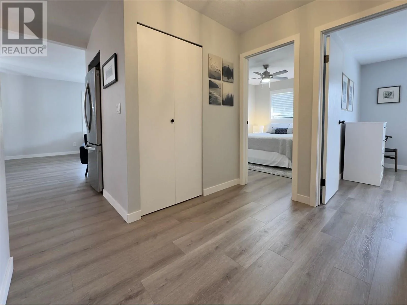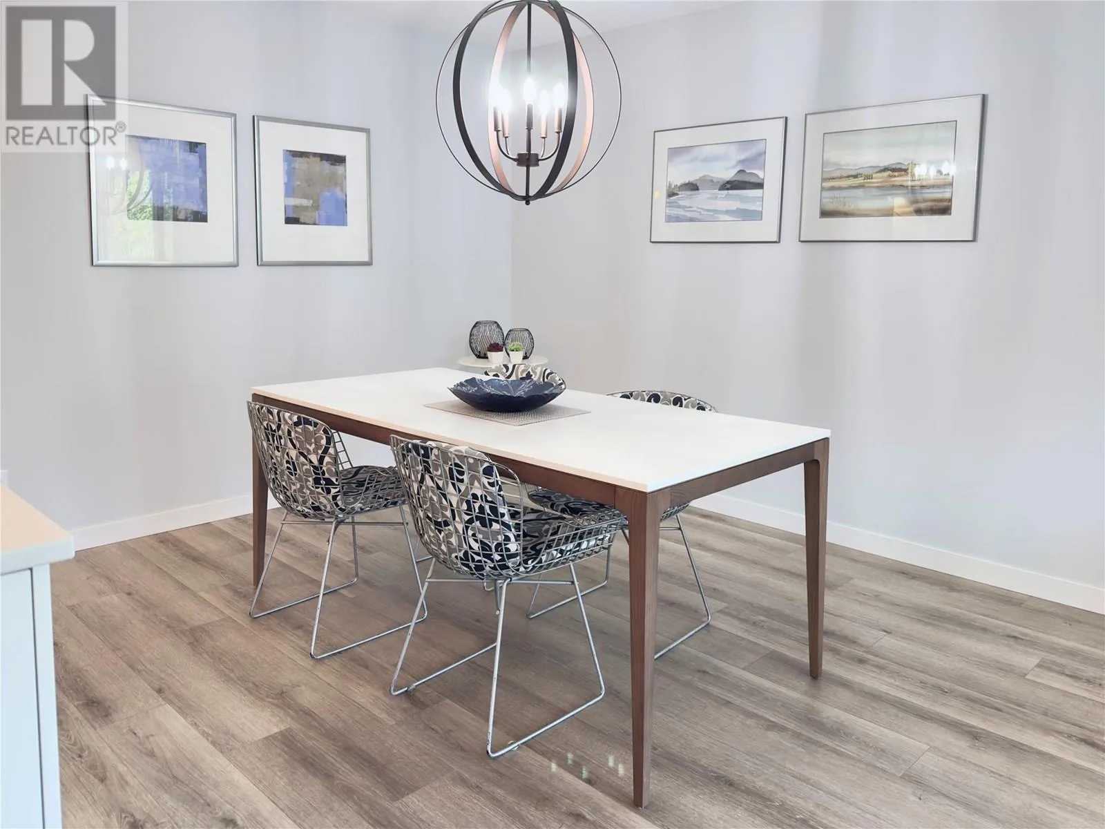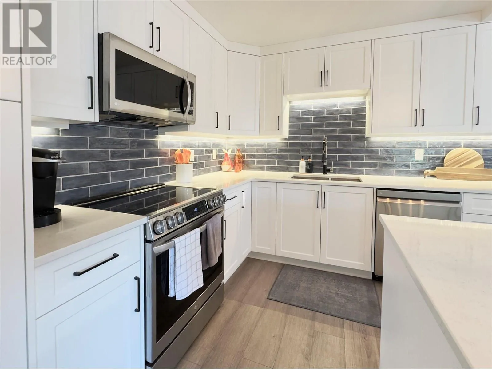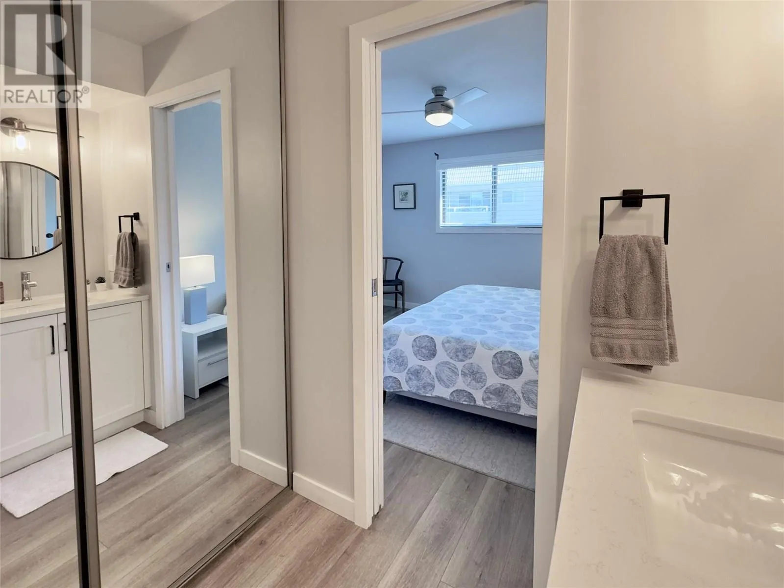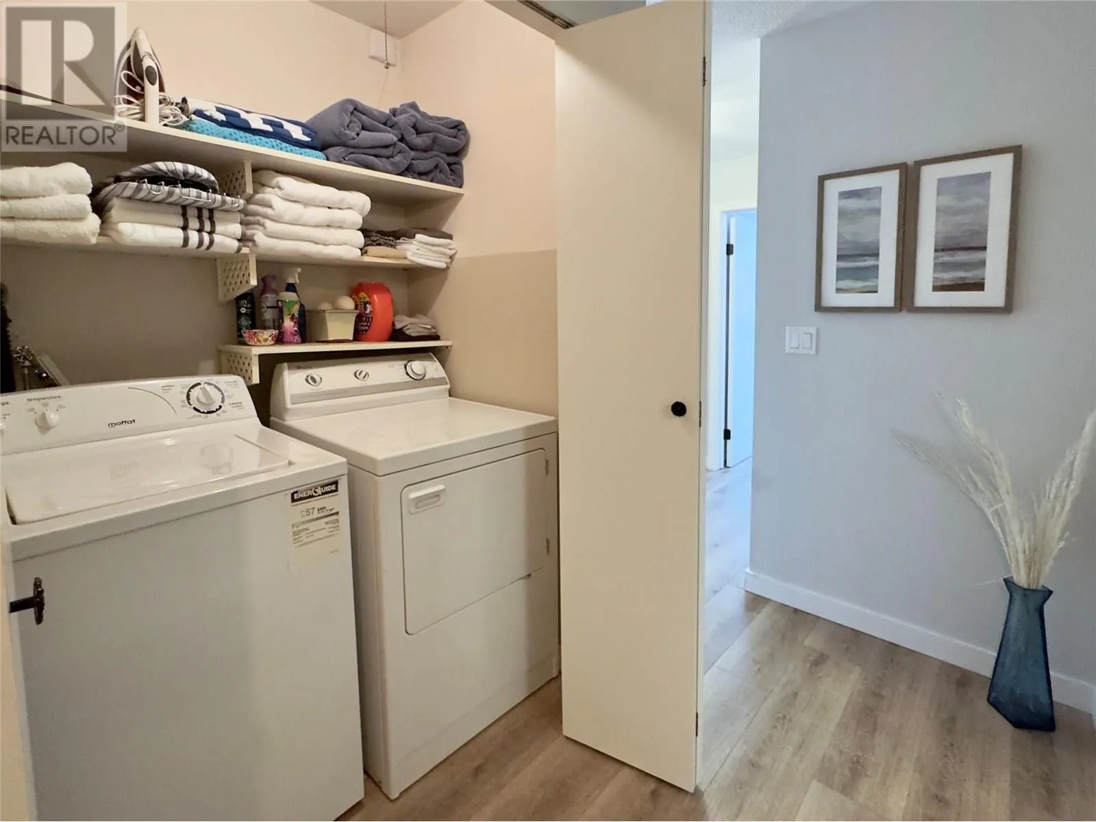 #203 â 84 Van Horne Street | Renovated Downtown Penticton Condo! Step into style and comfort with this beautifully renovated 2-bedroom, 2-bathroom condo located in the heart of downtown Pentictonâjust one block from Okanagan Lake and steps to restaurants, cafes, breweries, the KVR Trail, and the famous farmers market. This southeast-facing corner unit has been substantially updated throughout, featuring all-new flooring, fresh paint, a brand-new hot water tank, and a fully renovated kitchen with quartz countertops, white shaker-style cabinetry, under-cabinet lighting, a large island, and all new stainless steel appliances. Both bathrooms have been tastefully renovated, and the unit also offers in-suite laundry and a bonus office/storage space. The open-concept living area is filled with natural light thanks to the new window and sliding door, which lead to a wrap-around covered balconyâperfect for enjoying morning sun and views. Hallmark Manor is a well-maintained and secure 55+ complex, ideally situated in one of Pentictonâs most walkable neighborhoods. The building features secure underground parking, a recreation room, and a storage locker room with a workshop area. Small pets are allowed with strata approval. Rentals permitted with restrictions. Whether you're looking for a full-time home, a vacation getaway, or a low-maintenance investment, this condo checks all the boxes. Move-in ready and close to everything Penticton has to offer! (id:27476)