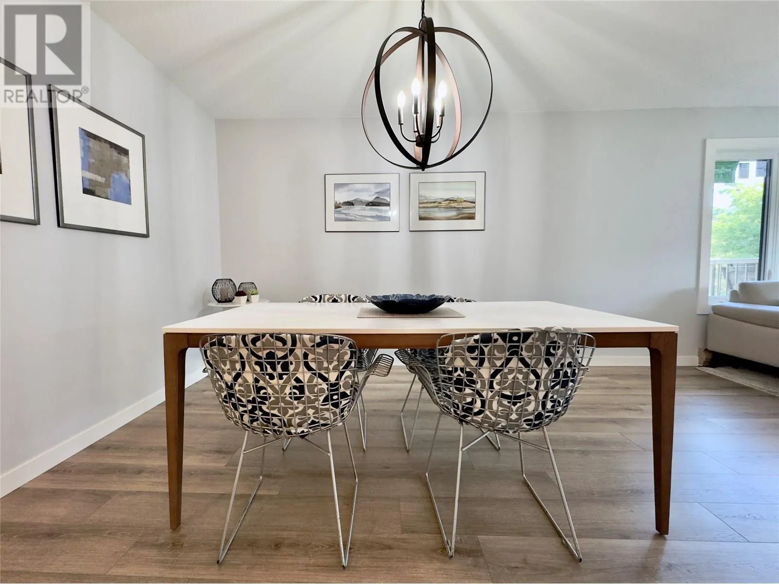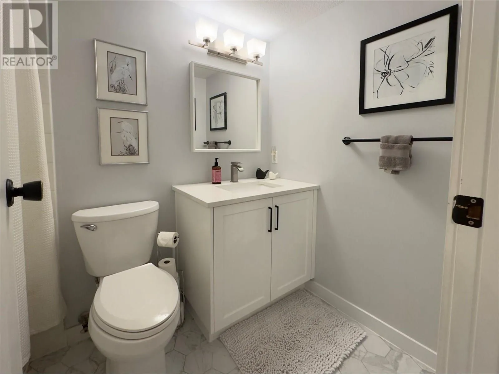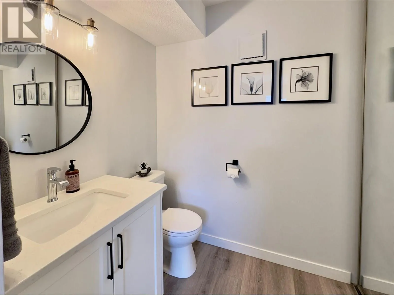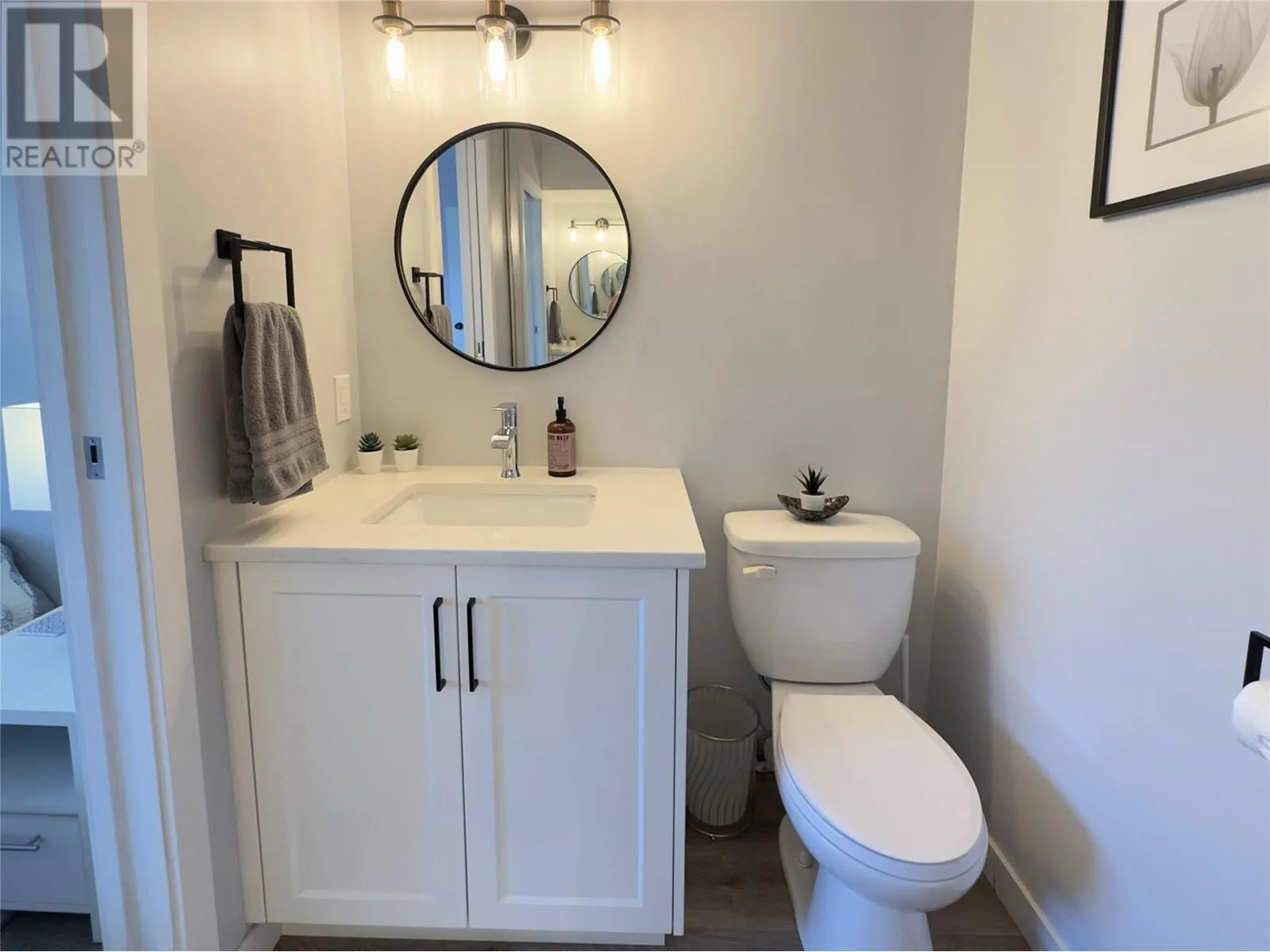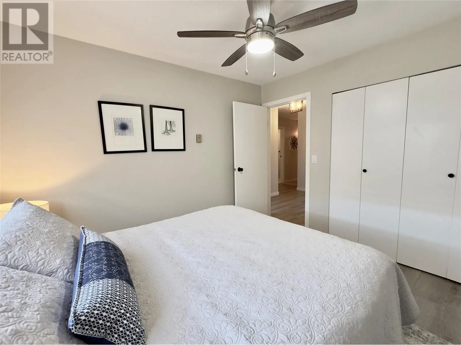#203 â 84 Van Horne Street | Renovated Downtown Penticton Condo! Step into style and comfort with this beautifully renovated 2-bedroom, 2-bathroom condo located in the heart of downtown Pentictonâjust one block from Okanagan Lake and steps to restaurants, cafes, breweries, the KVR Trail, and the famous farmers market. This southeast-facing corner unit has been substantially updated throughout, featuring all-new flooring, fresh paint, a brand-new hot water tank, and a fully renovated kitchen with quartz countertops, white shaker-style cabinetry, under-cabinet lighting, a large island, and all new stainless steel appliances. Both bathrooms have been tastefully renovated, and the unit also offers in-suite laundry and a bonus office/storage space. The open-concept living area is filled with natural light thanks to the new window and sliding door, which lead to a wrap-around covered balconyâperfect for enjoying morning sun and views. Hallmark Manor is a well-maintained and secure 55+ complex, ideally situated in one of Pentictonâs most walkable neighborhoods. The building features secure underground parking, a recreation room, and a storage locker room with a workshop area. Small pets are allowed with strata approval. Rentals permitted with restrictions. Whether you're looking for a full-time home, a vacation getaway, or a low-maintenance investment, this condo checks all the boxes. Move-in ready and close to everything Penticton has to offer! (id:27476)