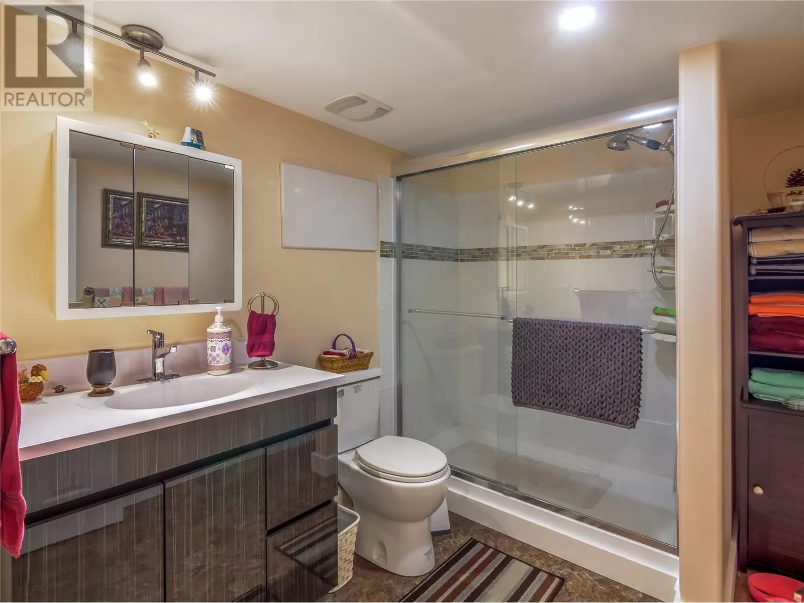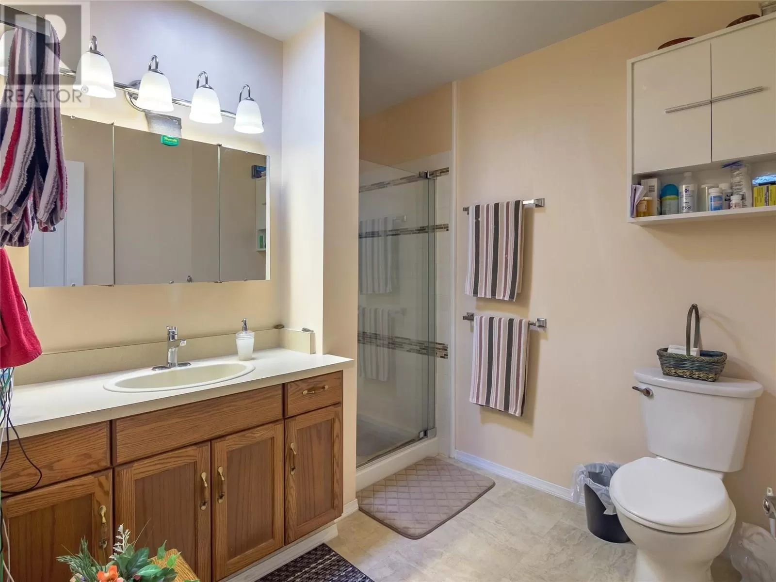 Attention Retires! Welcome to Lantern Court, a well run 55+ complex designed with seniors in mind. Walking distance to shops and amenities like Cherry Lane Malls, London Drugs, restaurants and more. This South facing unit has convenient one level living with the added bonus of the basement for storage and added living. The main floor is 1057sqft, as you enter the front door there is a spacious and bright living room and dining room, with laminate floors, large windows, and plenty of room for entertaining. The well laid out kitchen features plenty of cabinet space, a great layout, and faces the back yard of the home complete with a large composite deck, and a covered patio space. There is a good sixed second bedroom and guest bathroom, plus the spacious primary bedroom with walk in closet and full ensuite bathroom. Downstairs youâll find another 982sqft finished with a large rec room, tons of storage, plenty if space for visiting family or hobbies and a three piece bathroom. Enjoy the low maintenance convenience this home offers while not compromising on space! (id:27476)