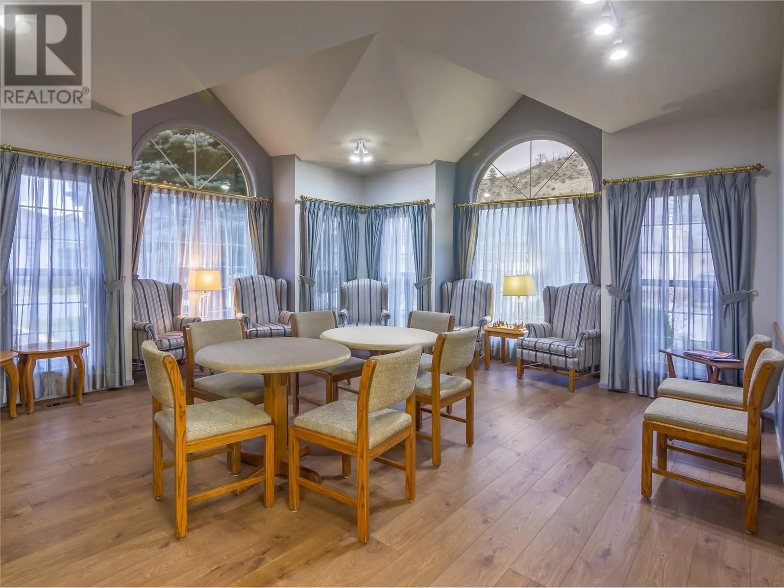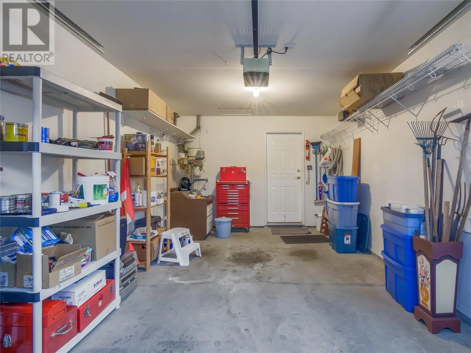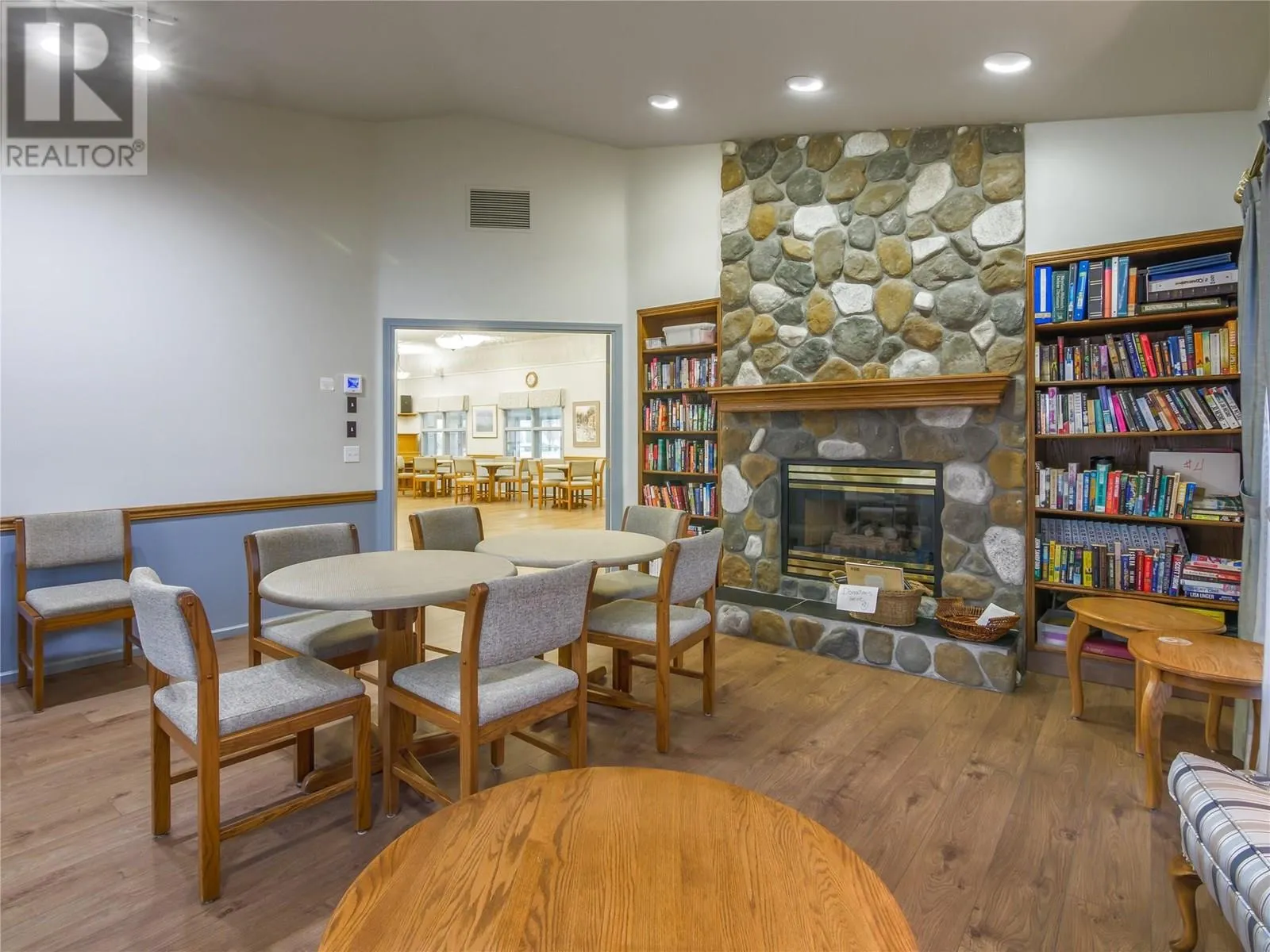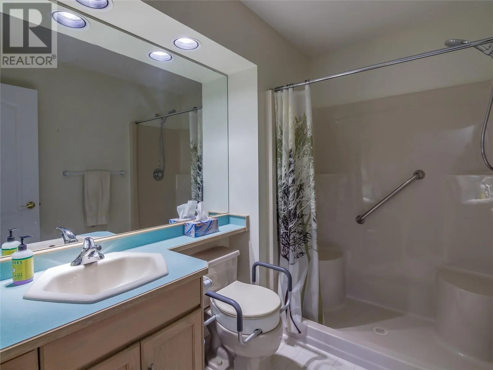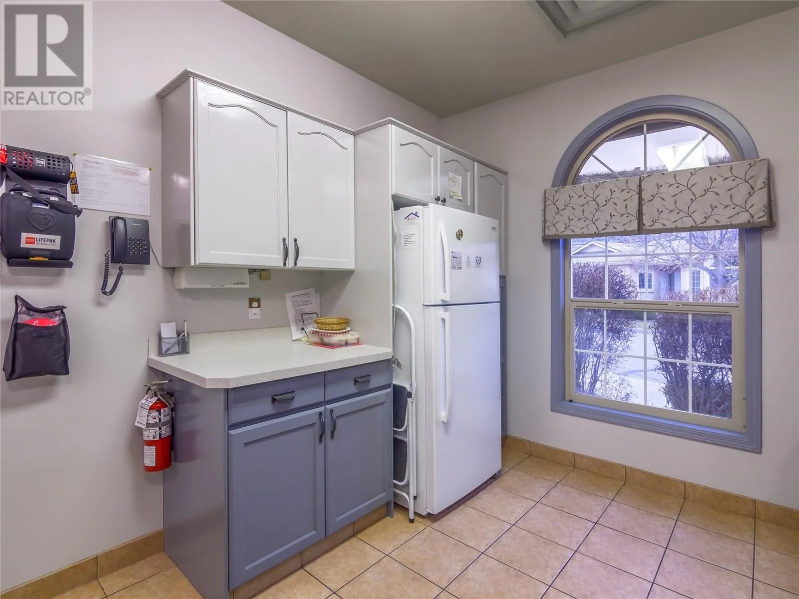 Welcome to Sandbridge, a coveted gated community with stunning waterways and landscaping, beautiful club house with a pool, and a premium location near Skaha Lake and the seniors center. This lovely 1307sqft rancher style home is move in ready. As you enter the front foyer to your right is the large laundry room with extra storage space and garage access, a large closet and welcoming space. The well appointed living and dining room features easy care laminate floors, a gas fireplace, tons of windows and natural light and room for all your furniture. This home has had the kitchen redone and a window opened up between the spaces creating a more modern layout, more natural light and a great space for entertaining. There are beautiful shaker style cabinets in a warm wood with contrasting counters and stainless steel appliances. The kitchen has space for a table or island or more cabinets, and it opens to the very private back North facing patio with no homes looking back at it. There is a large guest bedroom and bathroom and a very spacious primary suite with walk in closet and large ensuite bathroom. The main areas have been freshly painted, and the poly b has been removed from the home, just move in and enjoy this lovely home in a friendly and well run complex. A short walk will take you to shops, trails, walkways, the beach and parks, a pub, and so much more. (id:27476)