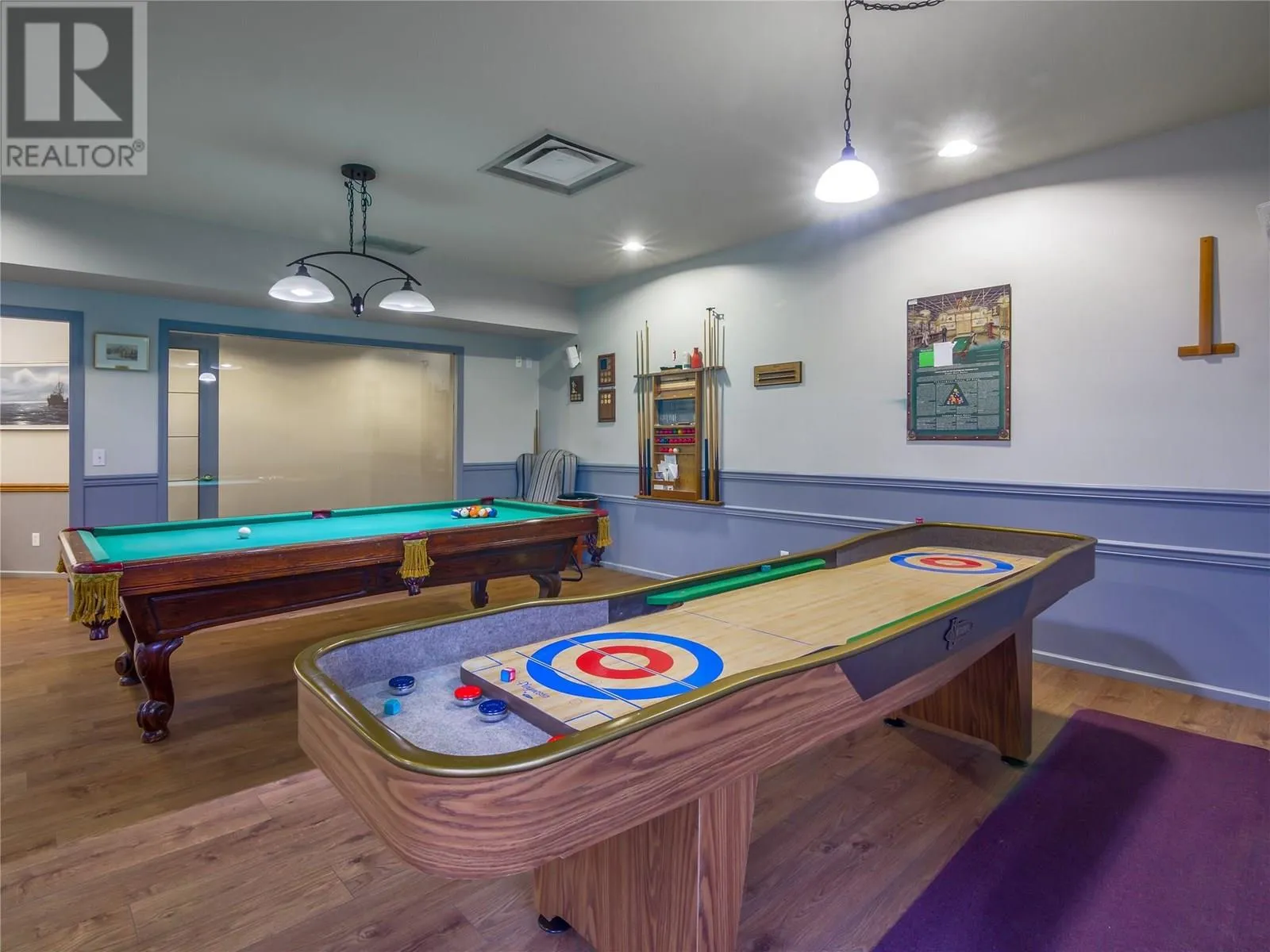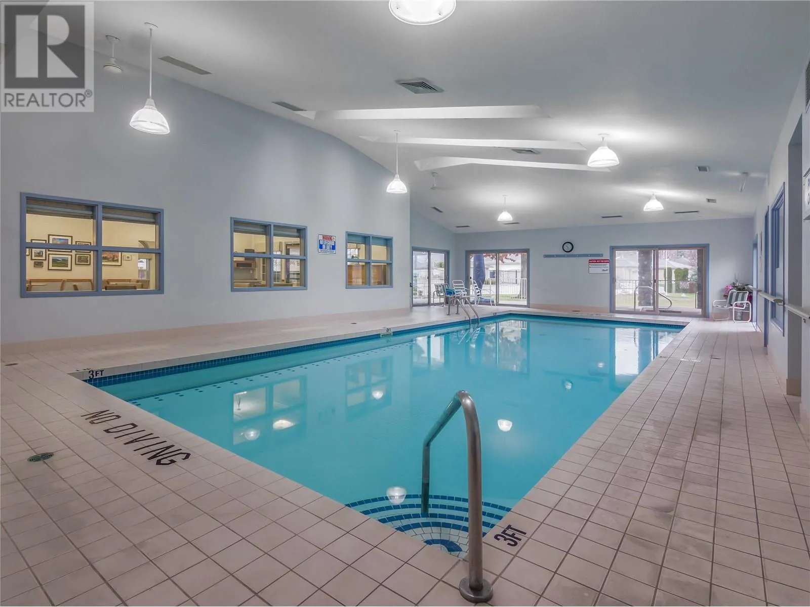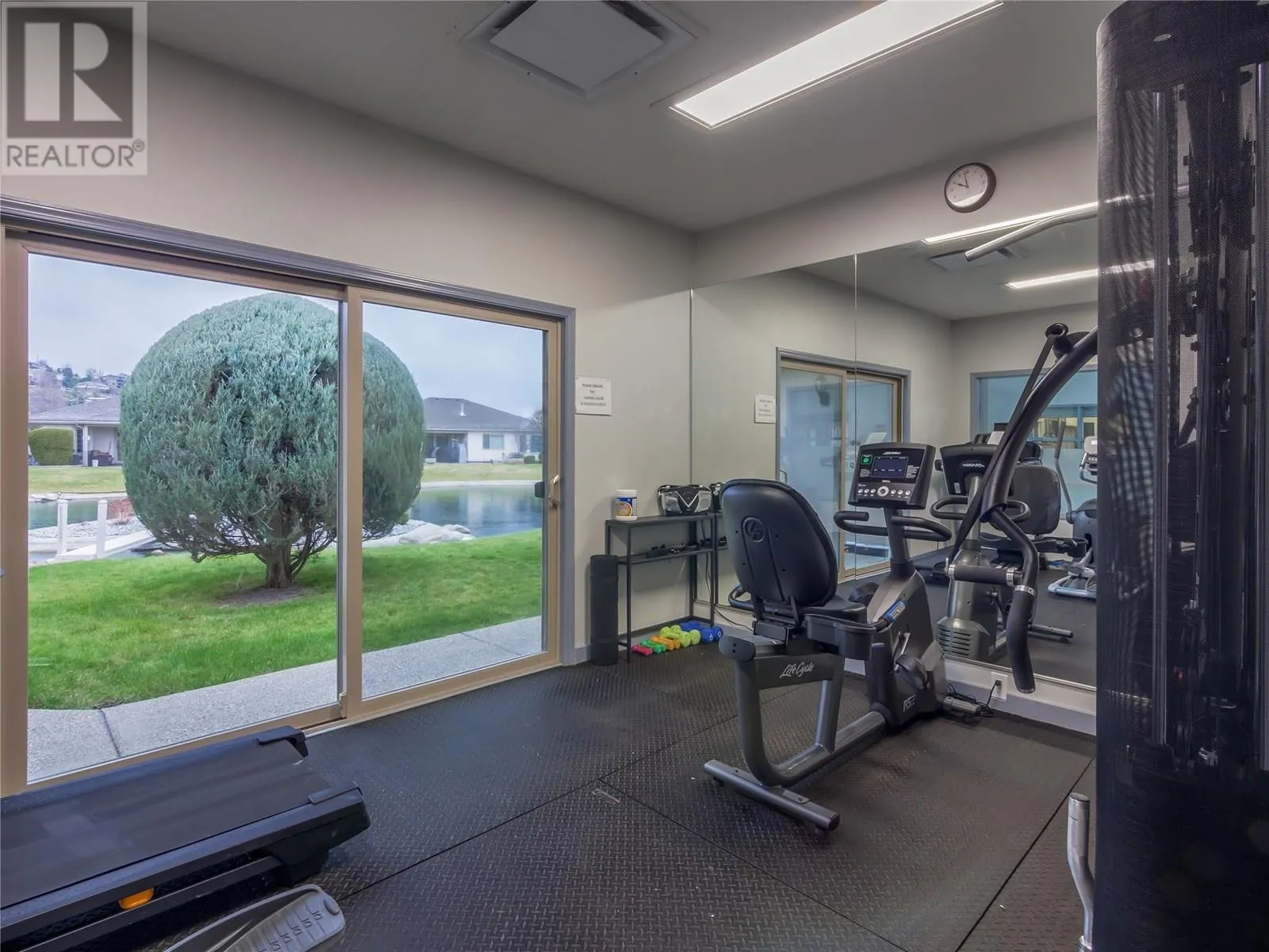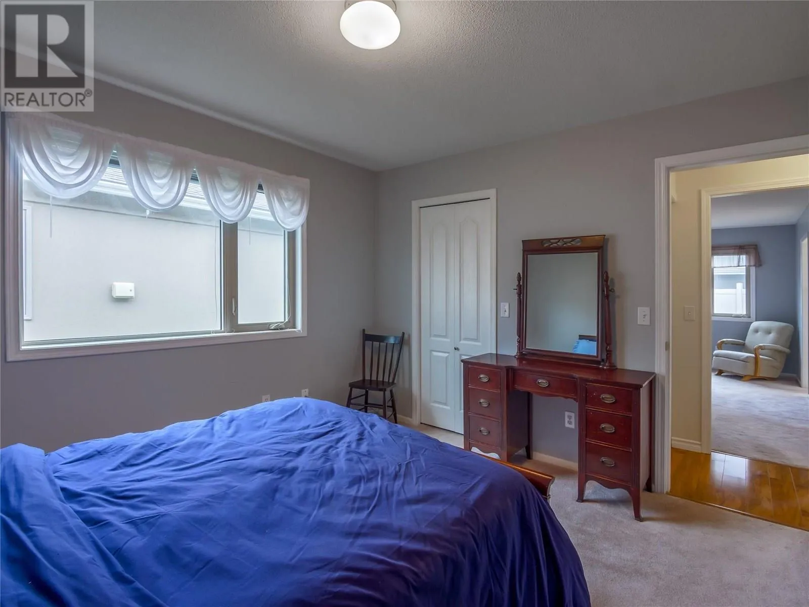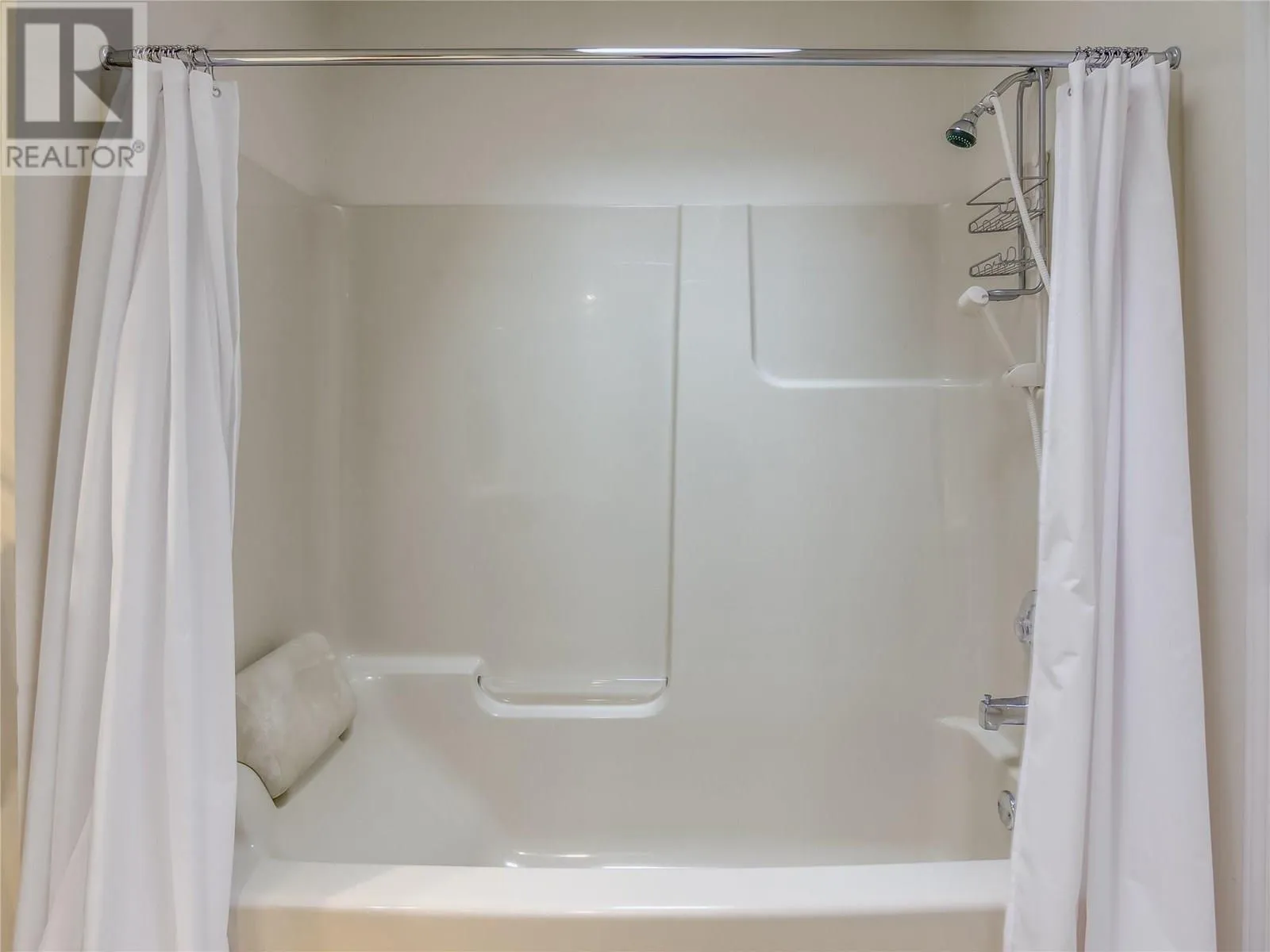 Welcome to Sandbridge, a coveted gated community with stunning waterways and landscaping, beautiful club house with a pool, and a premium location near Skaha Lake and the seniors center. This lovely 1307sqft rancher style home is move in ready. As you enter the front foyer to your right is the large laundry room with extra storage space and garage access, a large closet and welcoming space. The well appointed living and dining room features easy care laminate floors, a gas fireplace, tons of windows and natural light and room for all your furniture. This home has had the kitchen redone and a window opened up between the spaces creating a more modern layout, more natural light and a great space for entertaining. There are beautiful shaker style cabinets in a warm wood with contrasting counters and stainless steel appliances. The kitchen has space for a table or island or more cabinets, and it opens to the very private back North facing patio with no homes looking back at it. There is a large guest bedroom and bathroom and a very spacious primary suite with walk in closet and large ensuite bathroom. The main areas have been freshly painted, and the poly b has been removed from the home, just move in and enjoy this lovely home in a friendly and well run complex. A short walk will take you to shops, trails, walkways, the beach and parks, a pub, and so much more. (id:27476)