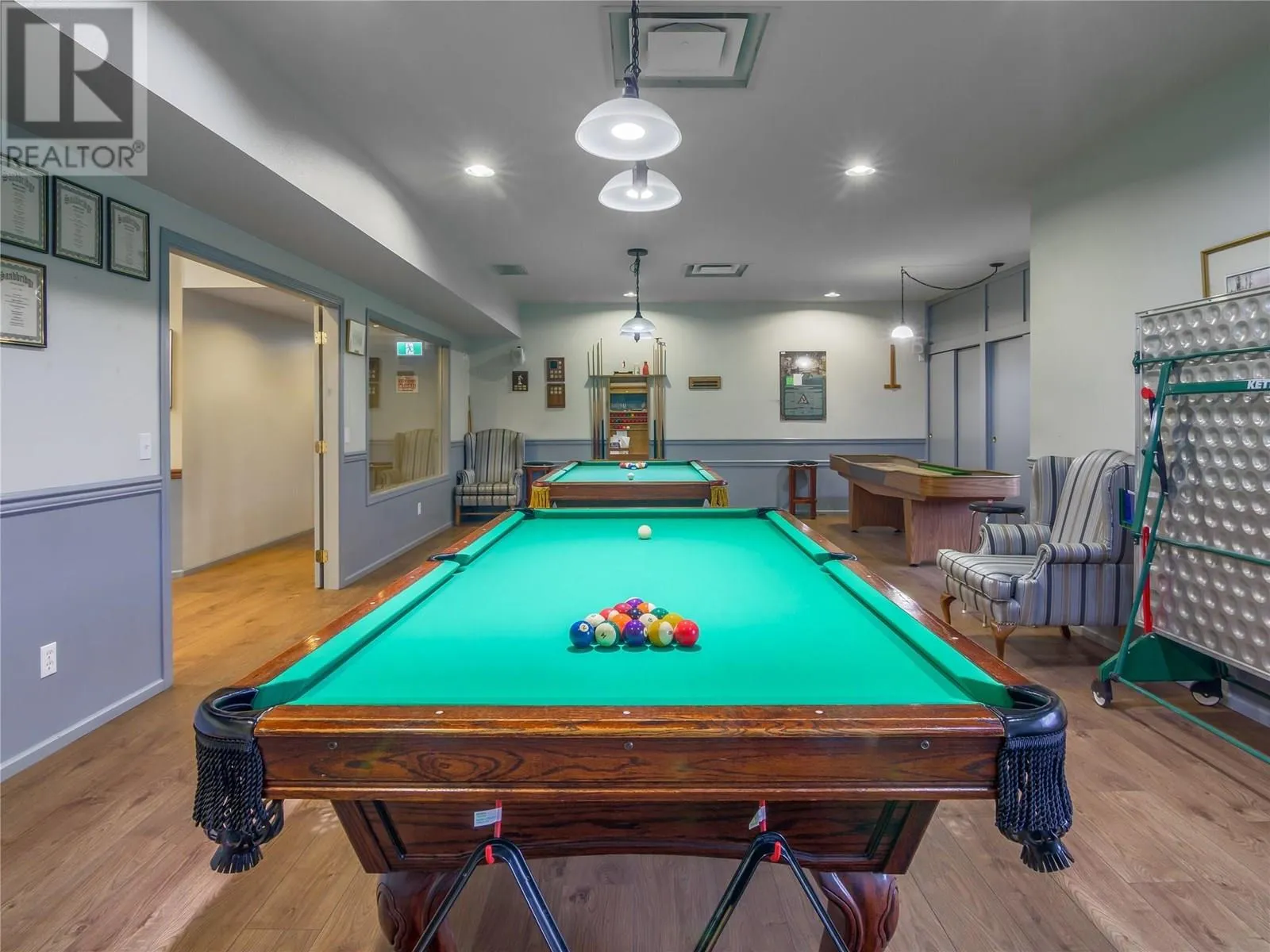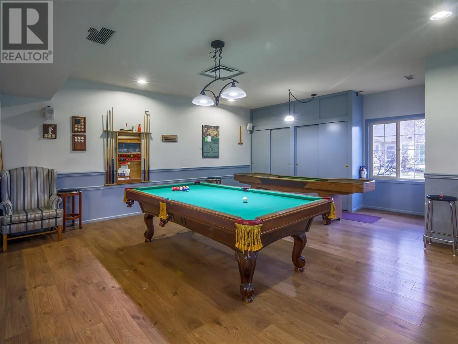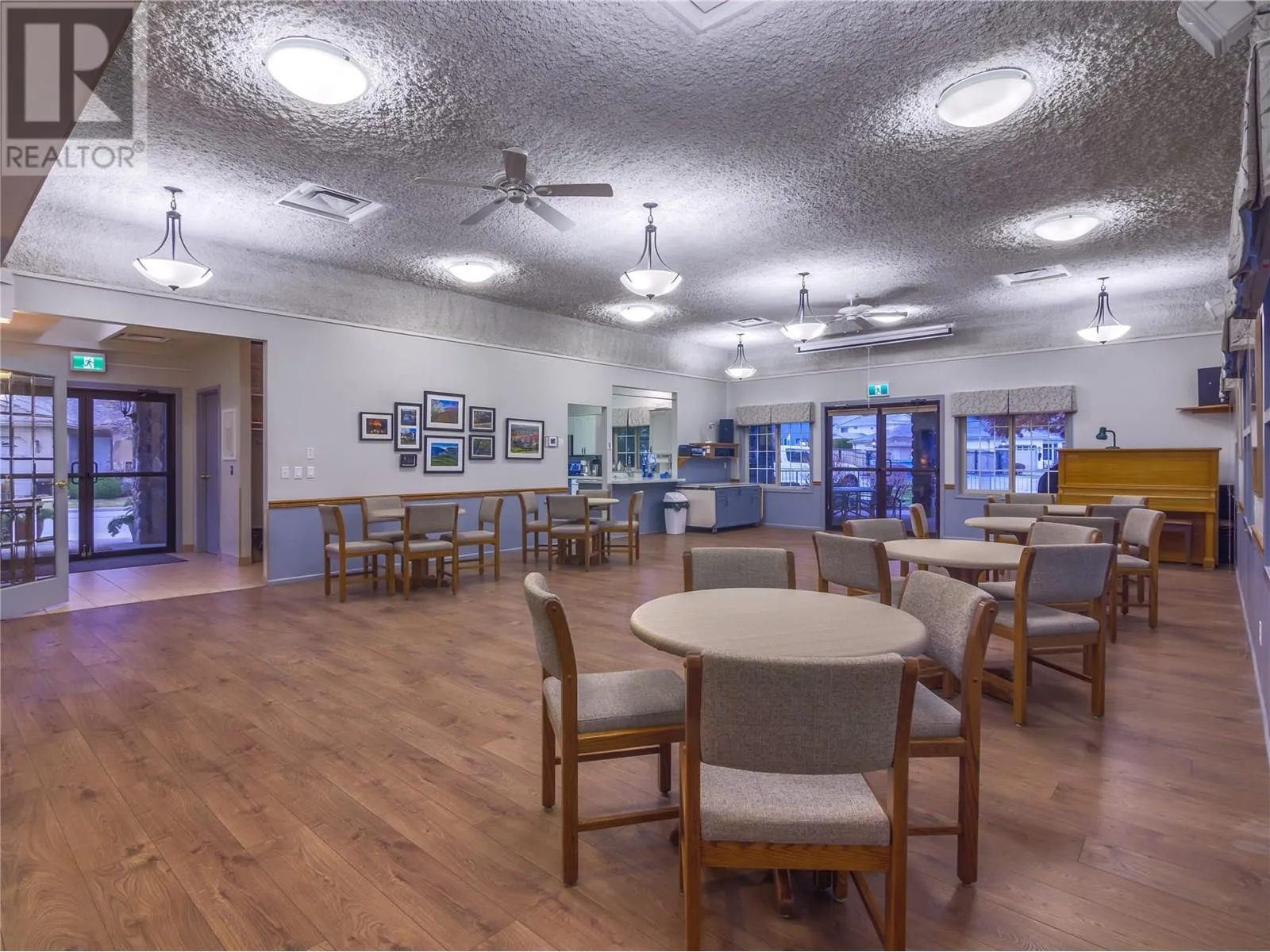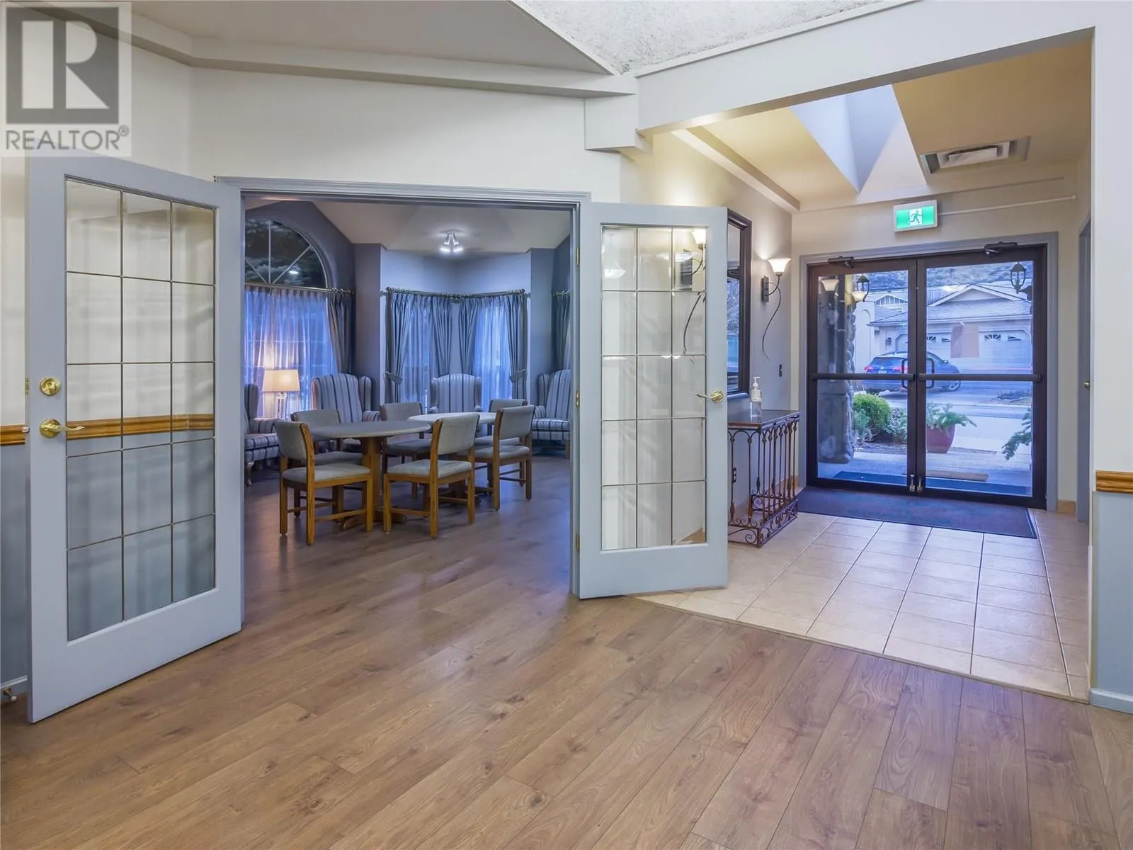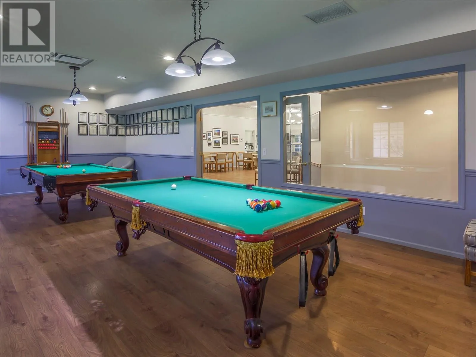 Welcome to Sandbridge, a coveted gated community with stunning waterways and landscaping, beautiful club house with a pool, and a premium location near Skaha Lake and the seniors center. This lovely 1307sqft rancher style home is move in ready. As you enter the front foyer to your right is the large laundry room with extra storage space and garage access, a large closet and welcoming space. The well appointed living and dining room features easy care laminate floors, a gas fireplace, tons of windows and natural light and room for all your furniture. This home has had the kitchen redone and a window opened up between the spaces creating a more modern layout, more natural light and a great space for entertaining. There are beautiful shaker style cabinets in a warm wood with contrasting counters and stainless steel appliances. The kitchen has space for a table or island or more cabinets, and it opens to the very private back North facing patio with no homes looking back at it. There is a large guest bedroom and bathroom and a very spacious primary suite with walk in closet and large ensuite bathroom. The main areas have been freshly painted, and the poly b has been removed from the home, just move in and enjoy this lovely home in a friendly and well run complex. A short walk will take you to shops, trails, walkways, the beach and parks, a pub, and so much more. (id:27476)