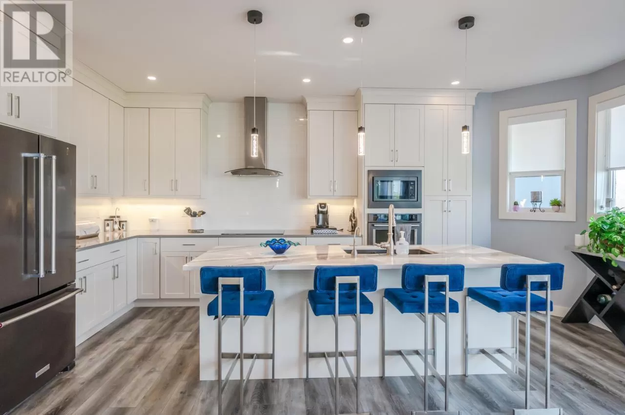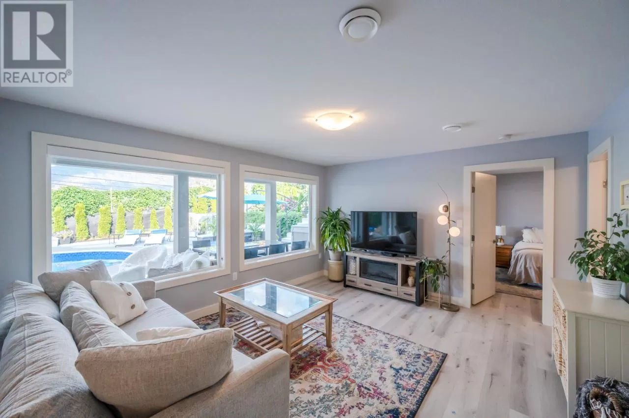 Beautiful Lakeview home in a very desirable neighbourhood. 4 bed +Den/ 5 bathroom home on the south end of Penticton overlooking Skaha Lake and close to one of Canada's finest Lake, beach and parks. Main floor boasts 2 large bedrooms each with own ensuite, master has a soaker tub and walk in closet. Open concept kitchen dining and living area, Quartz countertops throughout the house. Heated double garage, central vac, double blackout blinds. Relax on the deck looking out to Skaha Lake and mountain views. Lower basement level main area has a guest bedroom bathroom and den, utility room and large storage area. BONUS! is a well laid out 1 bedroom 1 bathroom legal suite, open kitchen and own laundry with separate entrance out to the backyard Oasis. Take a refreshing dip in the in ground 4' deep kidney shaped salt water pool or ease into the hot tub to unwind. This home is what living in Penticton is all about! Call Stu Trimble 250-809-5843 or your other favourite agent. (all measurements to be verified by buyer or their agent if important) (id:27476)
