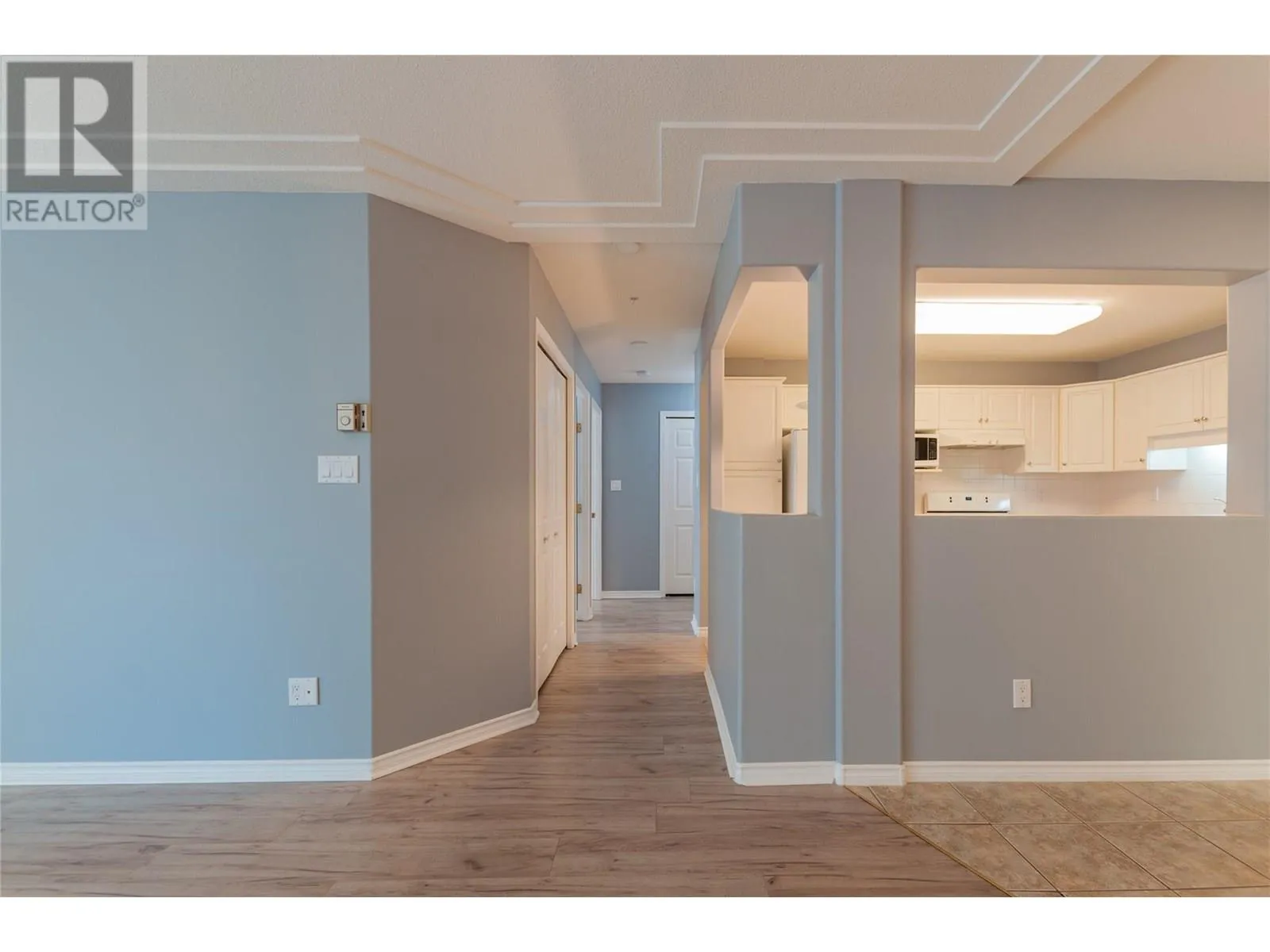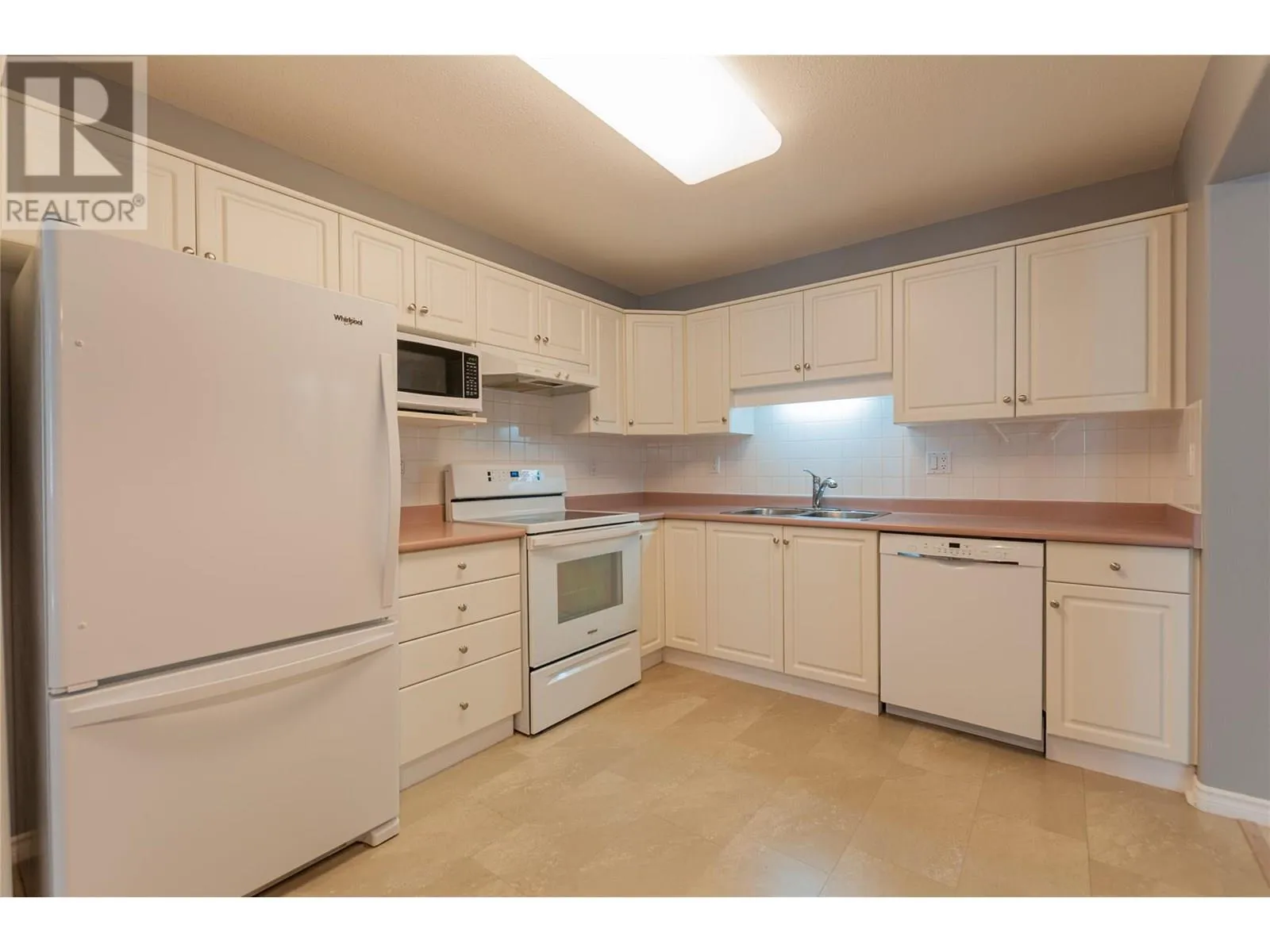 CLICK TO VIEW VIDEO: Bright, fresh, and move-in ready! Welcome to Unit 305-2265 Atkinson Street at Cherry Lane Towers, Pentictonâs premier 55+ retirement living community. This inviting 2 bed, 2 bath condo offers 1,182 sq ft of elegant, carpet-free living with tile and vinyl flooring throughout. Step into a spacious, sunlit living area flowing seamlessly onto your balcony showcasing Southwest and Northwest Okanagan Valley views. The modern kitchen is thoughtfully equipped with Whirlpool and Bosch appliances, sleek flooring, and ample cabinet space. Your spacious primary suite comfortably fits your full bedroom suite furnishings, complemented by dual closets and an ensuite bath. In-unit utility room, full-size laundry, library across the hall, and proximity to elevators enhance everyday convenience. Perfectly located near bike lanes, transit routes, and Cherry Lane Mall. Simplified living awaits. (id:27476)
