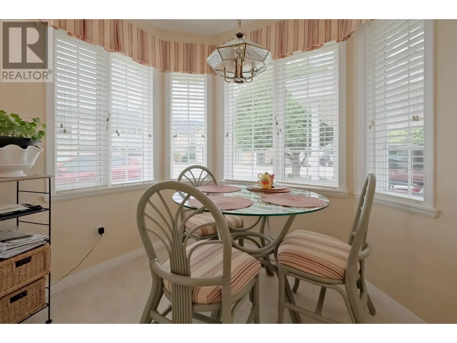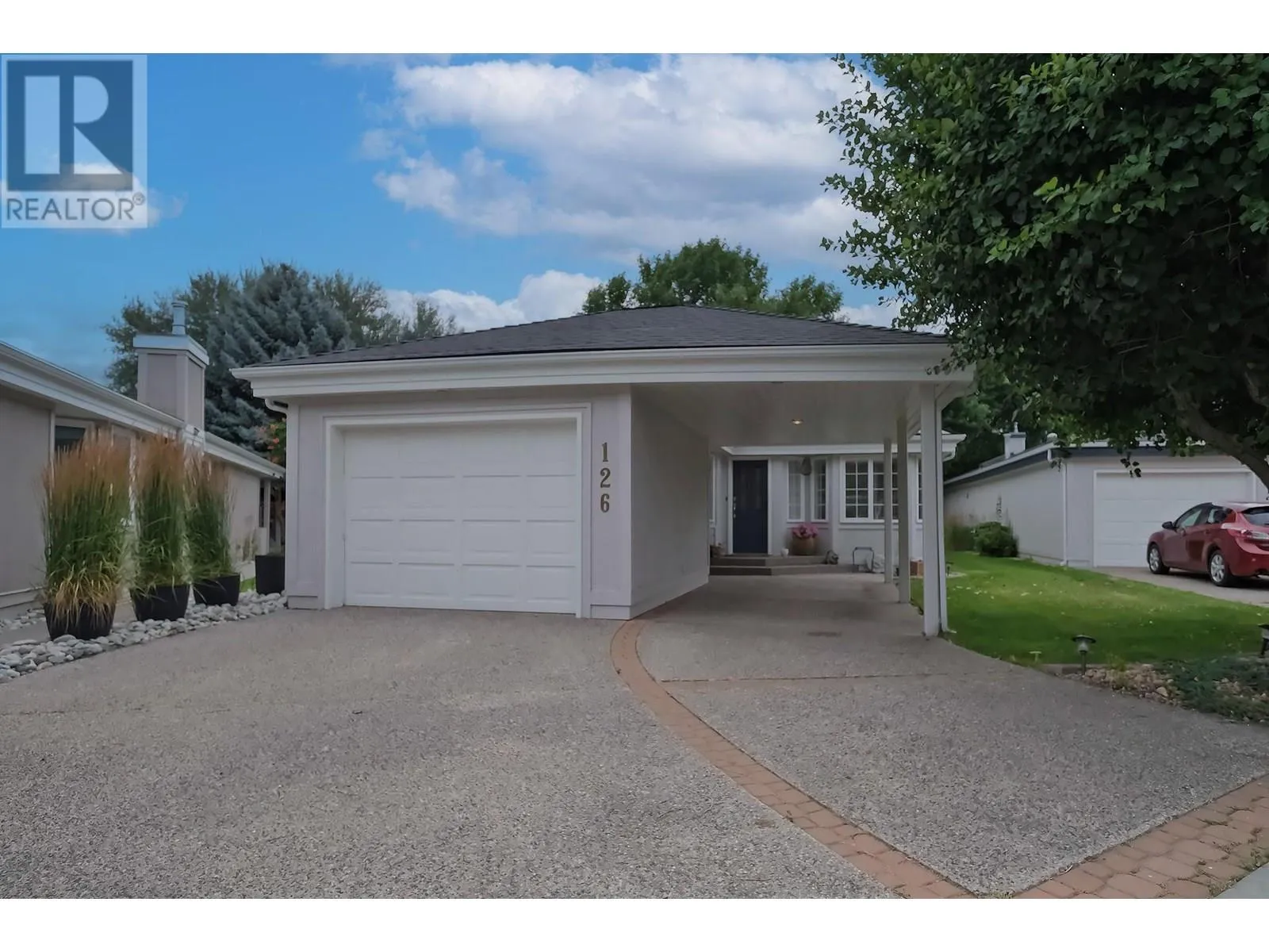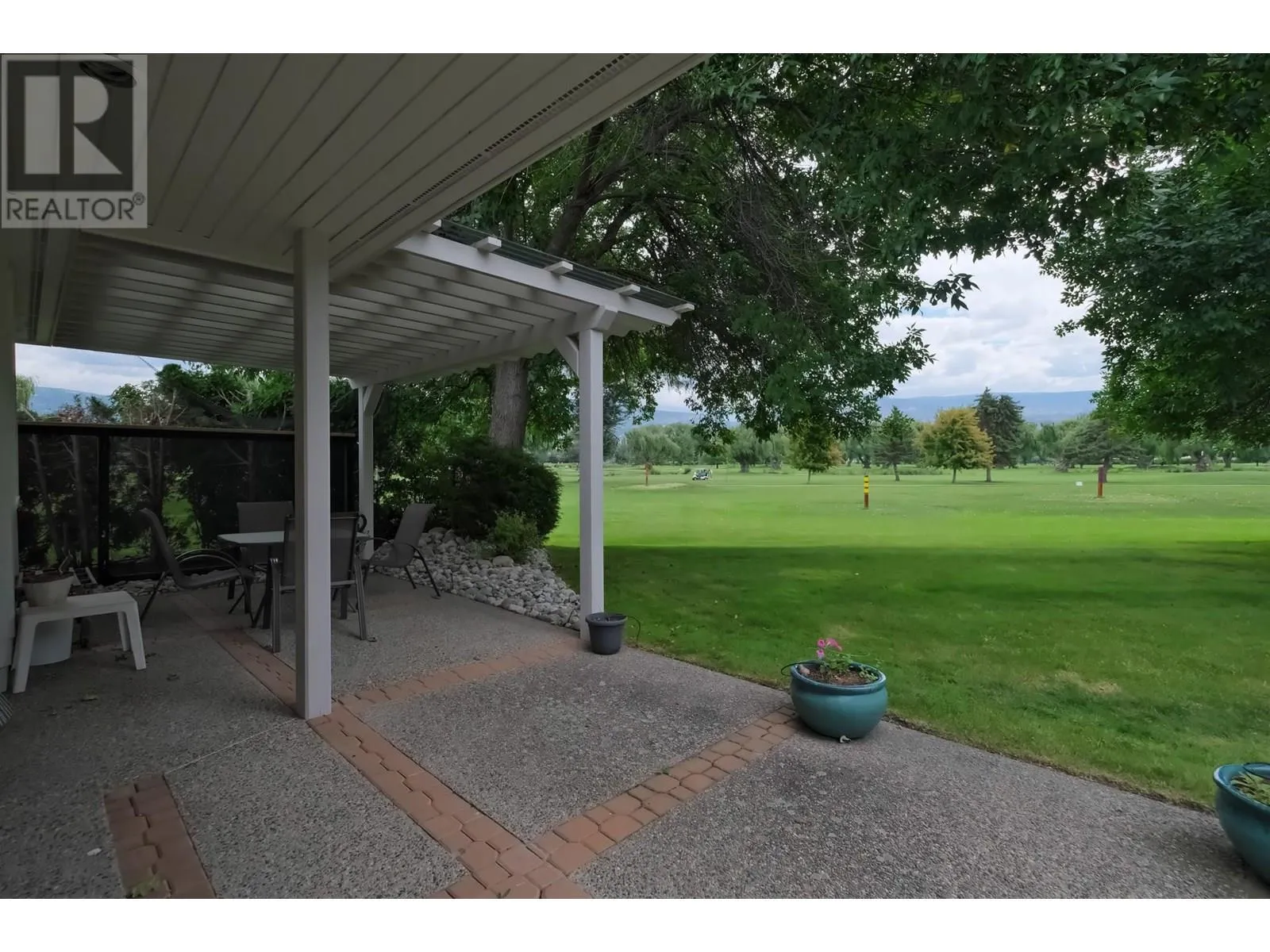 A golferâs dream; Live right on the golf course in a lovely one level rancher with views of the mountains and golfers at play. This fabulous floor plan offers 2 spacious bedrooms on opposite ends of the home, 2 full bathrooms, a large living and dining area with a corner gas fireplace and a great kitchen with breakfast nook. The back yard faces east providing a comfortable place to enjoy the afternoons during the Okanagan Summers. This home has been well maintained, the A/C has been updated, and a high efficiency furnace services the home at reasonable rates. There is also a good sized laundry room and storage space. Plenty of parking available with the single car garage, a carport and space for 2 more vehicles in the driveway. Fairway Village is a well-run Bare land Strata with reasonable fees. Shopping, recreation, and dining very close. Hiking / biking trails within walking distance. Age 55+, and one small pet welcome. Measurements taken from the iGuide. (id:27476)
