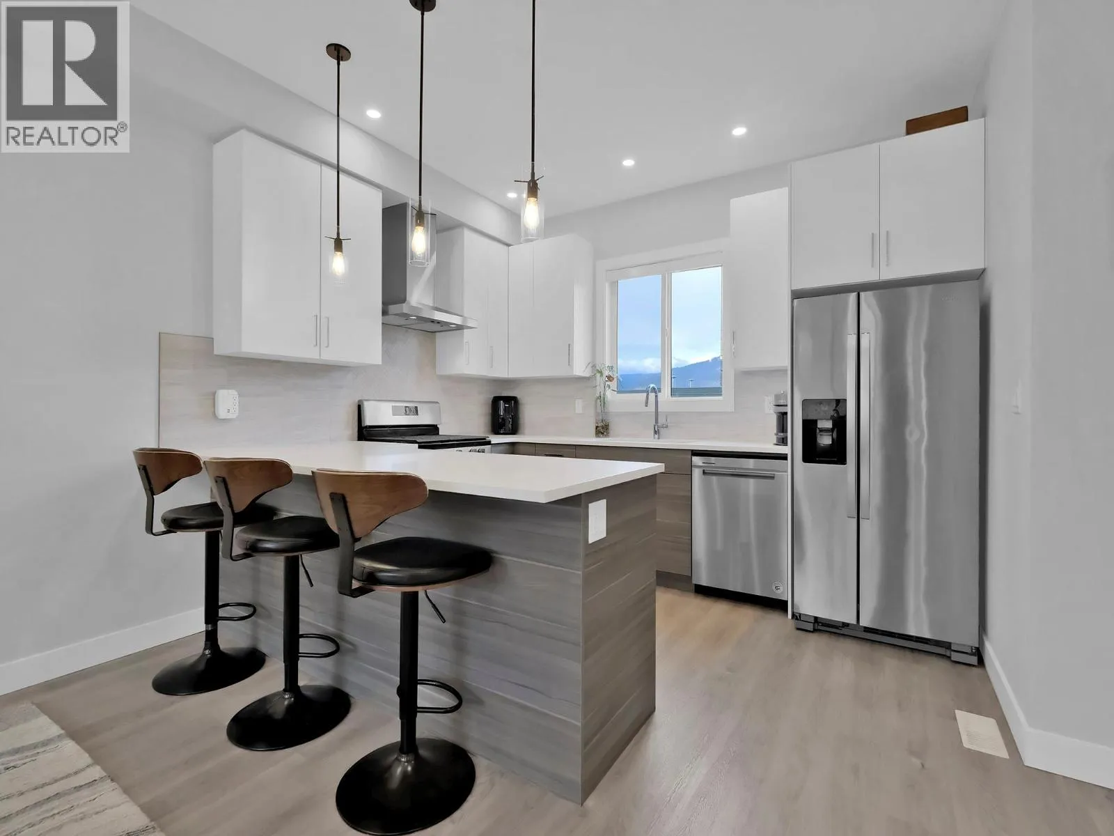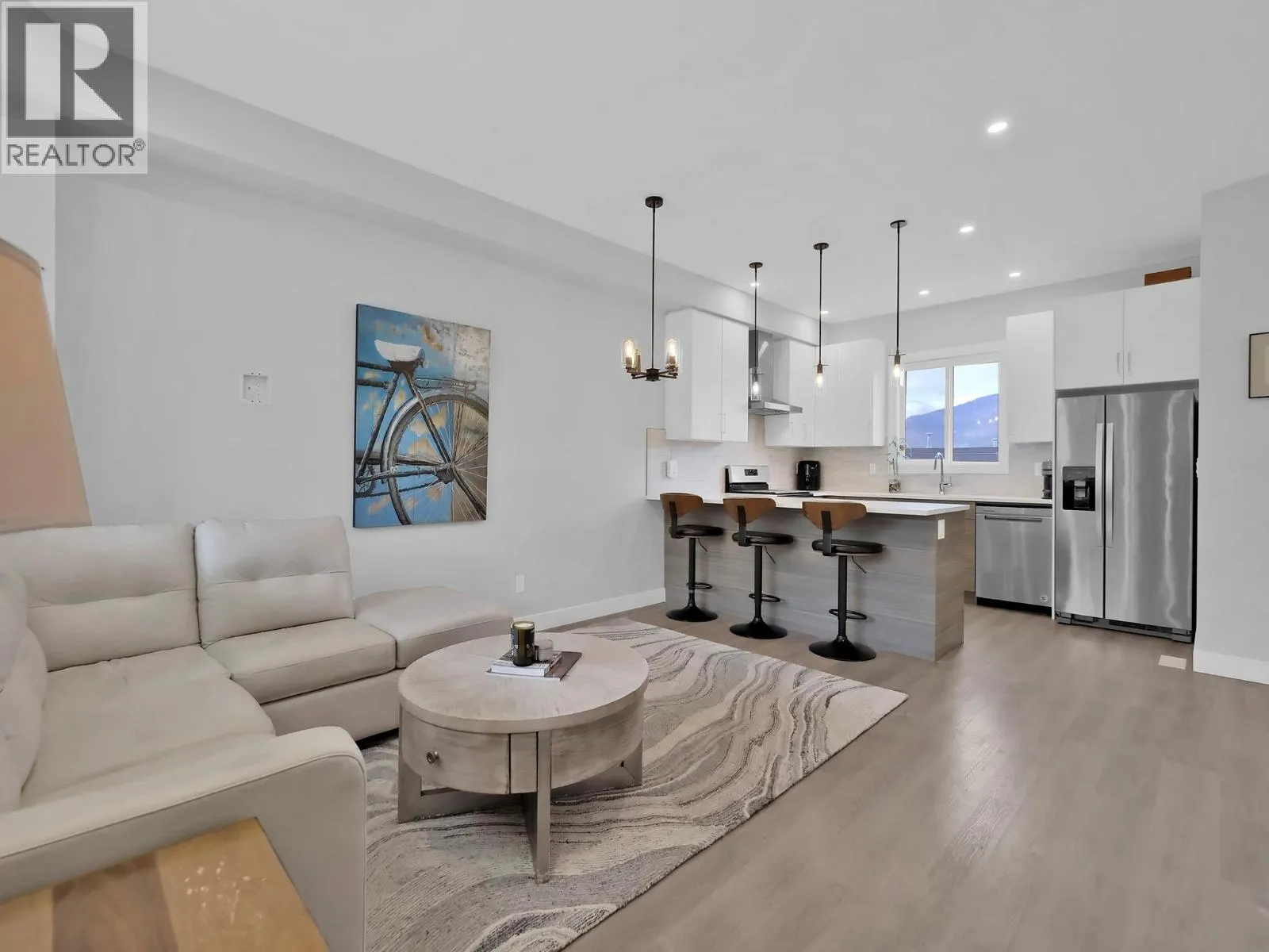Trendy Corner Townhome Steps from Downtown Penticton! Whether you're a first-time buyer, someone looking to downsize, or seeking a smart investment, this bright & beautifully maintained 3-bedroom, 3-bathroom corner townhome offers the perfect blend of lifestyle and location. Tucked away in a quiet, well-kept development just steps from Okanagan Lake, the KVR Trail, craft breweries, the farmers market, & downtown shops and restaurants - this is urban living without the noise. The main level welcomes you with a sun-filled, open-concept living space, perfect for entertaining or relaxing. The kitchen is a standout feature with a gas stove, stylish cabinetry, and a sit-up breakfast bar ideal for casual meals and hosting friends. A convenient 2-piece powder room completes this level. Upstairs, the spacious primary bedroom includes a walk-in closet, a 3-piece ensuite, & a peek-a-boo lake view. Two more bedrooms, a full bathroom, & laundry round out the upper floor. The lower level features a versatile rec room with direct access to your private, fully fenced patio space, complete with gas BBQ hookup for summer evenings. Pet-friendly, no age restrictions, low strata fees ($210/month), and the confidence of remaining home warranty make this townhome a rare find. Total sq.ft. calculations are based on the exterior dimensions of the building at each floor level & include all interior walls & must be verified by the buyer if deemed important. (id:27476)