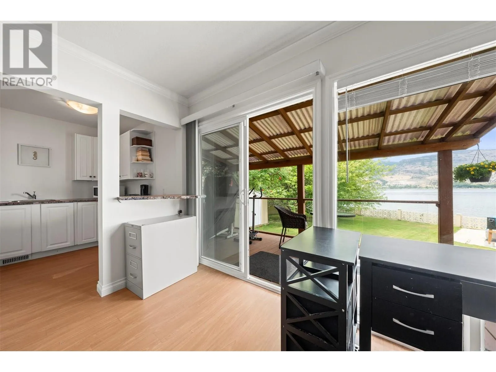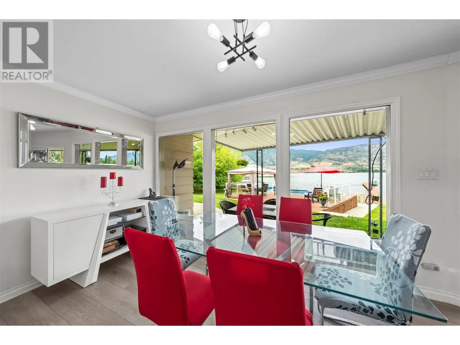 One of a kind massive nearly half Acre waterfront lot zoned R4-L Small-Scale Multi-Unit Residential - Large on exclusive Skaha Lake with approx 123' of waterfront and a dock! This west facing lot is flat, serviced with underground lines, and in the perfect location which is close enough to walk to a waterfront park, public beach, marina, dining, and just far enough away to get away from it all. The 2389 sq ft mid century modern rancher is updated and has 11' vaulted ceilings in the spacious kitchen, massive windows bringing in all the natural light you crave and panoramic lake/mountain/beach views from nearly every room. You will love the private patio courtyard in the front and covered deck with bbq station in the back. There is suite potential as primary bedroom has its own wet bar with plenty of space, ensuite, sitting area, separate entrance, and covered deck with lake view. There is ample parking whatever your needs on this beautiful large lot and a detached triple car garage for all your toys, it has development/subdivision potential and a foreshore permit with the potential to extend the current dock to a 120' dock! Secure, gated access, fully fenced, move in ready, perfect for any developer or those looking for a generational or long term holding property. One of the last large waterfront lots left and in one of the most desirable locations in the South Okanagan, this is your chance! (id:27476)