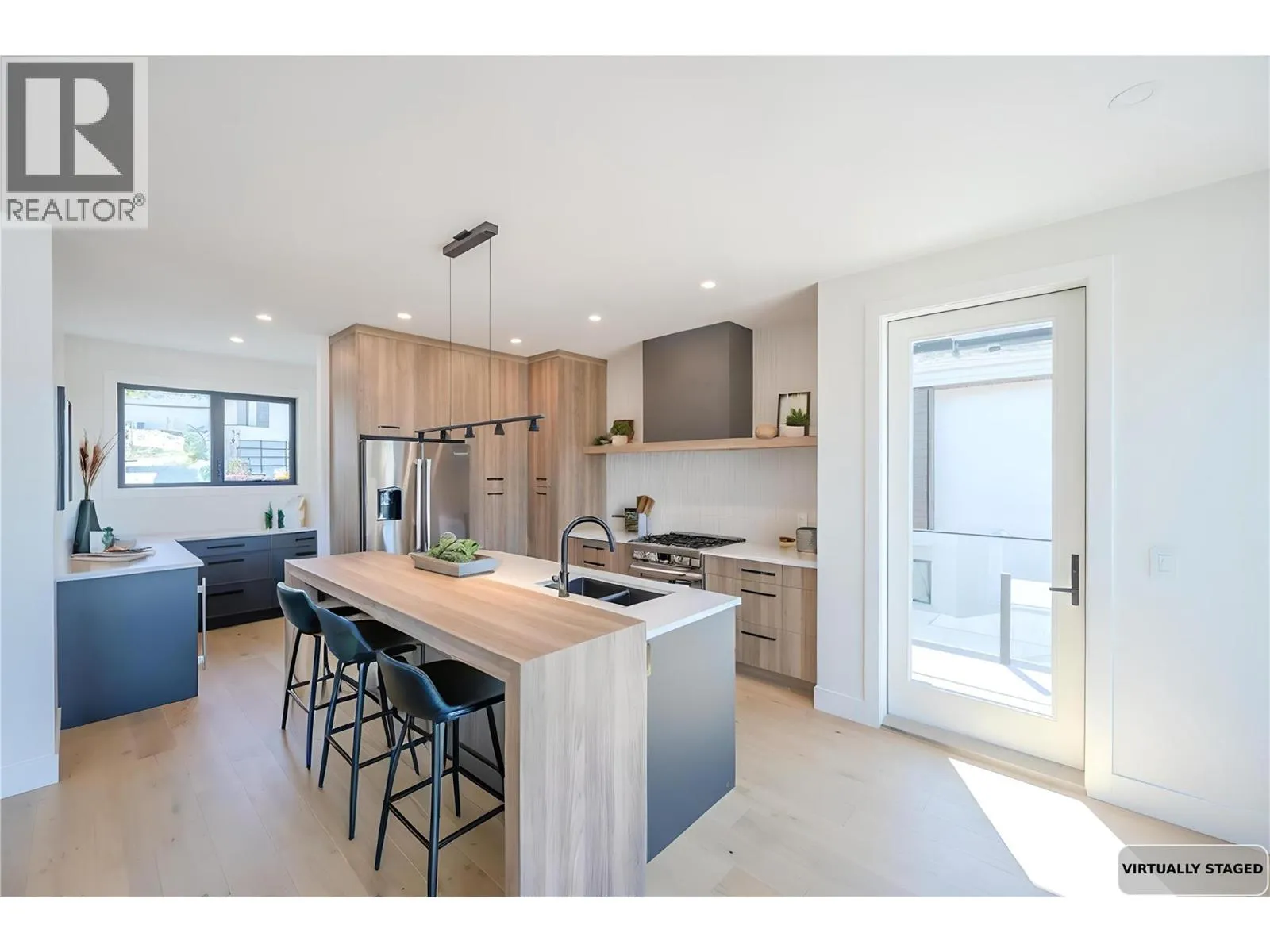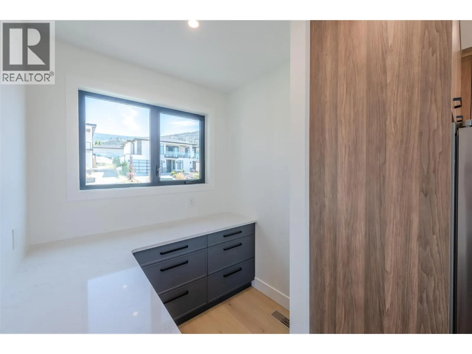 A masterclass in refined living, this extraordinary residence seamlessly blends luxury, function, and breathtaking natural beauty. Perched to capture sweeping lake, city, and mountain vistas, the home offers nearly 800 sq ft of covered outdoor spaceâan idyllic setting for sophisticated entertaining. Inside, the chefâs kitchen is a statement of elegance with quartz marble surfaces, bespoke bar-height wood island, sleek Bosch appliances, a striking tile backsplash, and a built-in wine fridge. Engineered oak hardwood graces the main living areas, while the primary suite offers a serene retreat complete with a spa-inspired ensuite featuring heated porcelain tile. A dedicated home office enhances the main level, along with a beautifully crafted laundry/mudroom with direct access to the double garage. The walkout lower level reveals two spacious bedrooms, a full bath, and an inviting rec room, while a private, legal one-bedroom suiteâappointed with quartz counters and chic white subway tileâprovides the perfect blend of style and versatility. Every element of this home is thoughtfully curated to elevate everyday living to an art form. (id:27476)